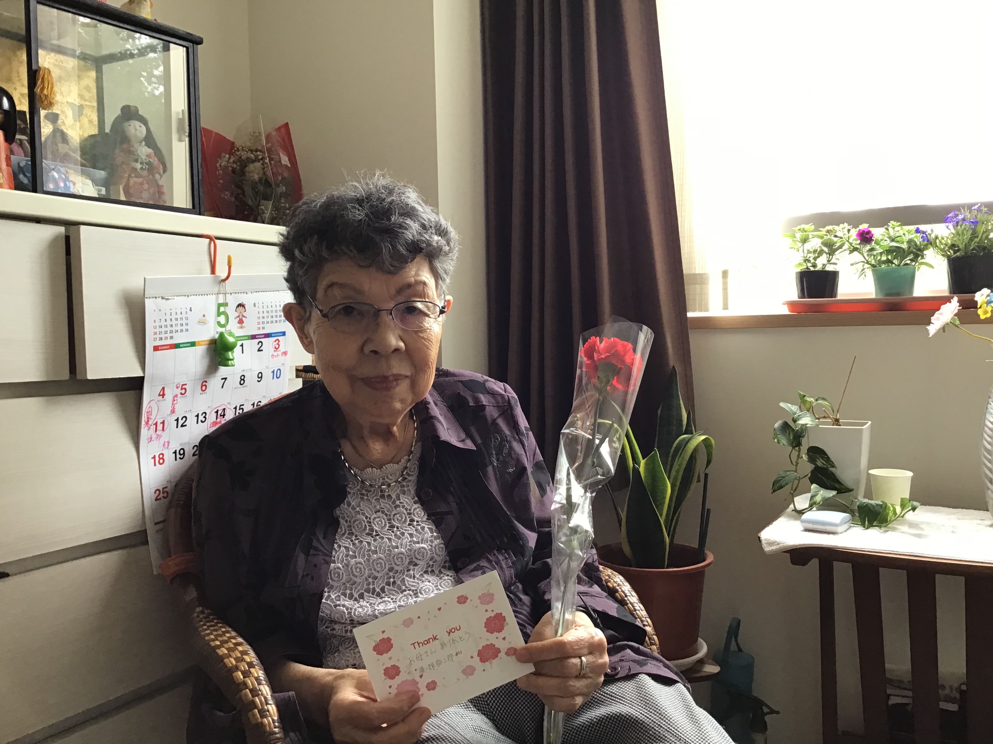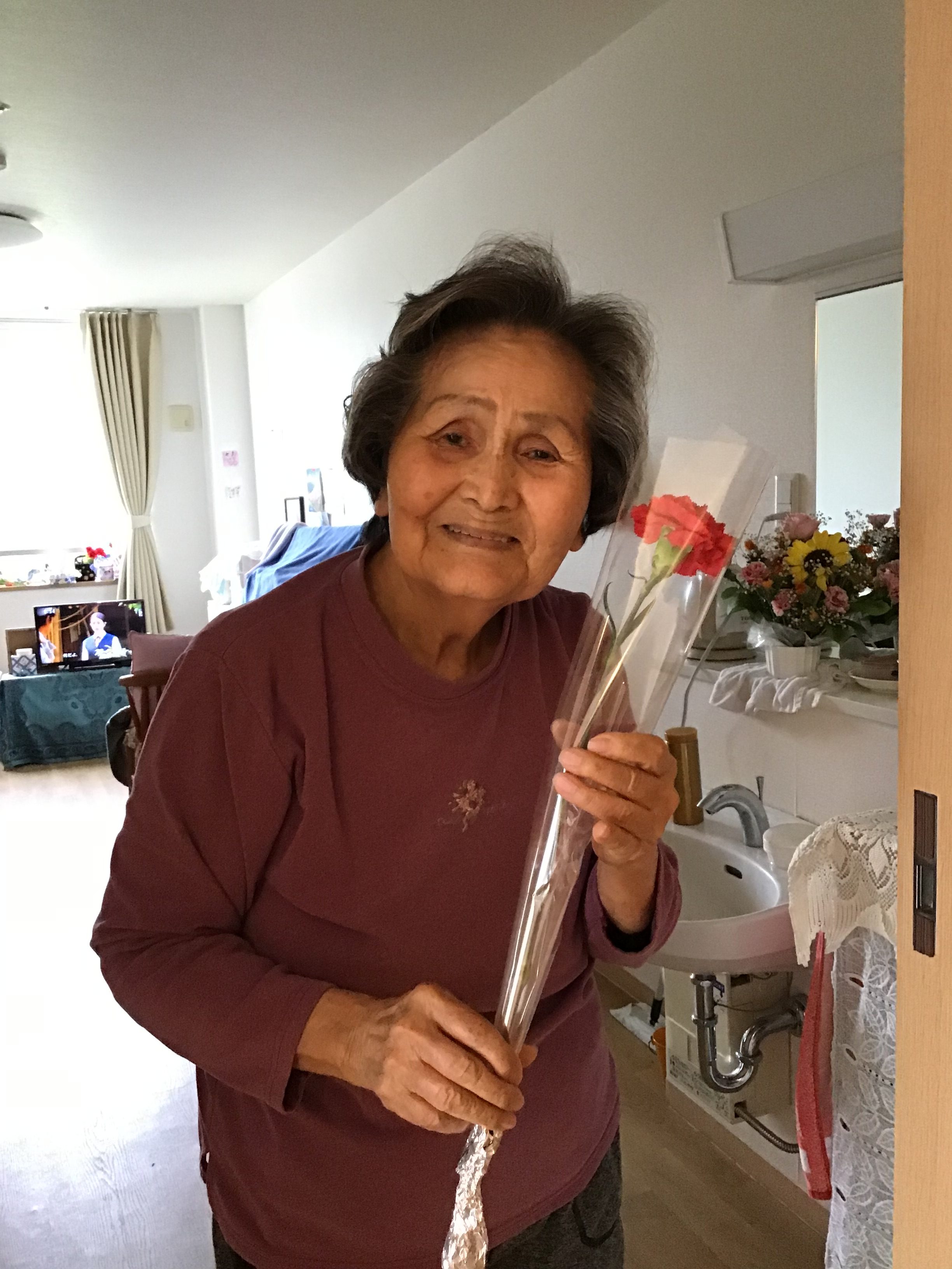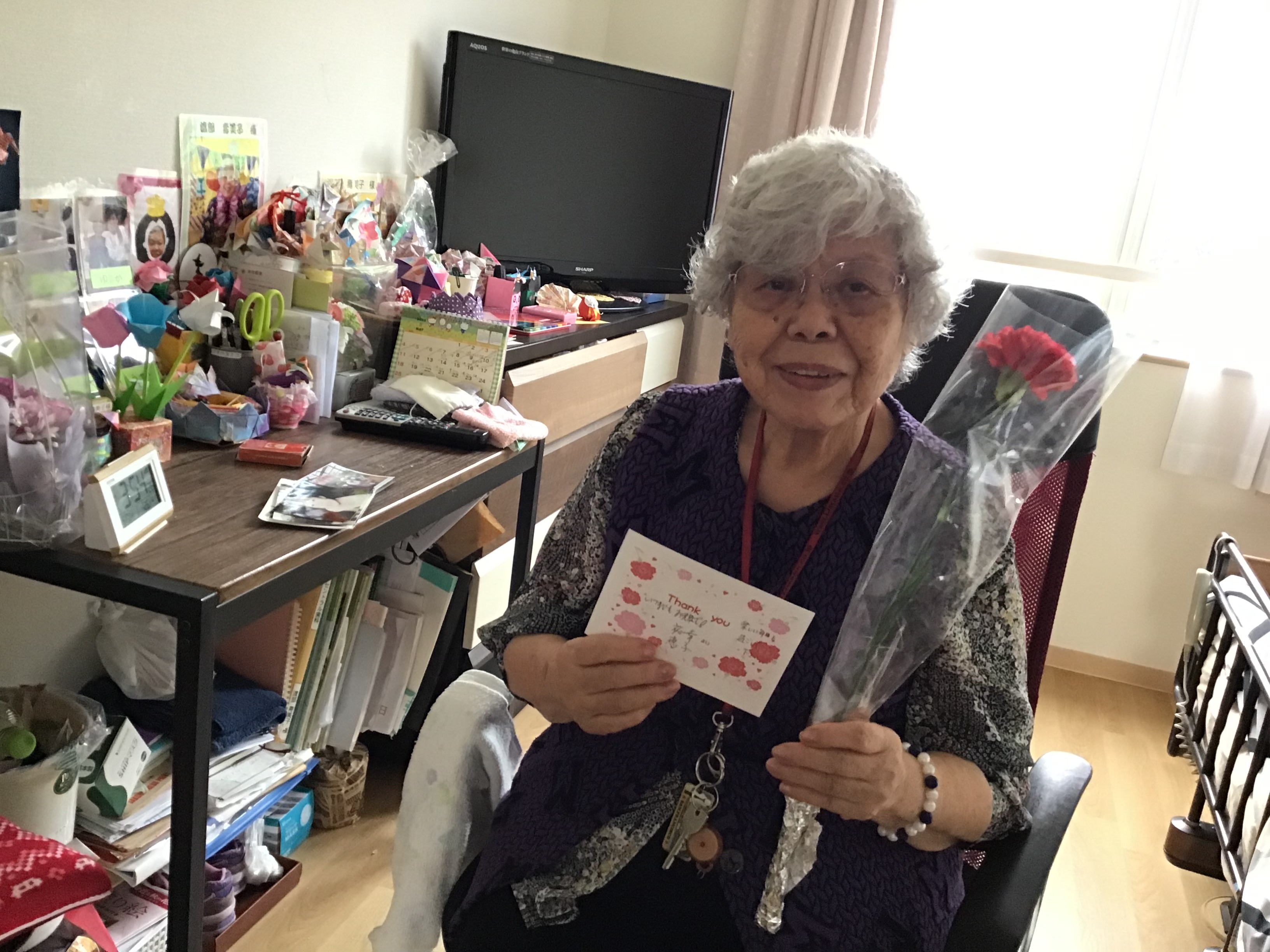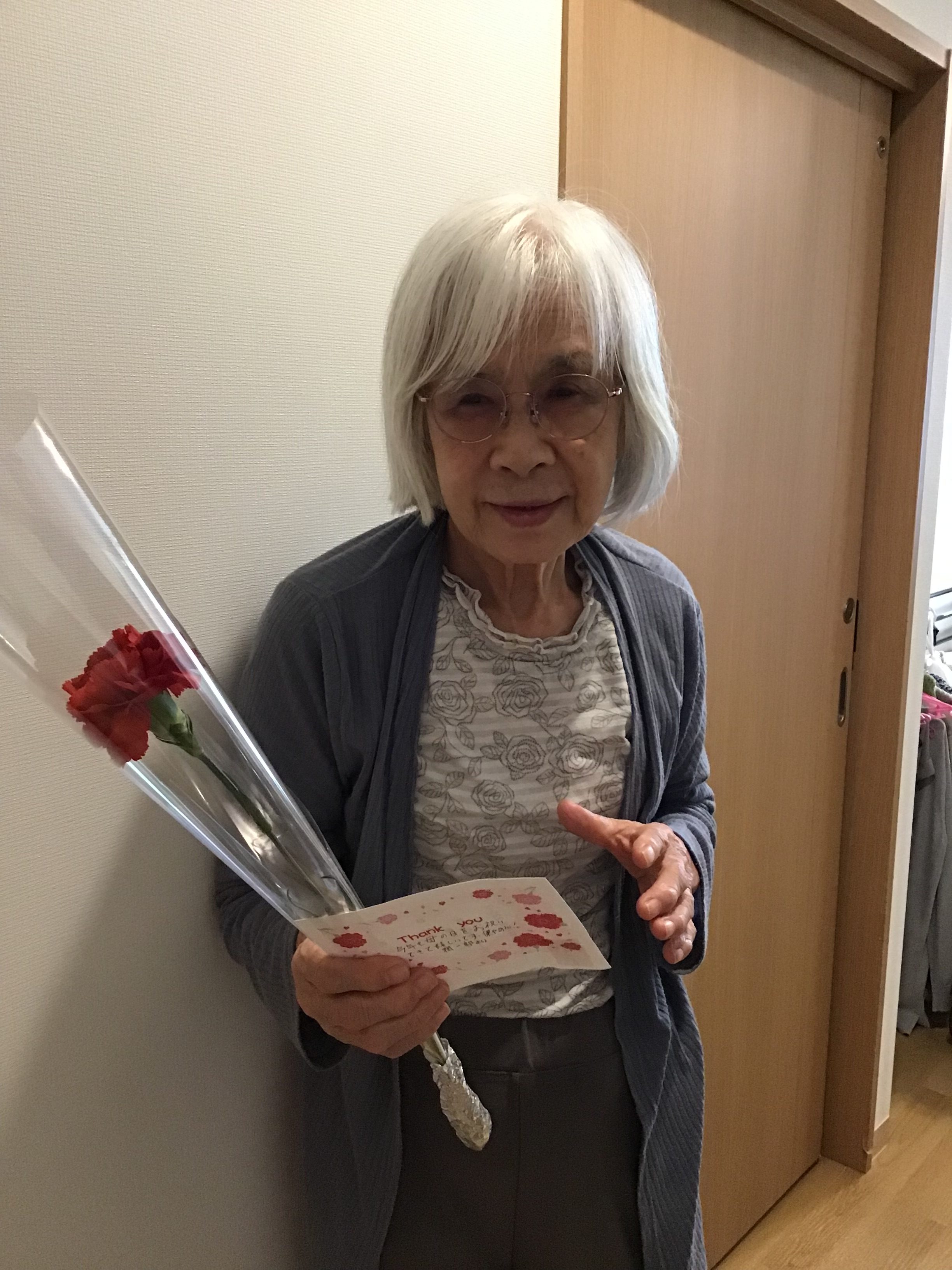 母の日に、カーネーションとご家族からのハガキをお渡しいたしました。