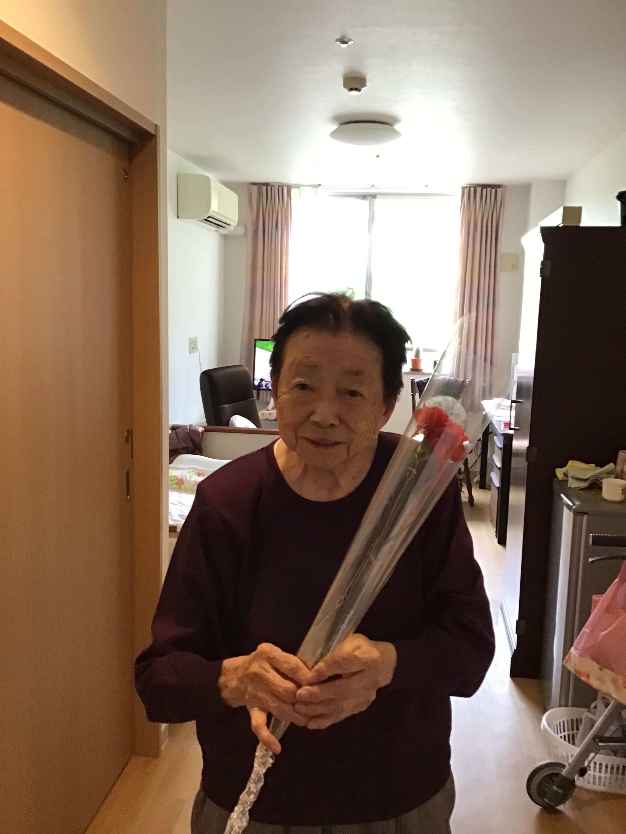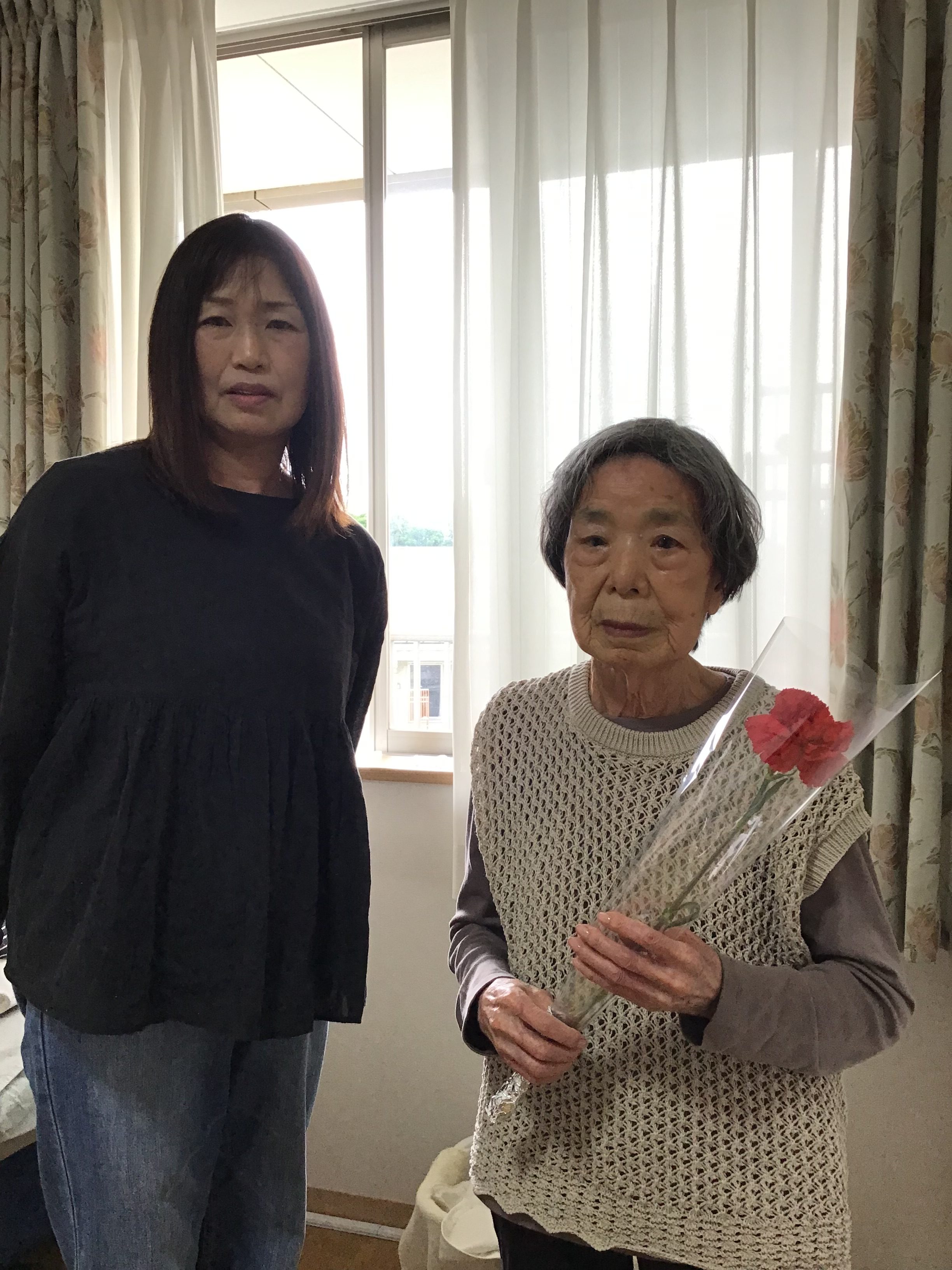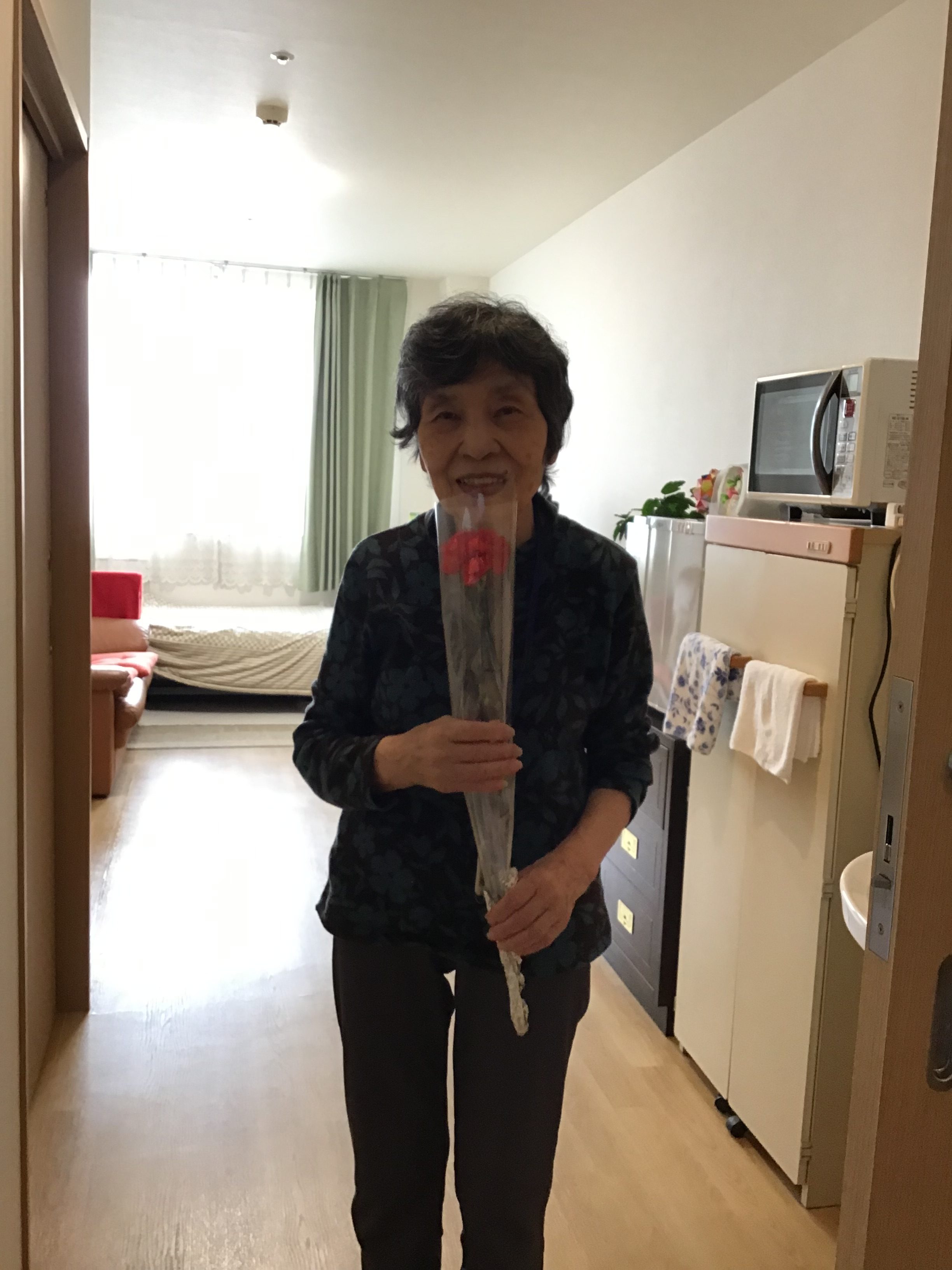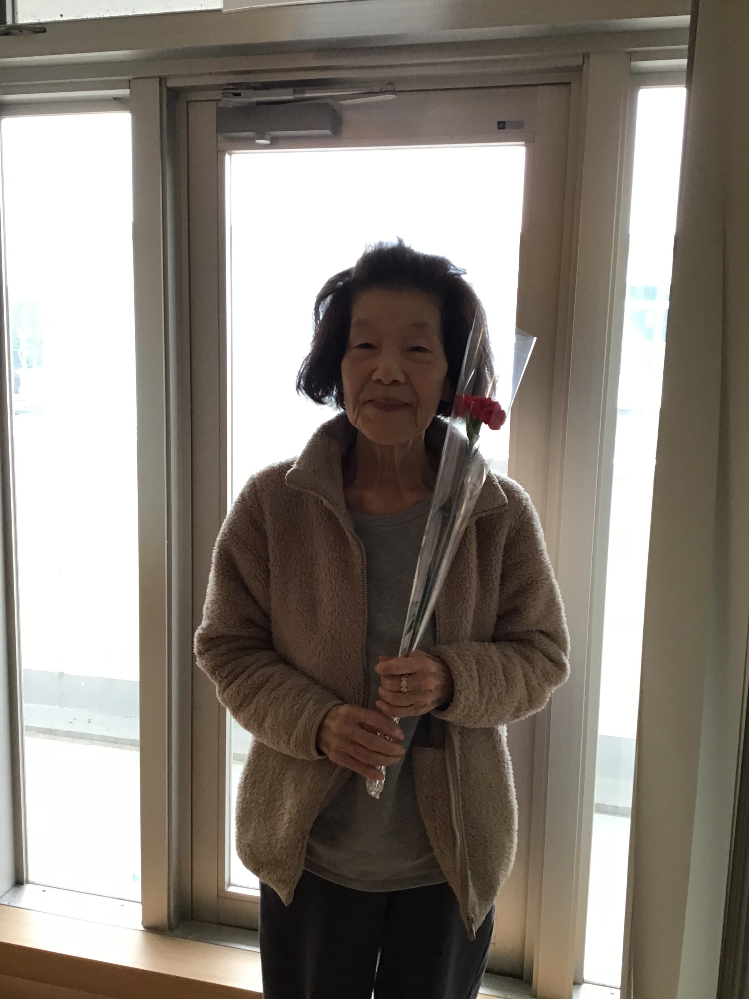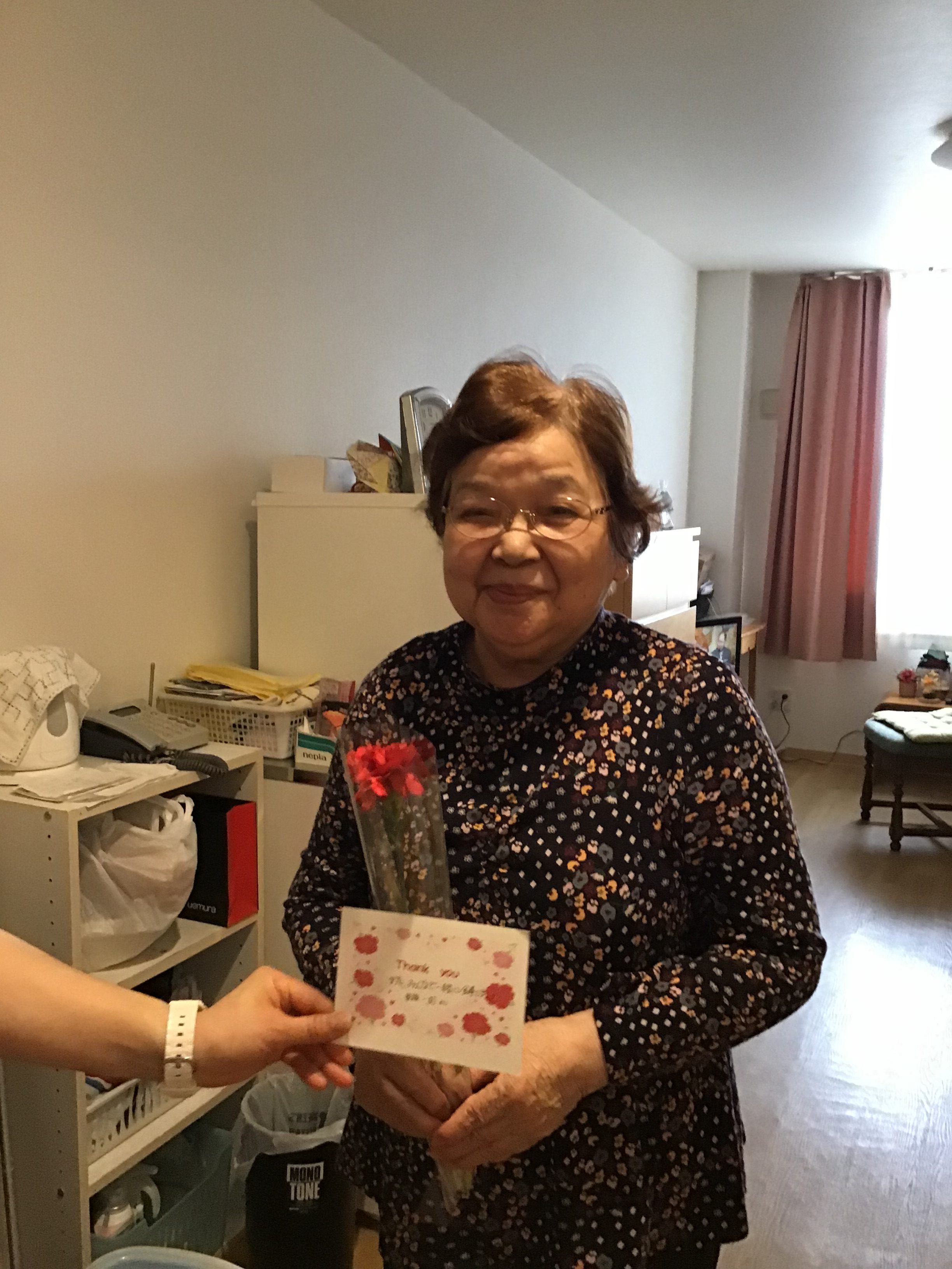 母の日に、カーネーションとご家族からのハガキをお渡しいたしました。