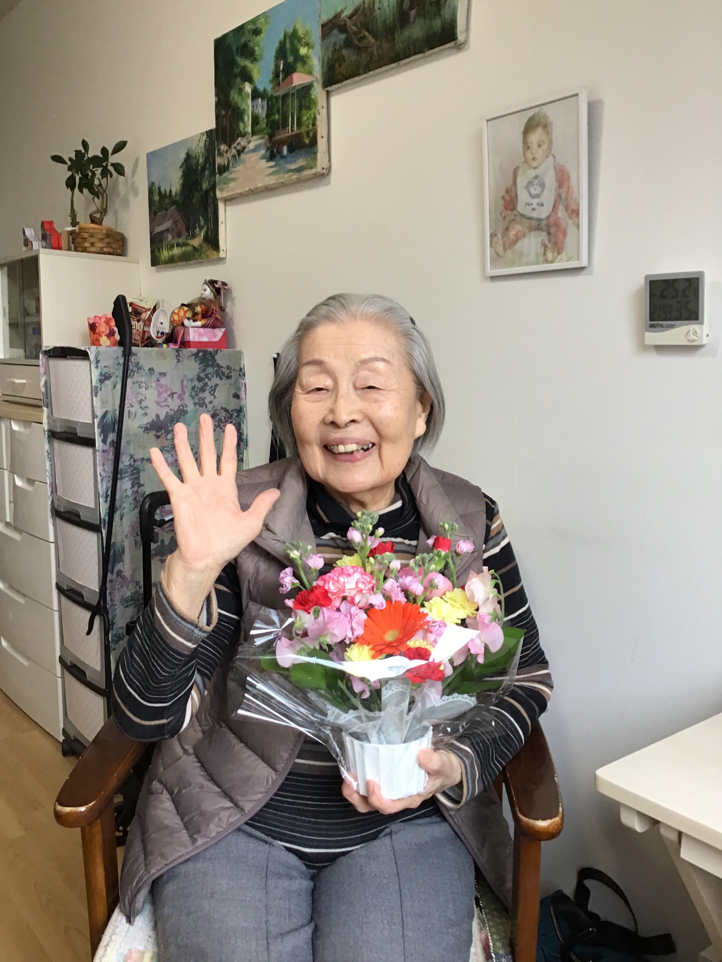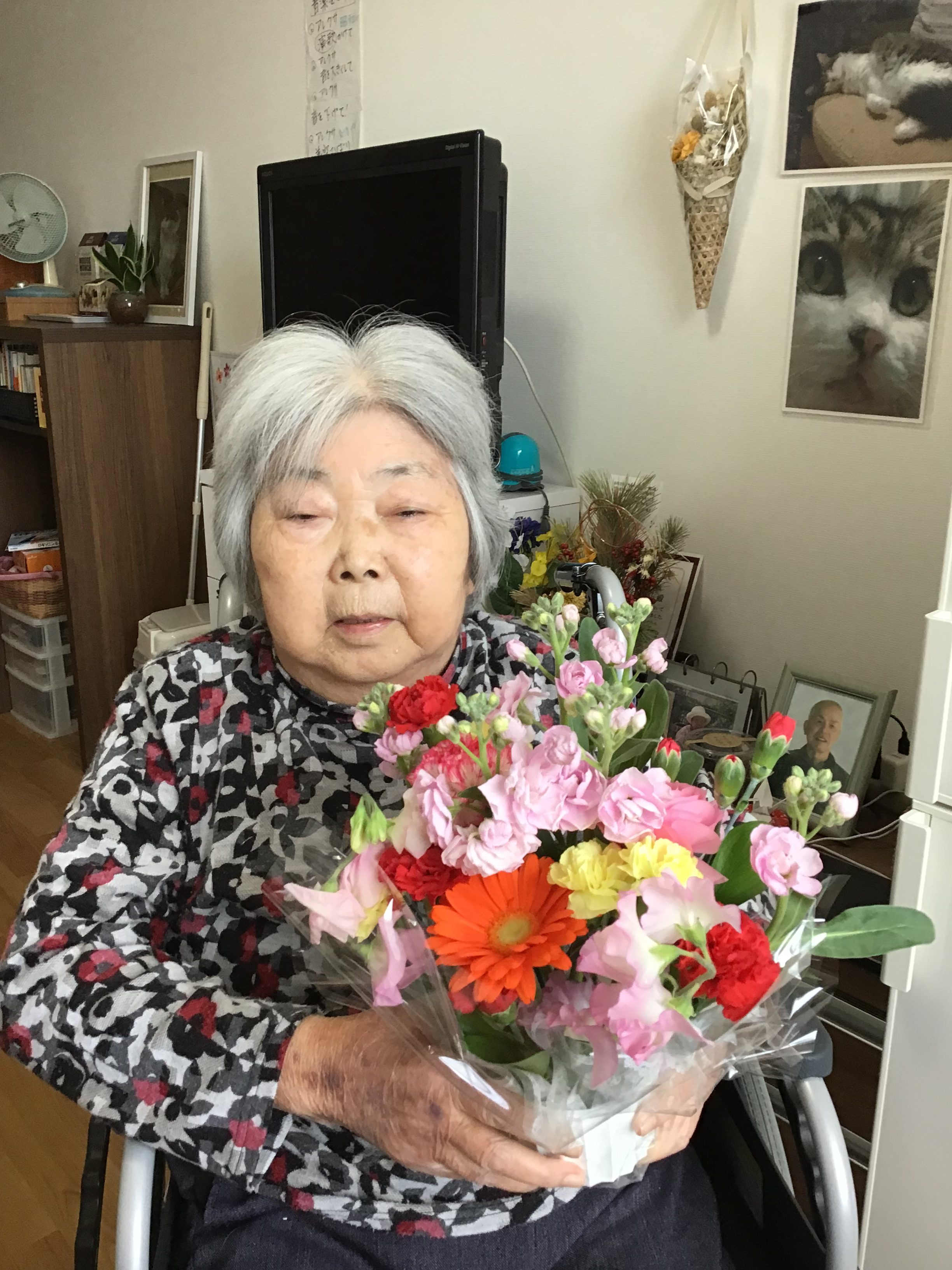 お誕生月の入居者様に💐のプレゼントをお渡しいたしました。