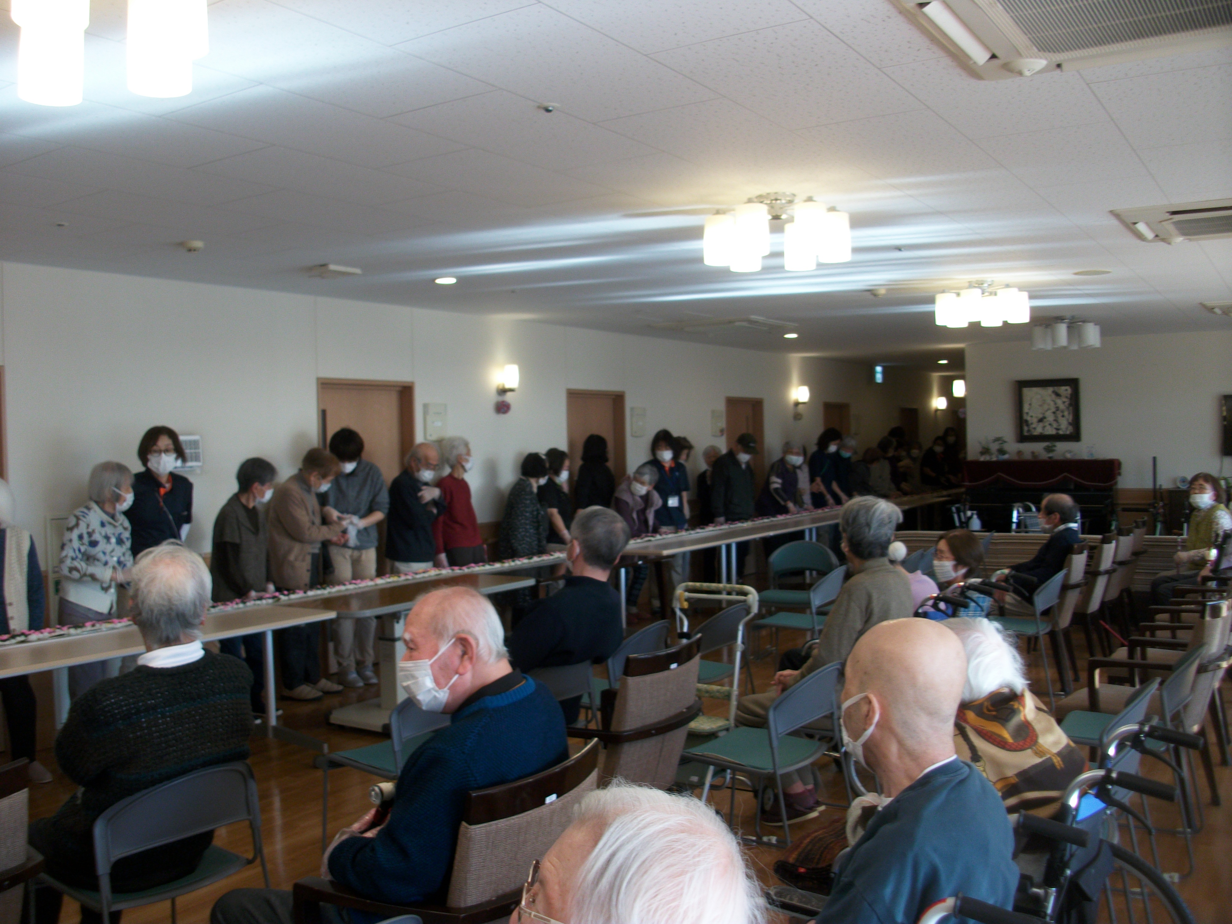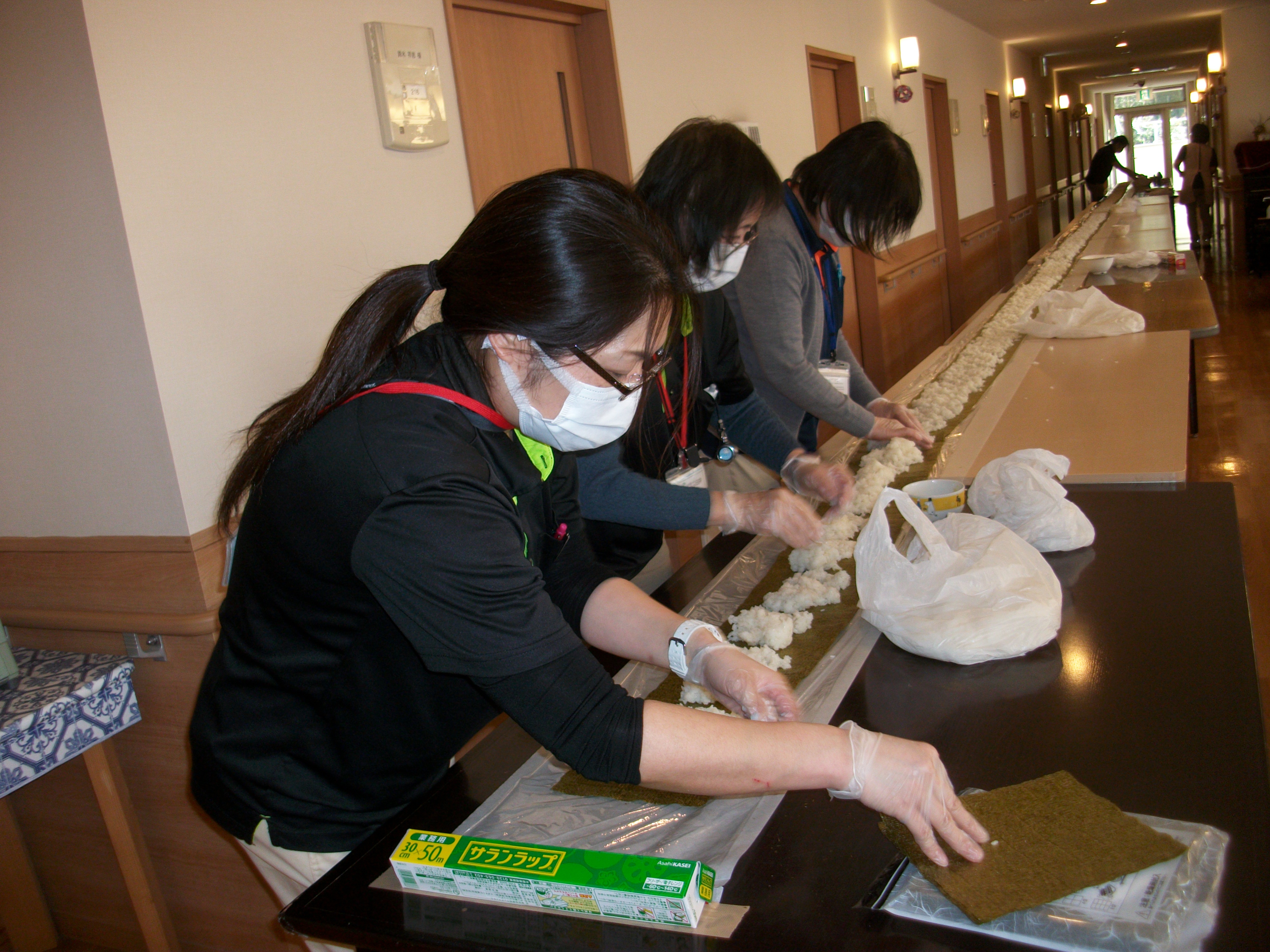 みなさんで力を合わせて長~いのり巻きに挑戦です。