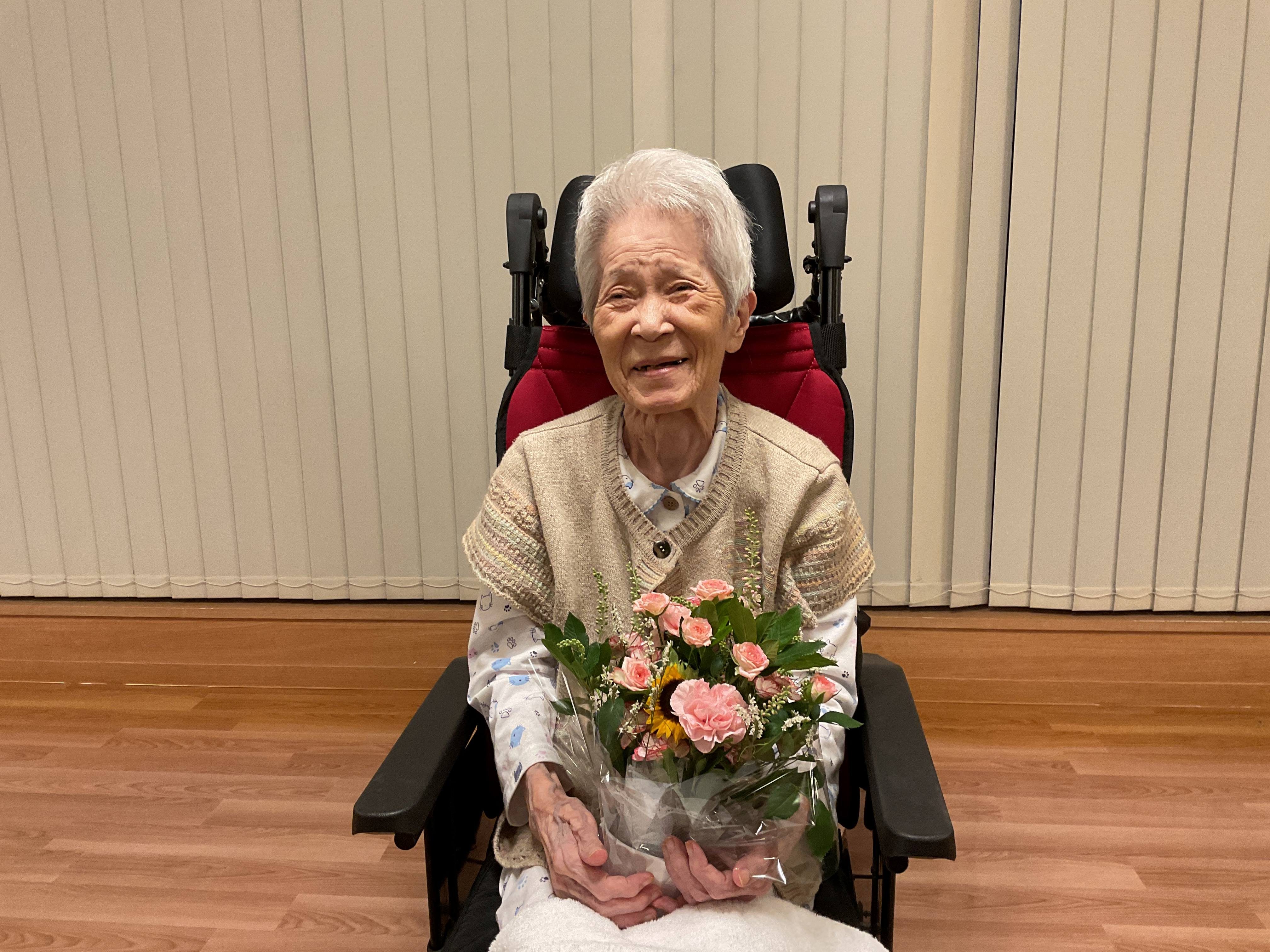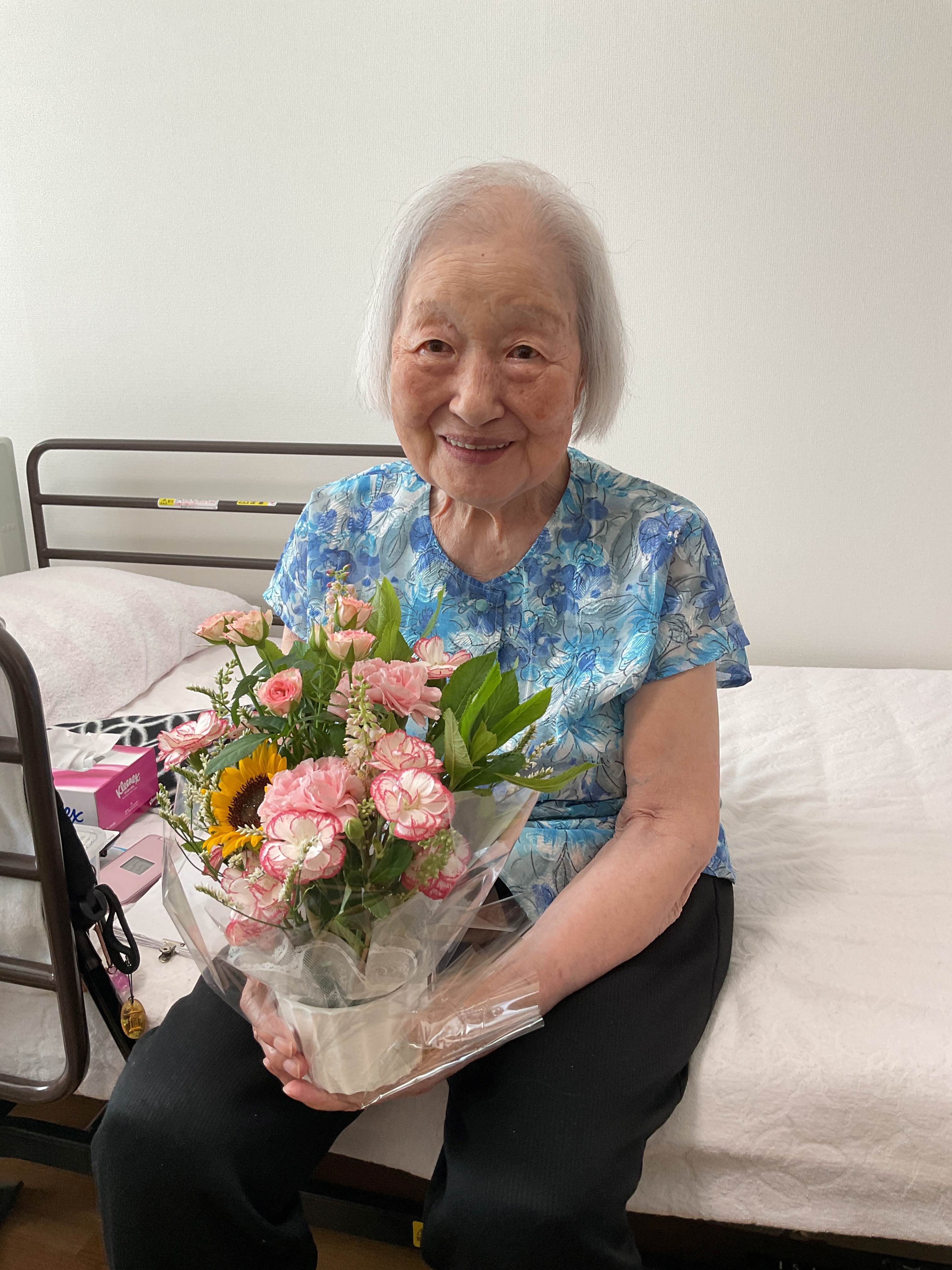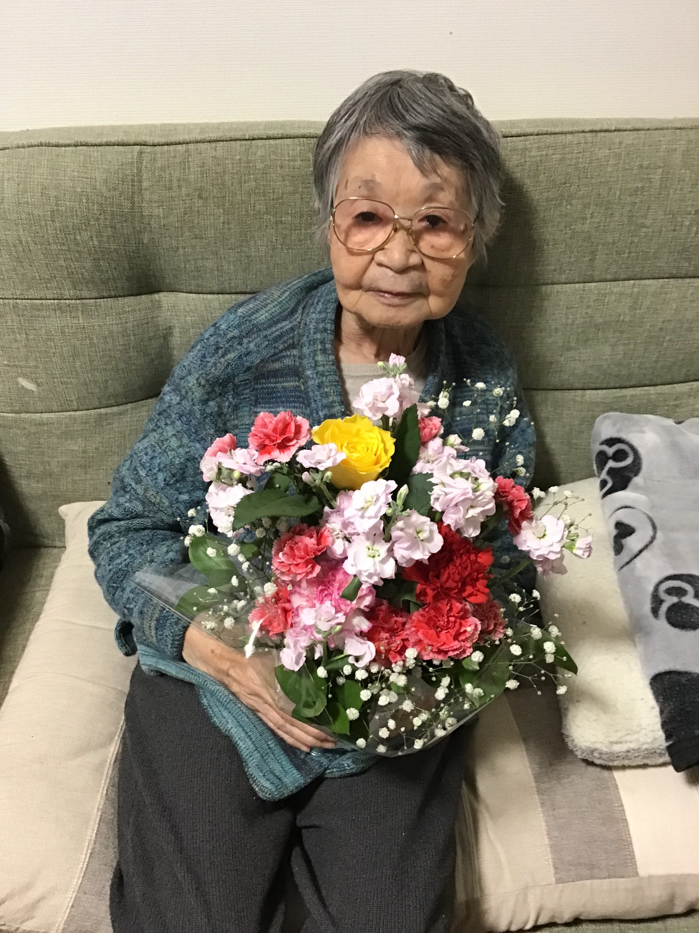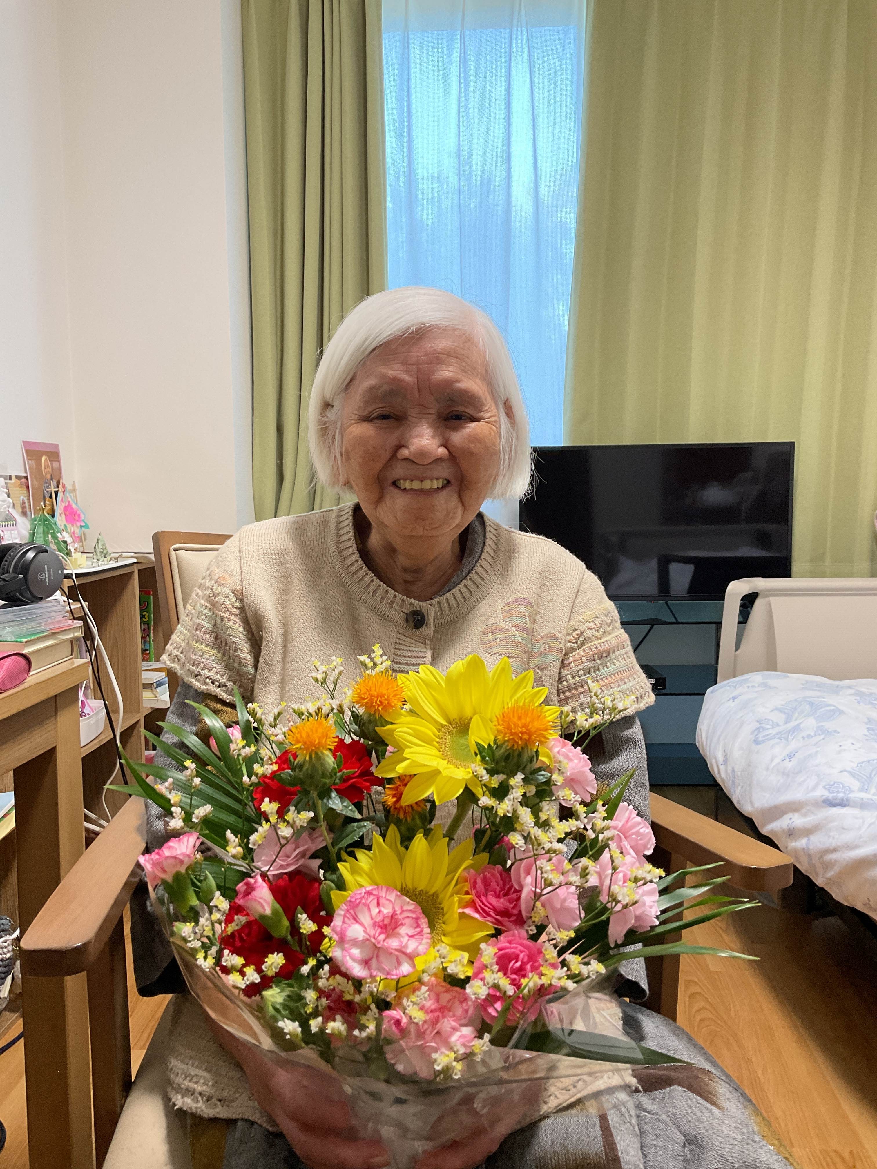 毎月お誕生月のヴィラの入居者様にアレンジメントを施設からお渡ししているのですが