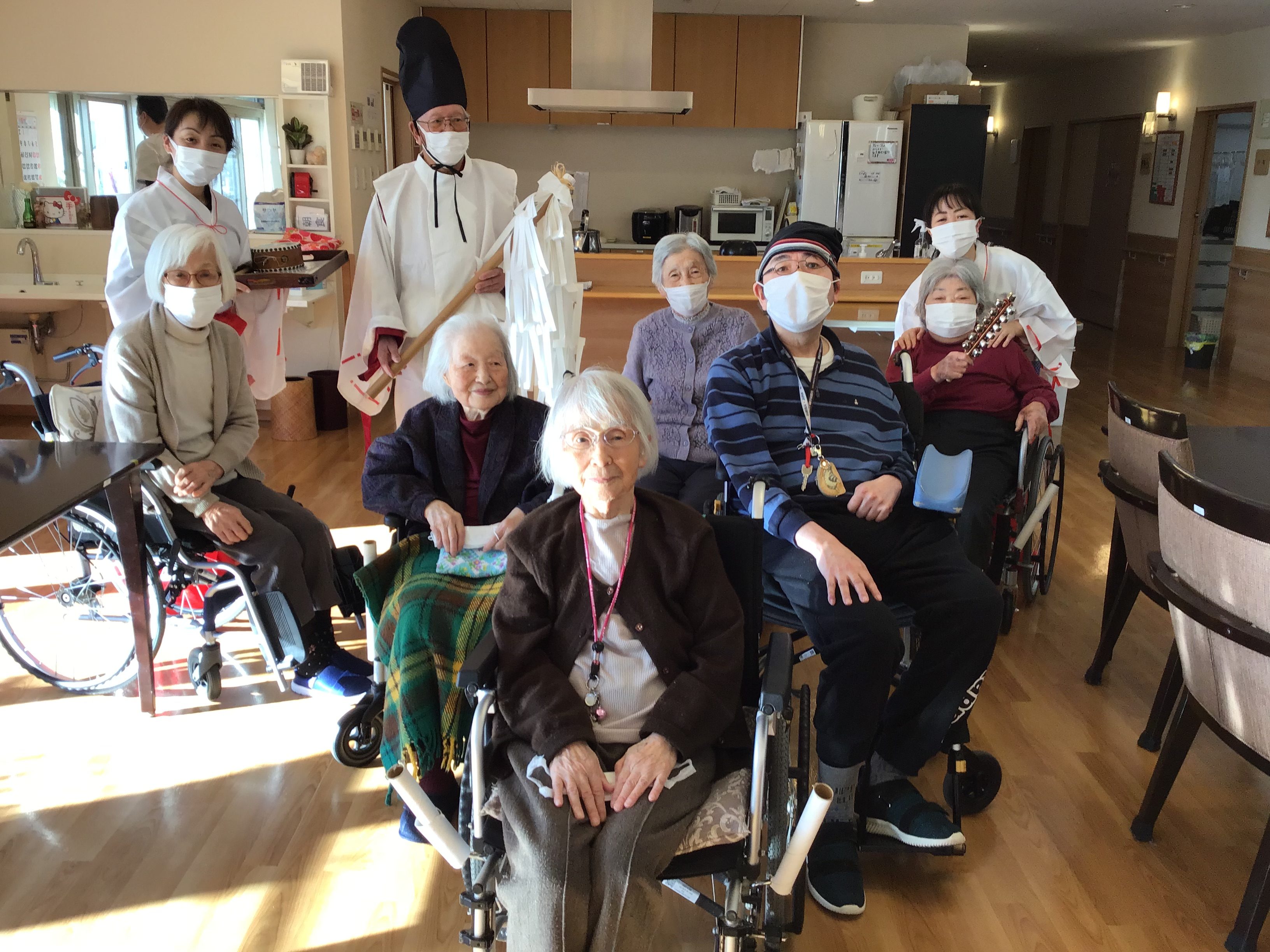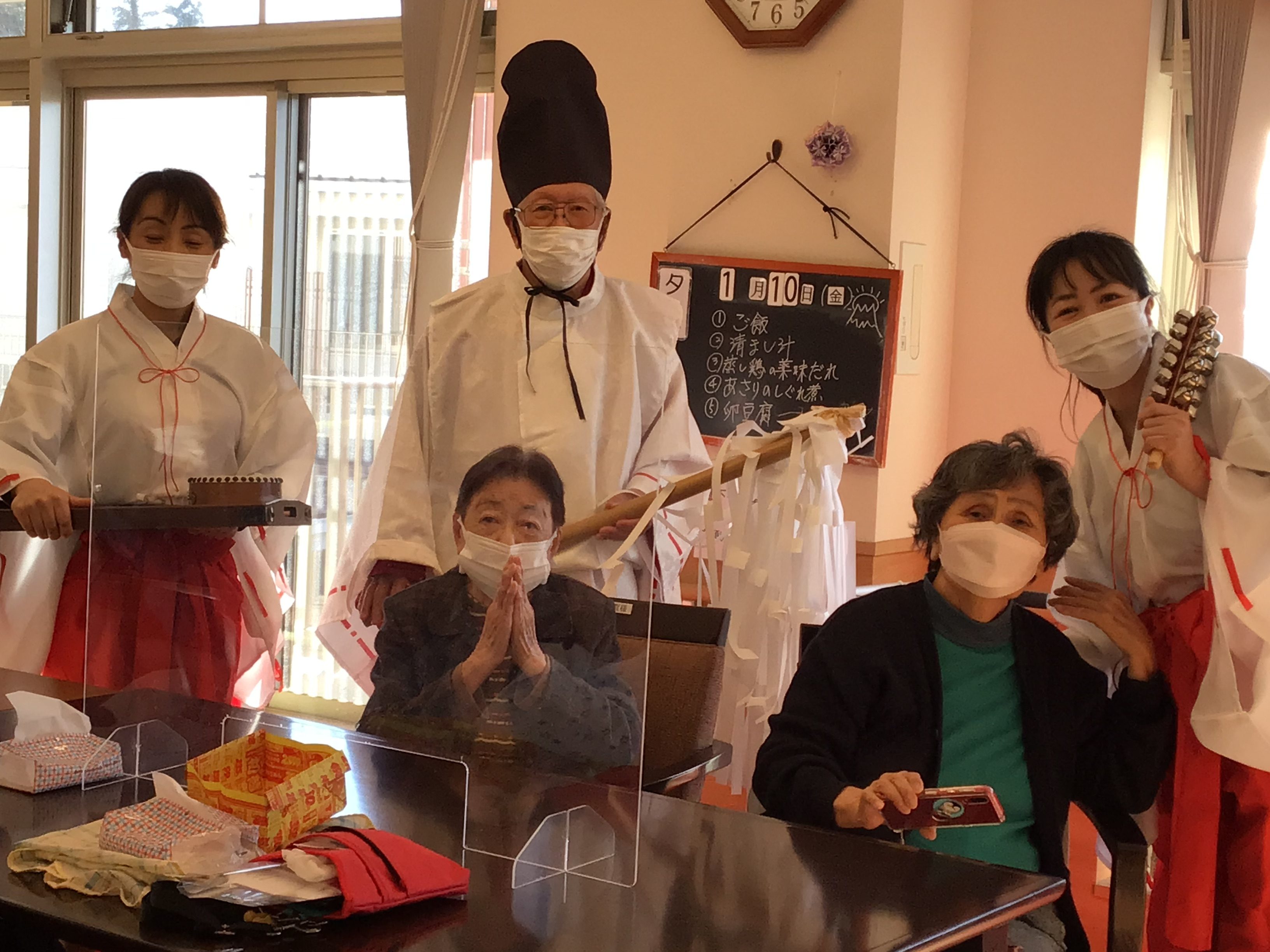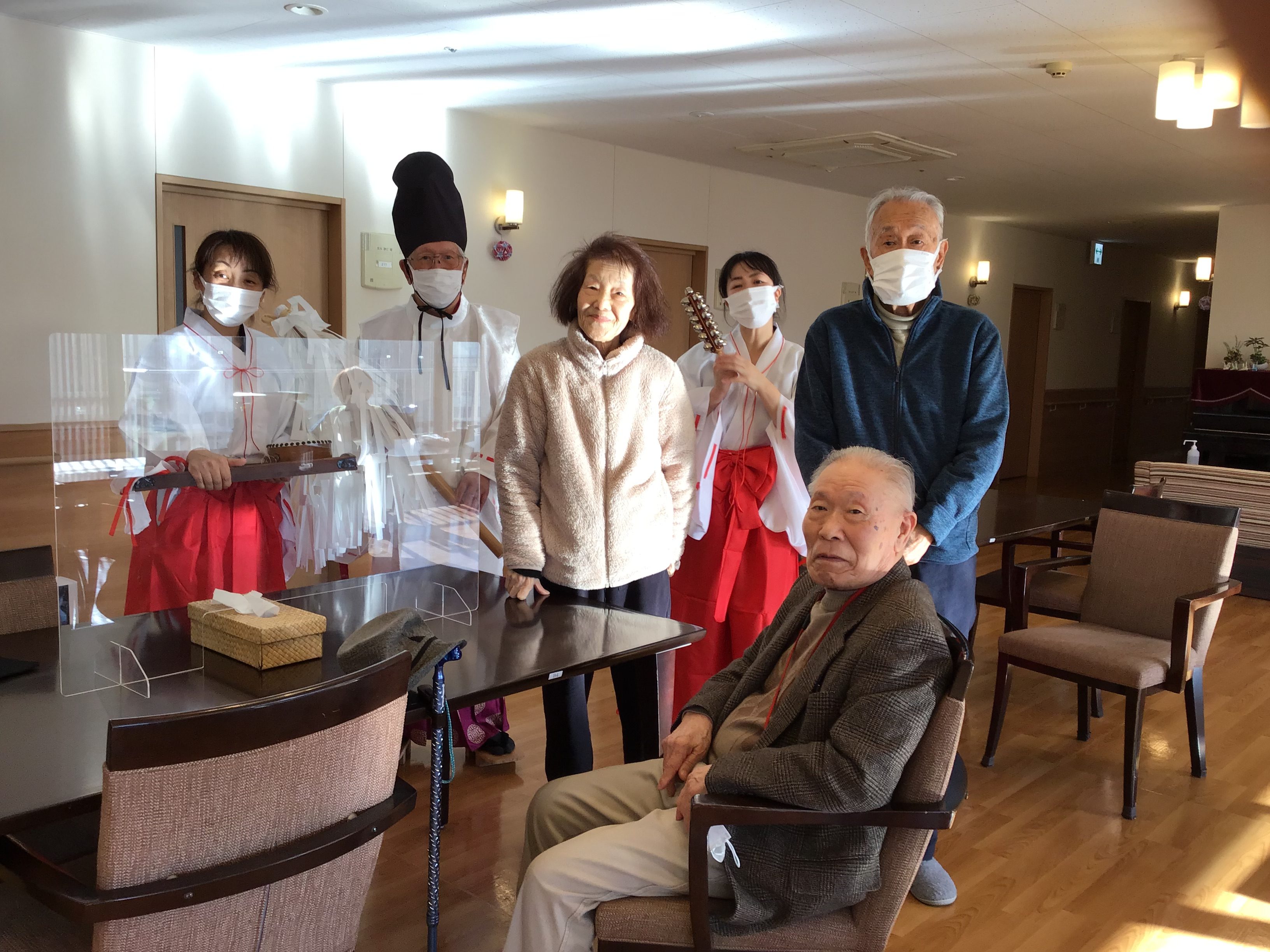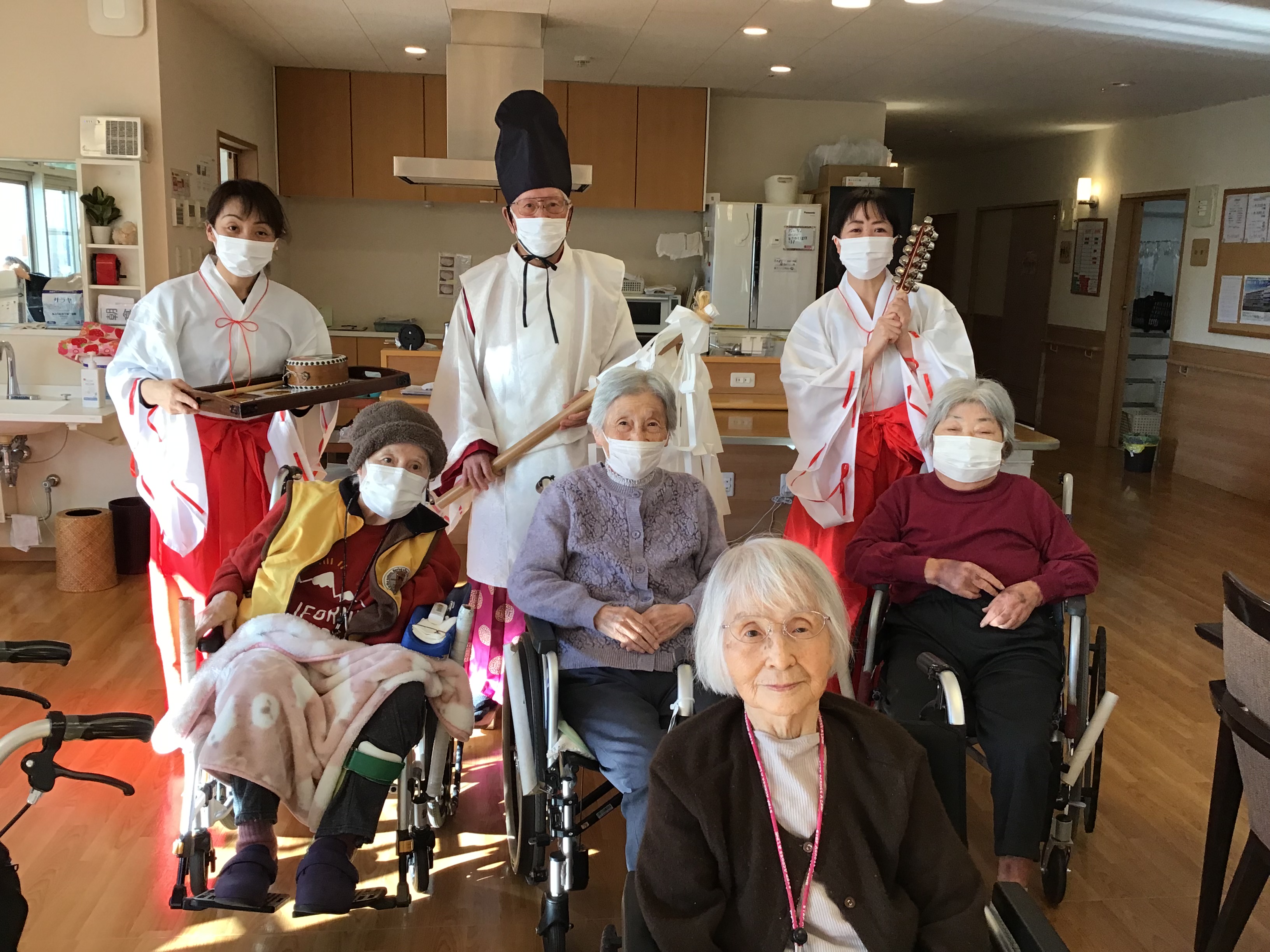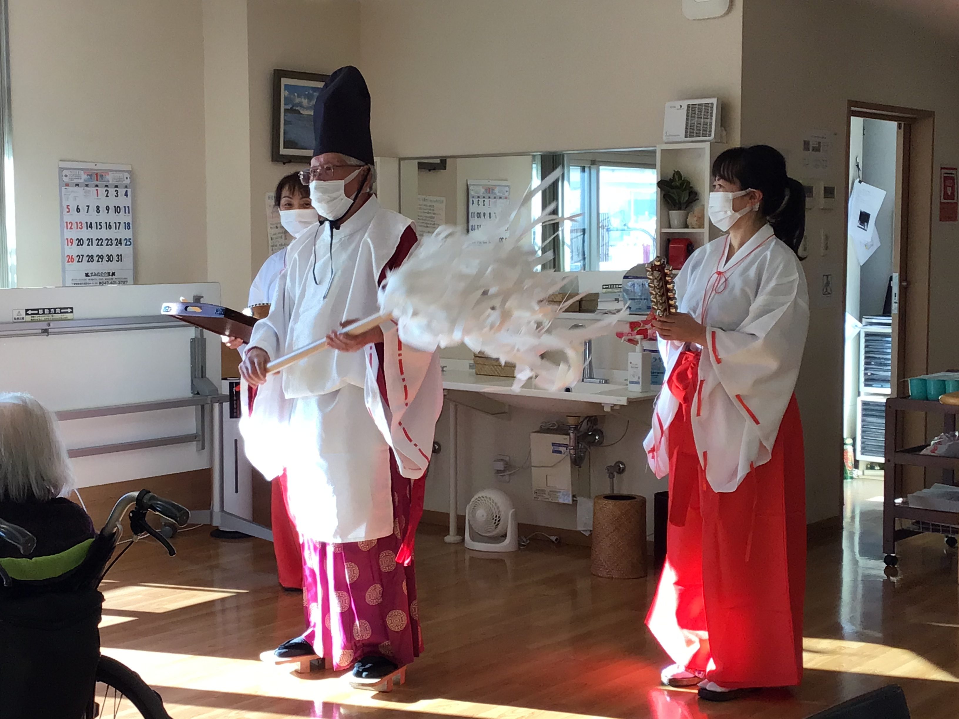 スタッフが神主さんと巫女さんに扮して各部署をねり歩きました!