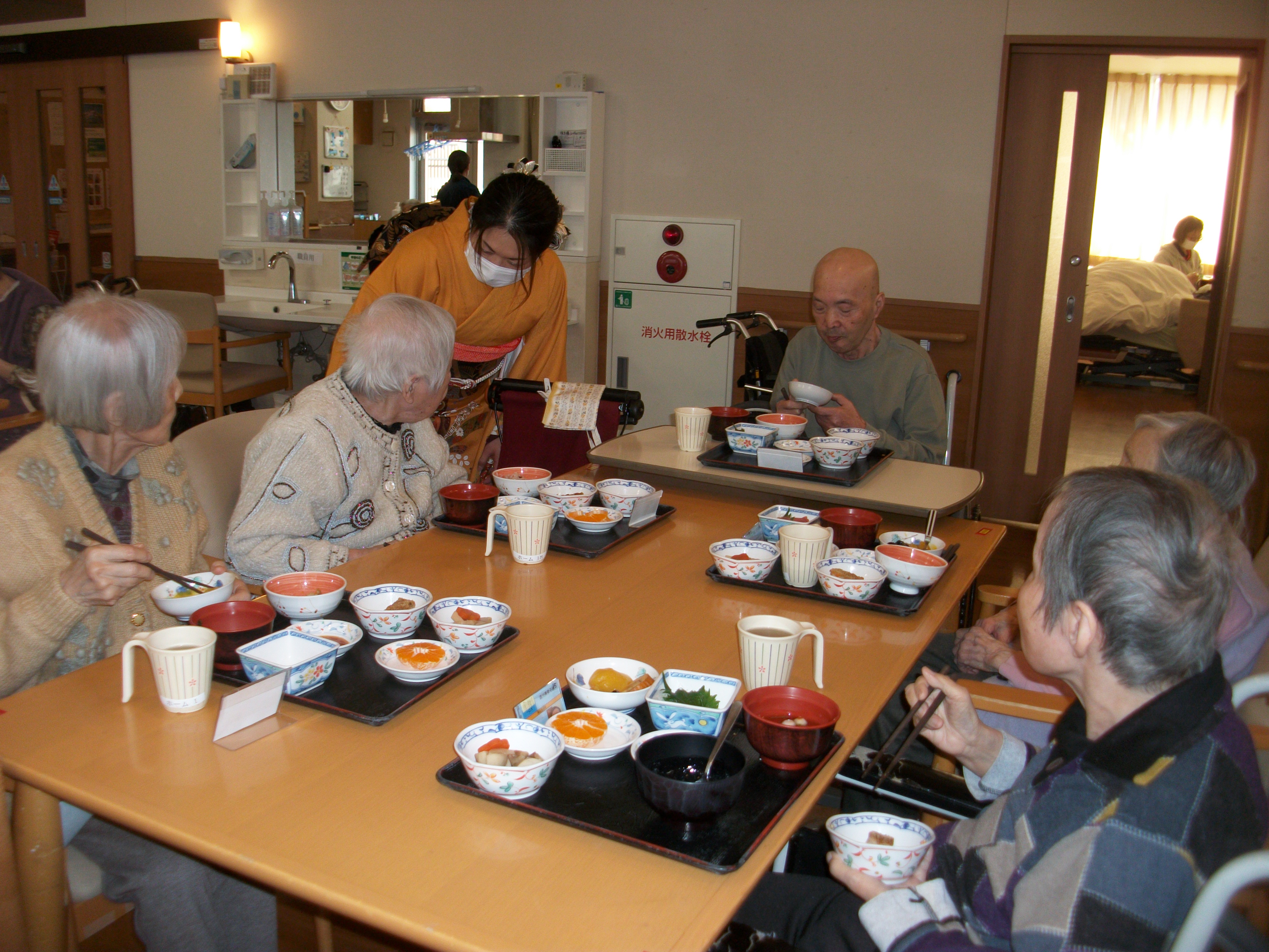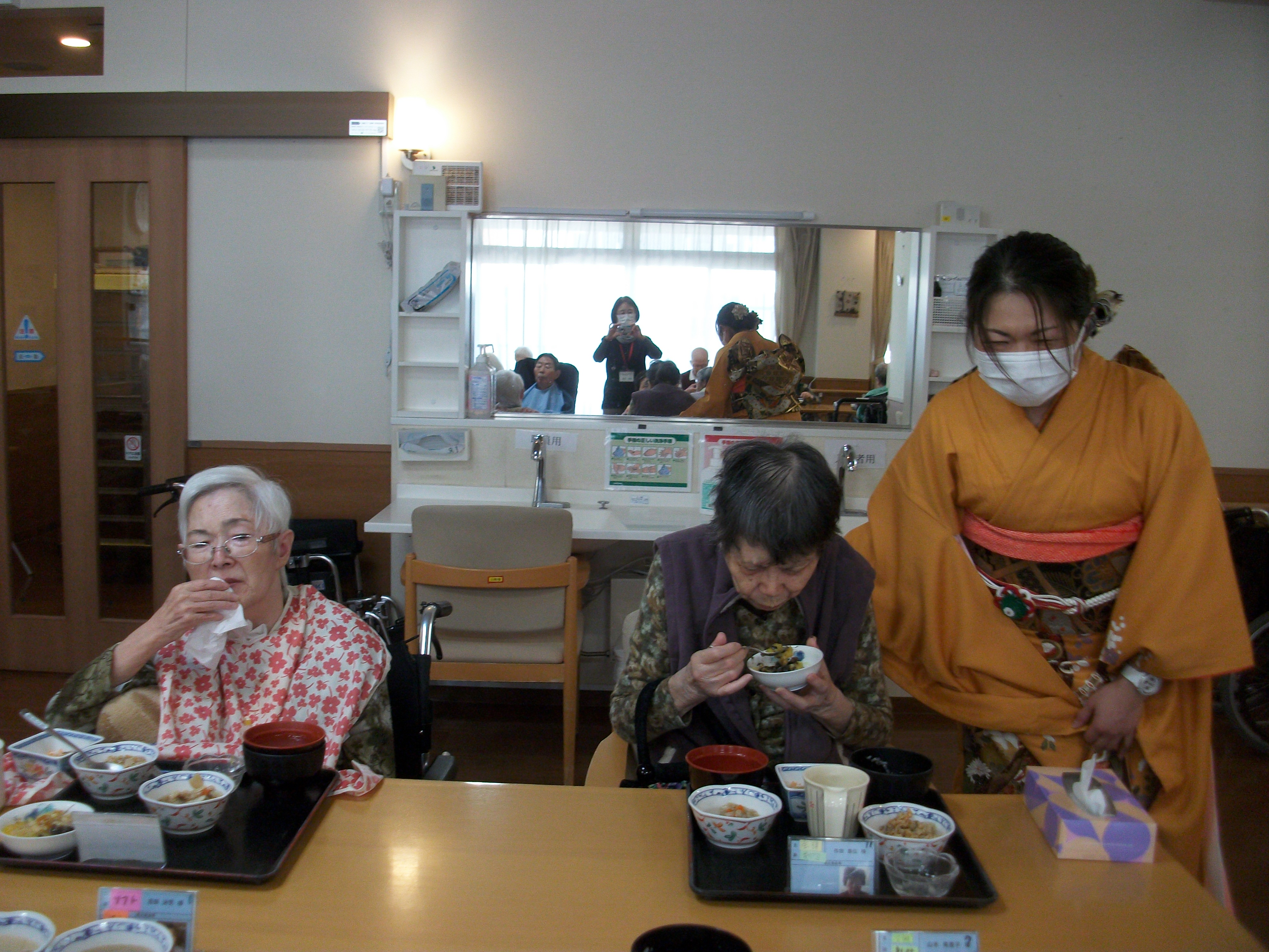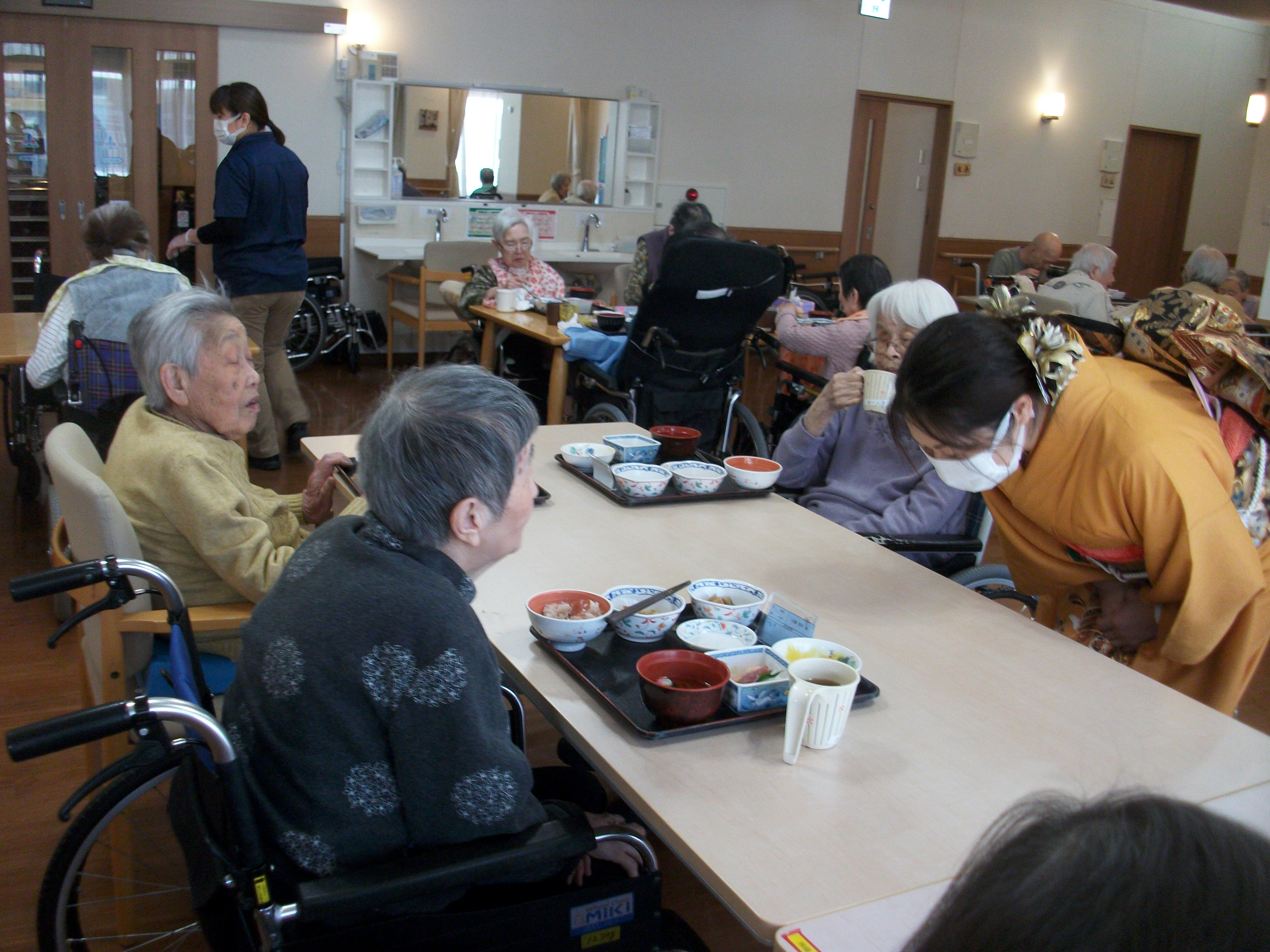 元旦のお昼ご飯時に、ヴィラの施設長が着物でご挨拶に参りました。