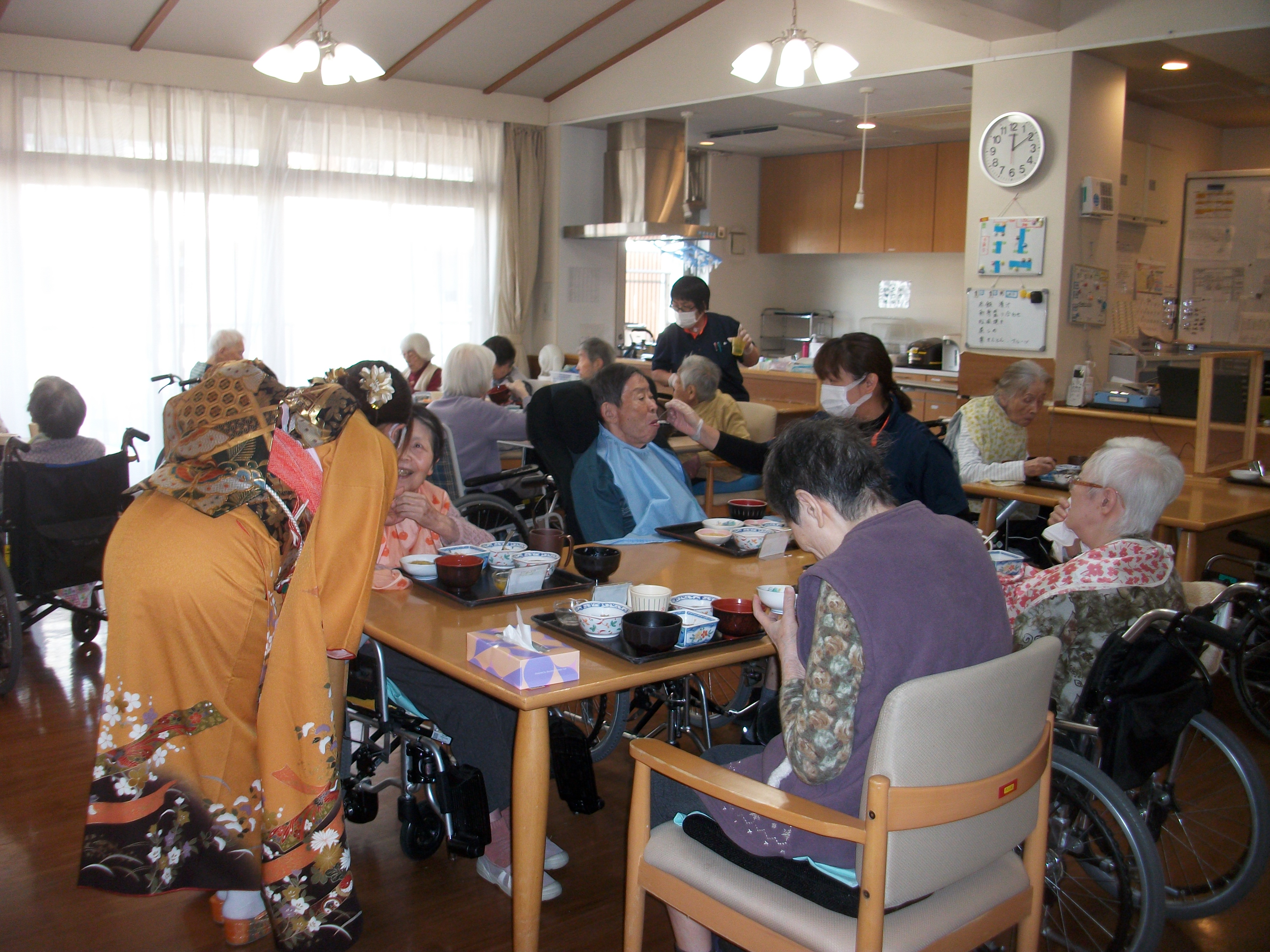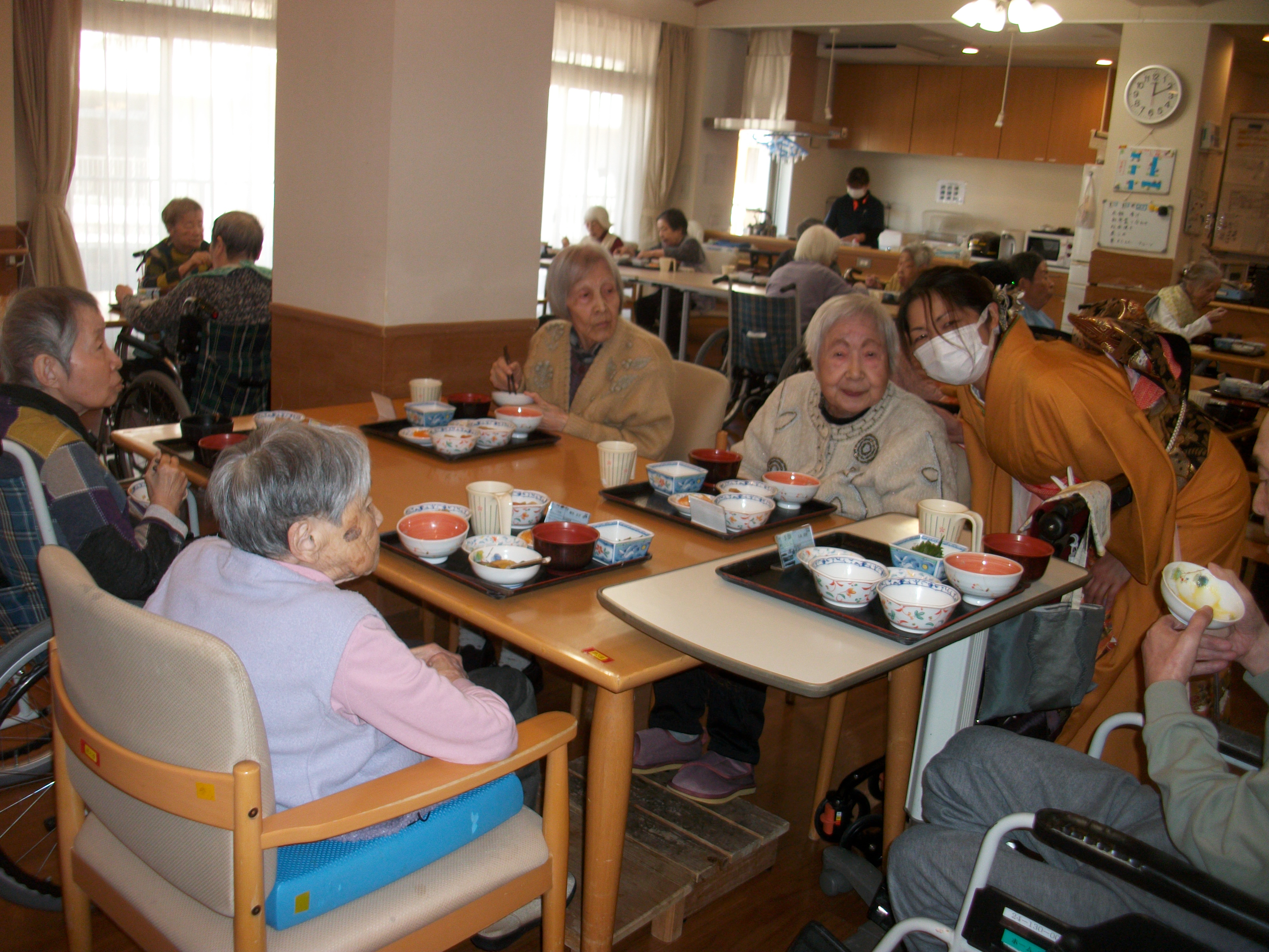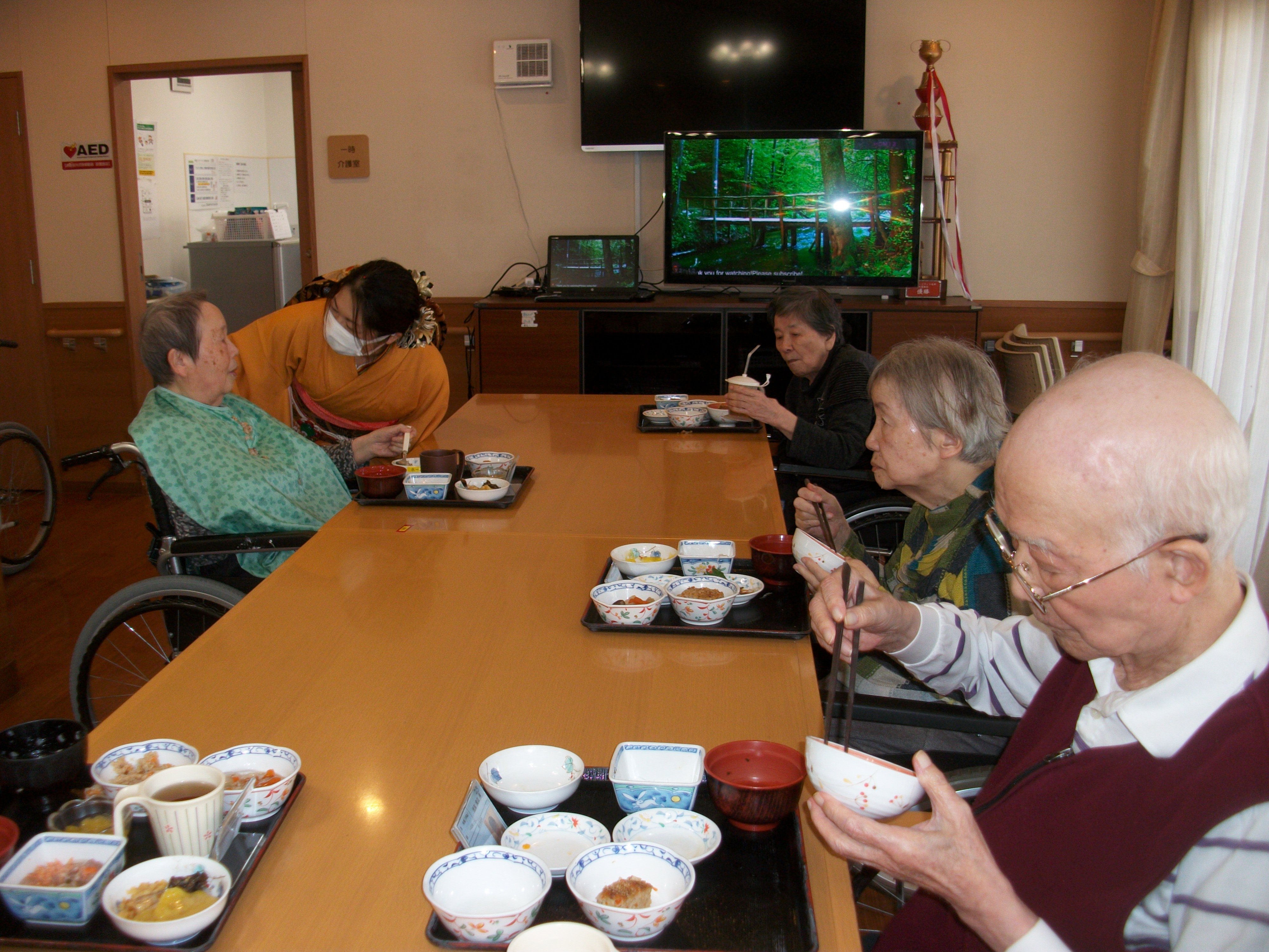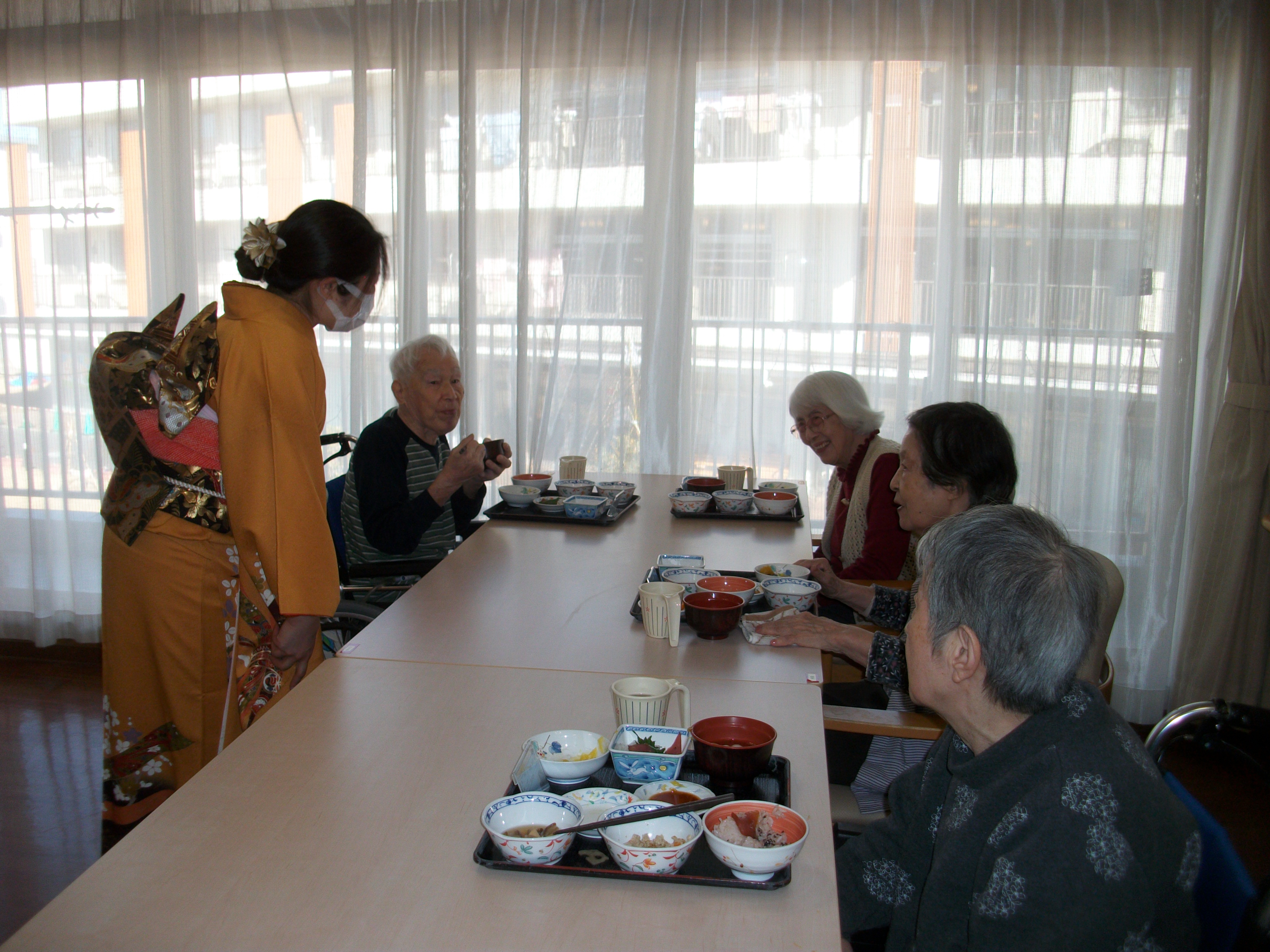 元旦のお昼ご飯時に、ヴィラの施設長が着物でご挨拶に参りました。