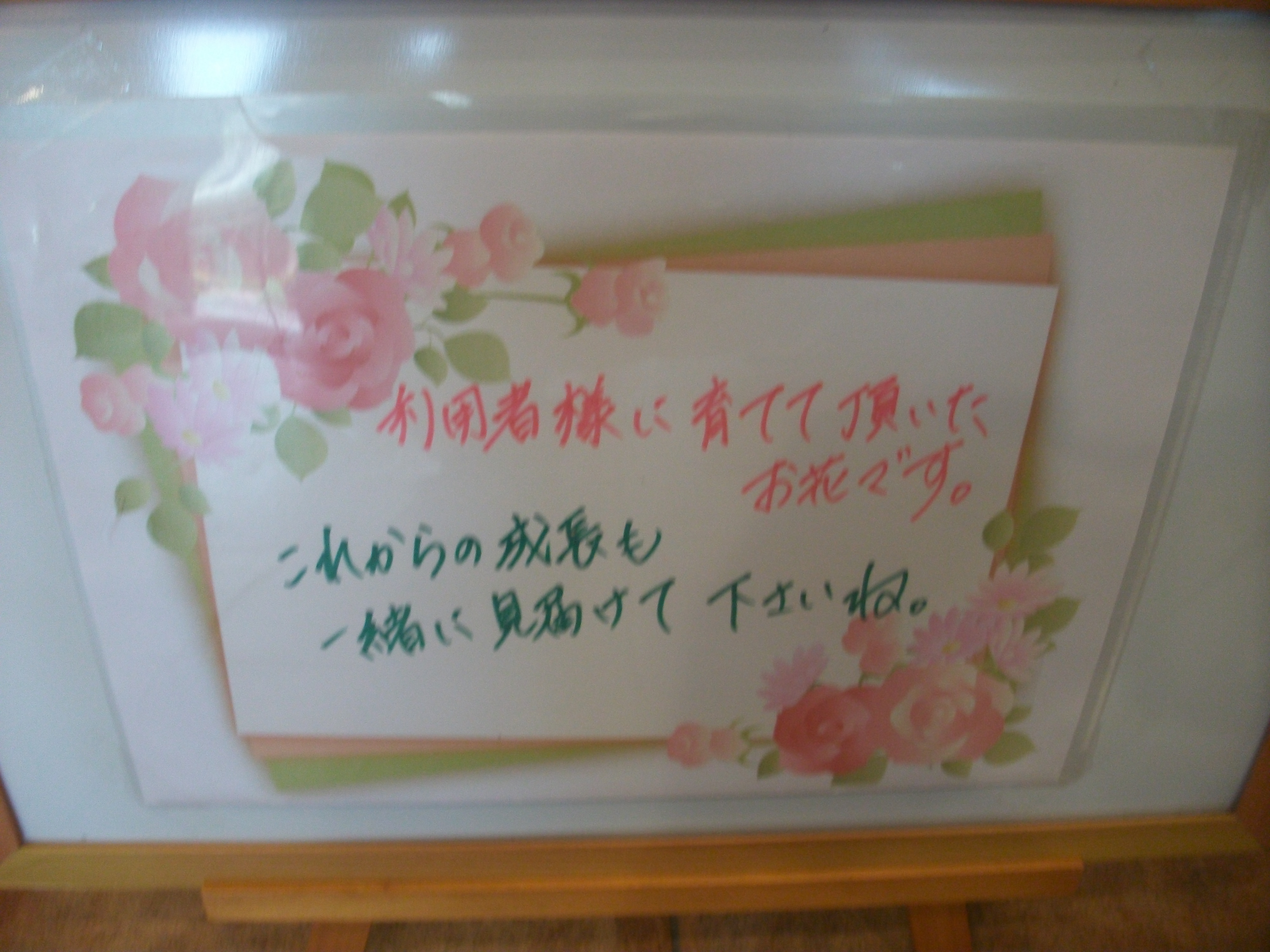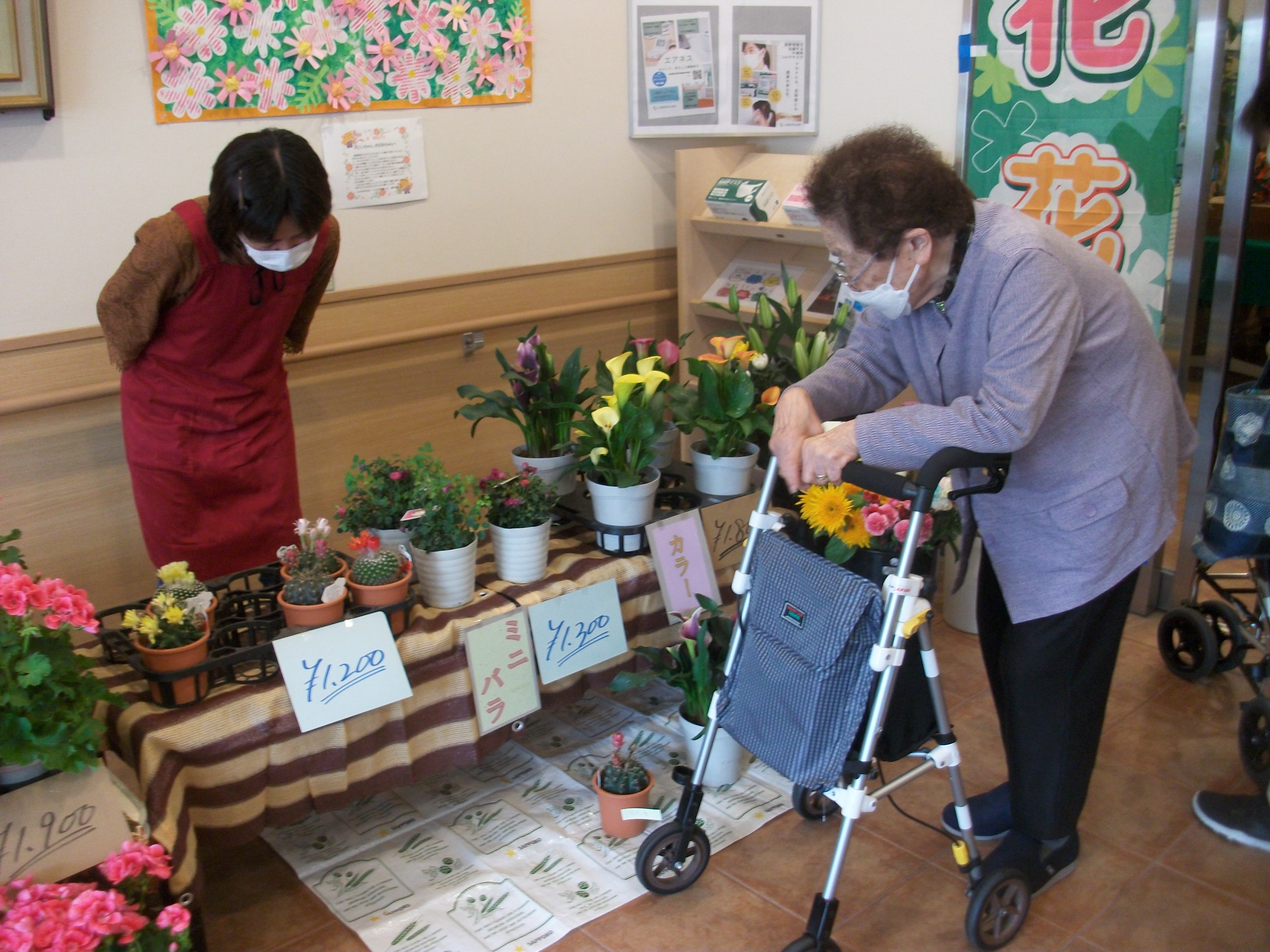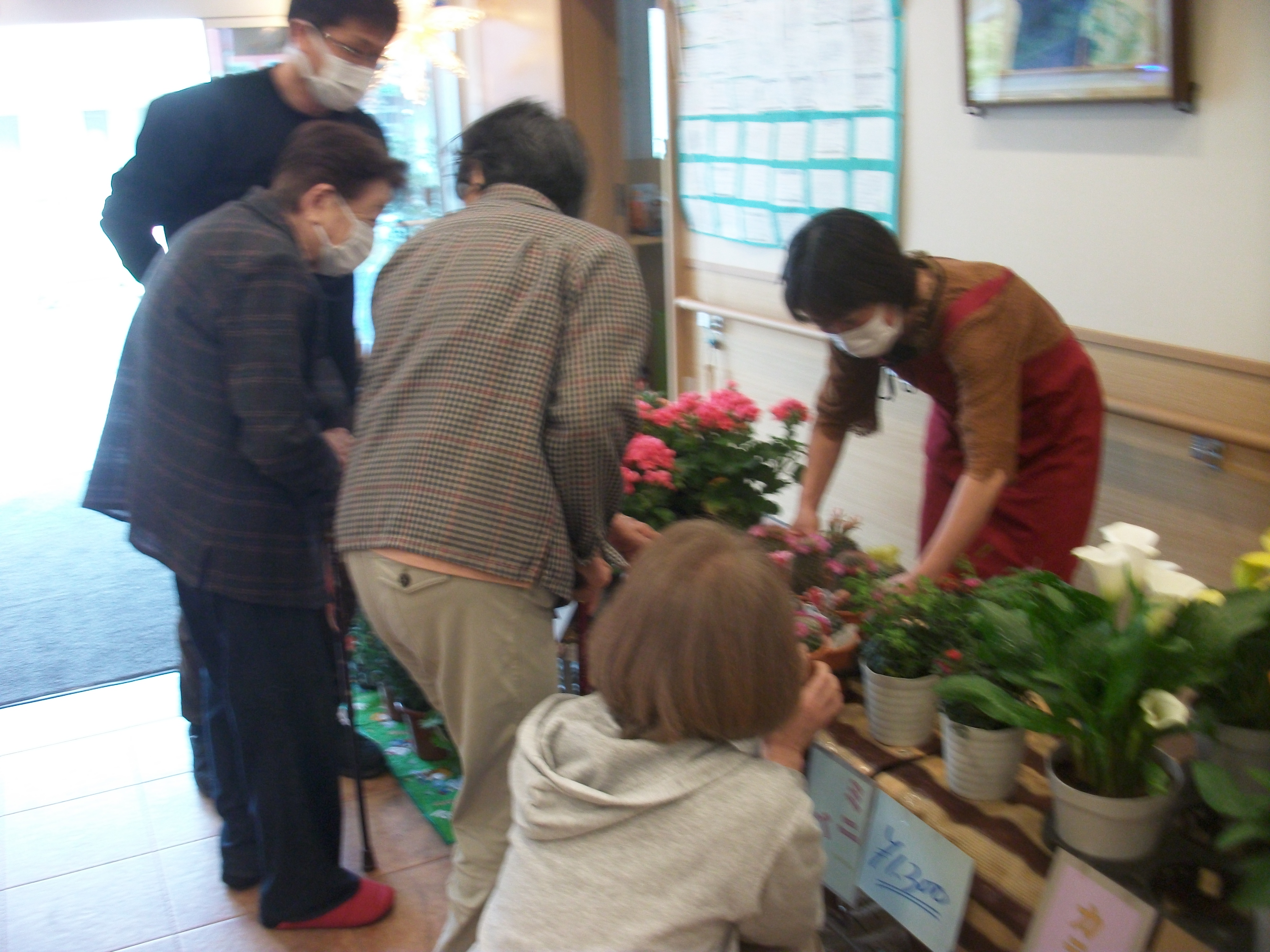 お花の移動販売の時に、以前購入した入居者様のお花の手入れをしてくれるのですが