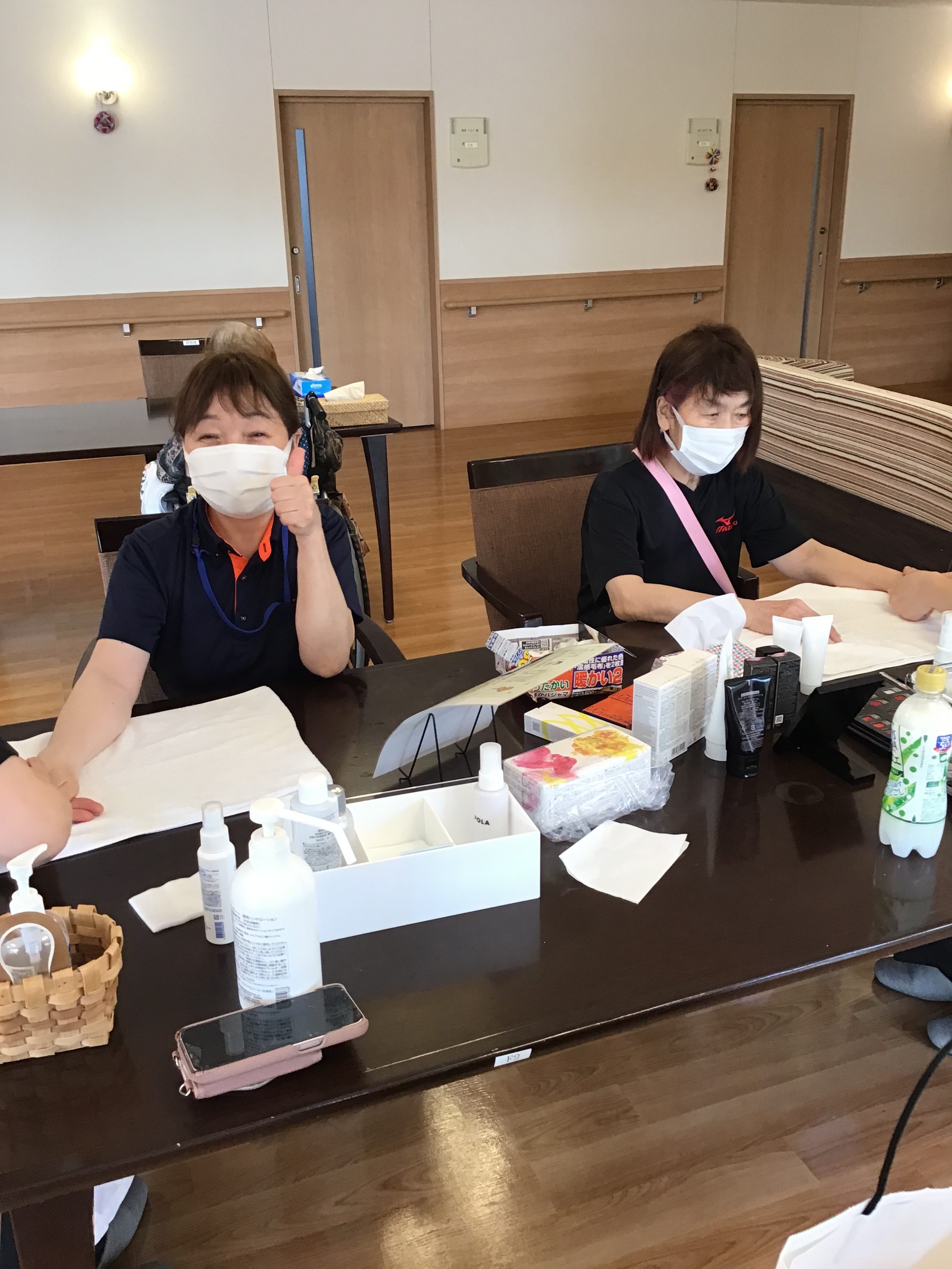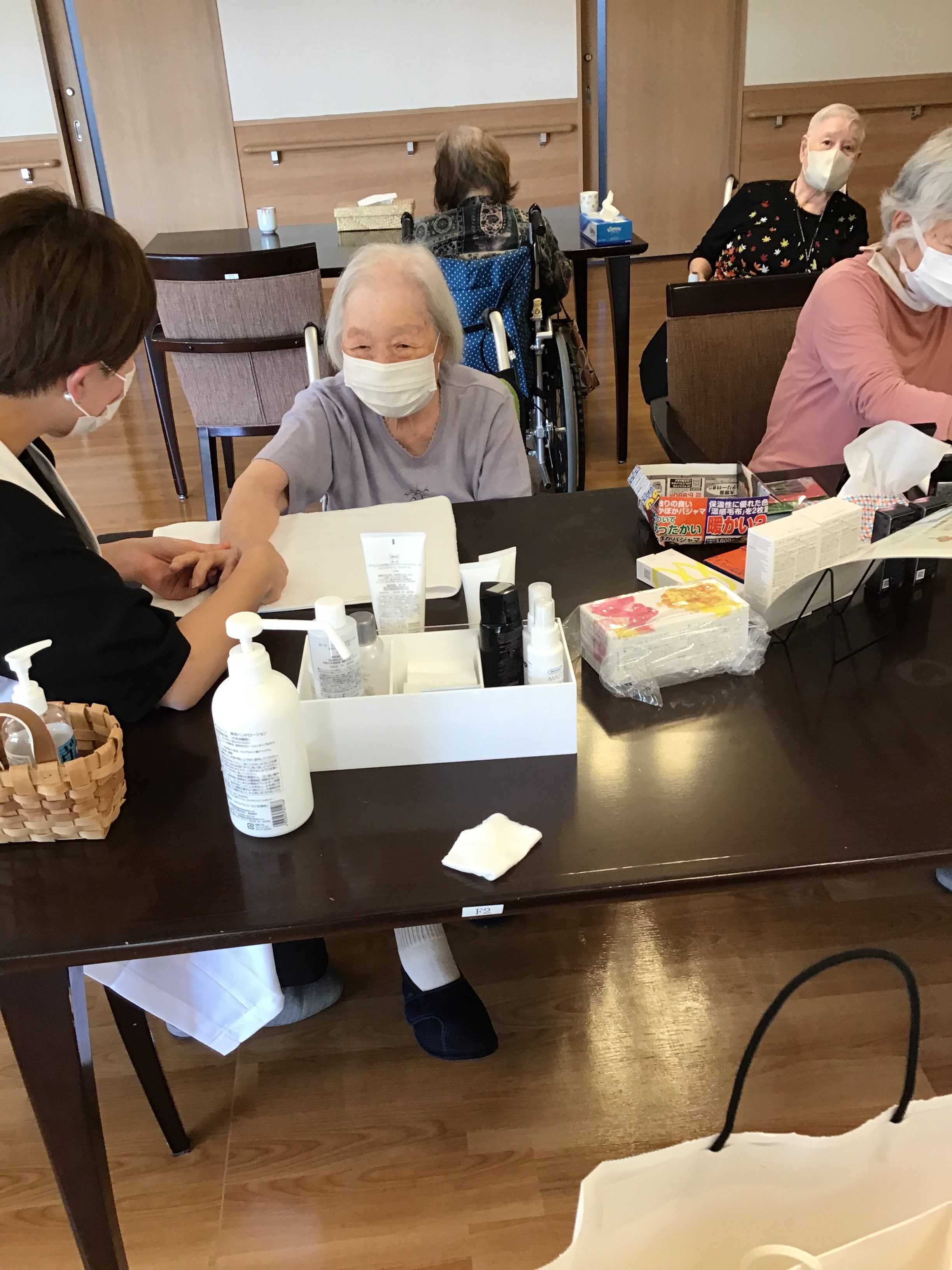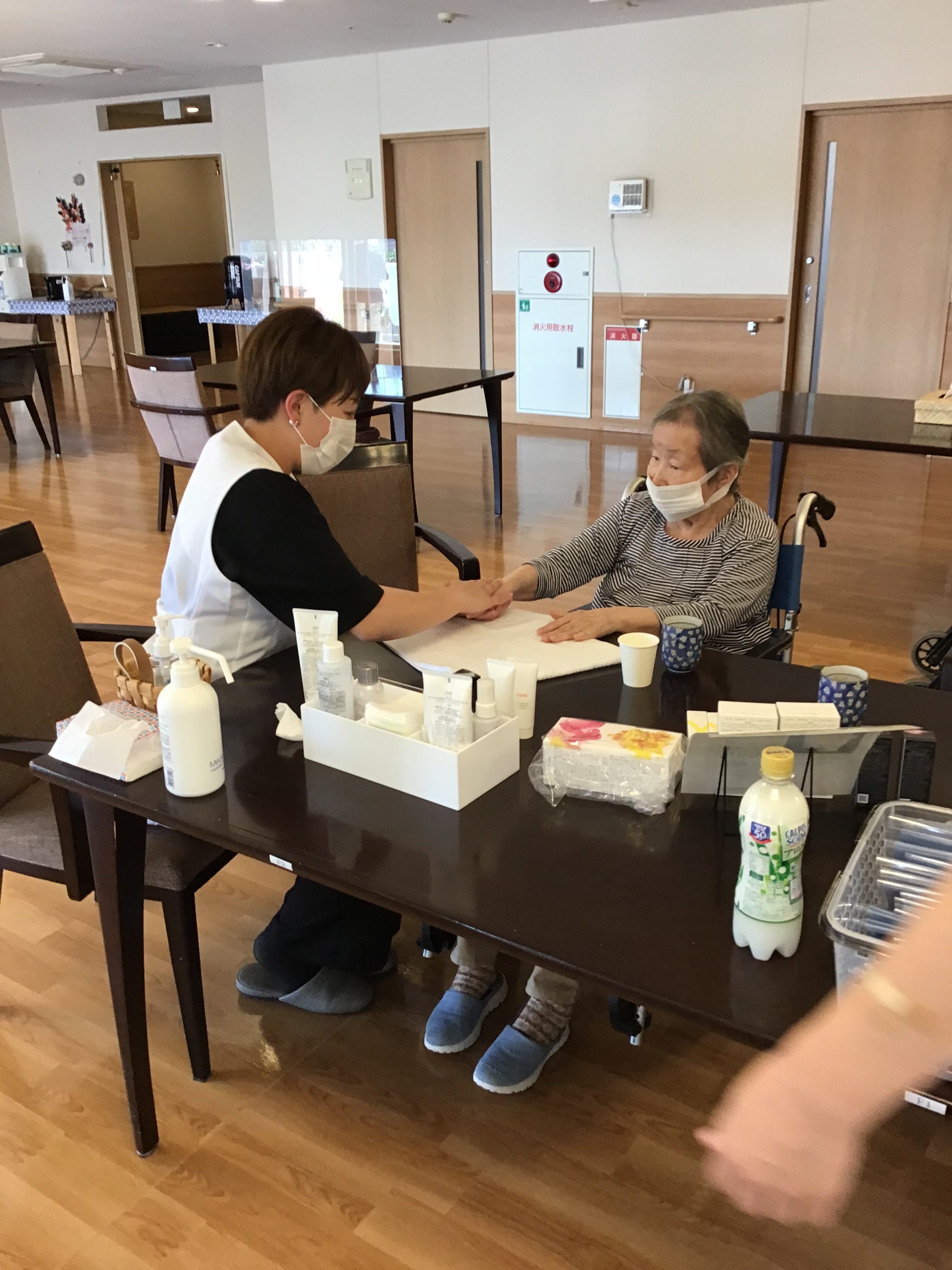 入居者さん利用者さんが終わった後は、スタッフもハンドマッサージをしていただきました!