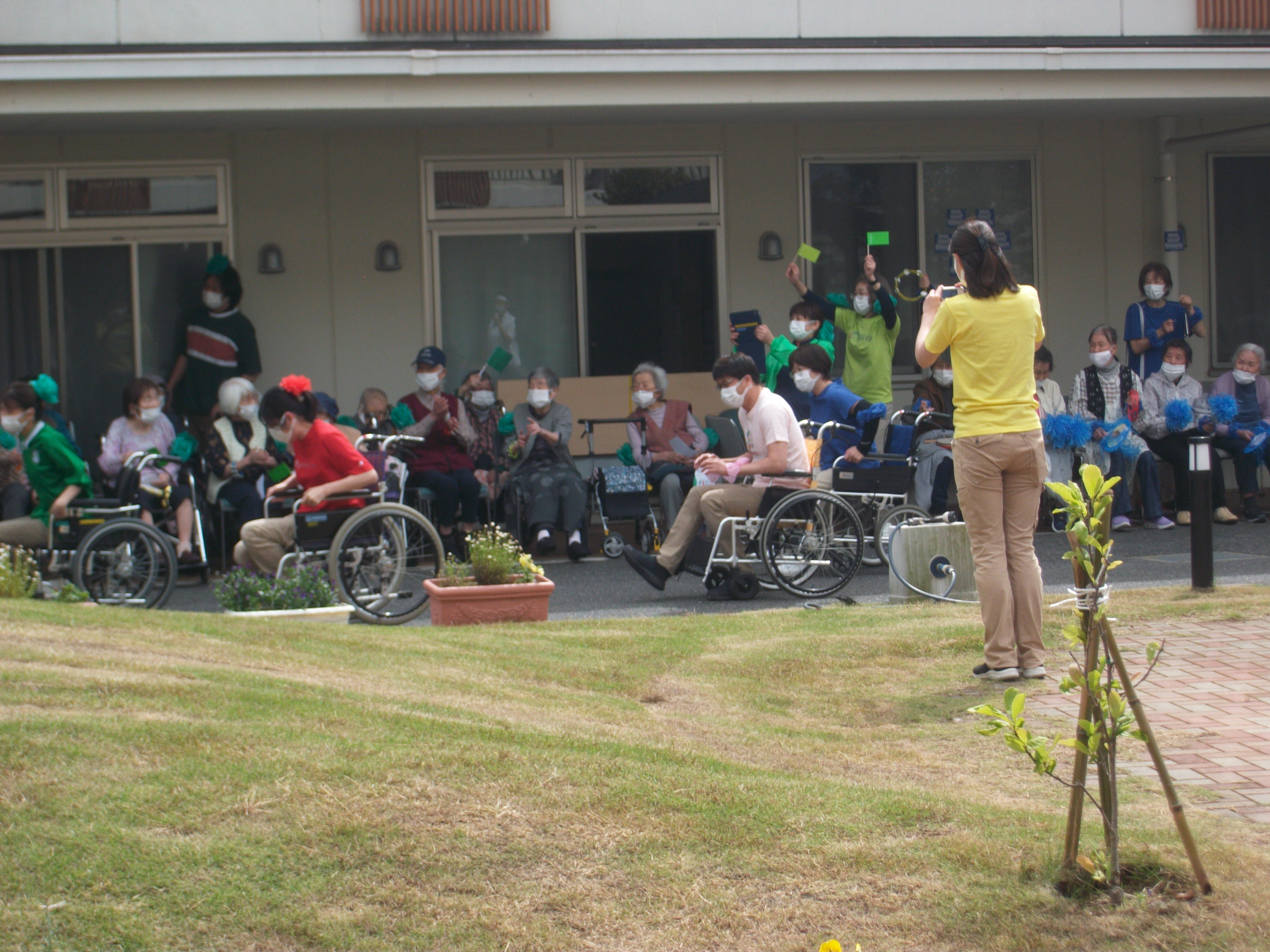 大きな声と、各事業所それぞれ特徴があって、当日までに利用者様・入居者様と一緒に練習したようです!