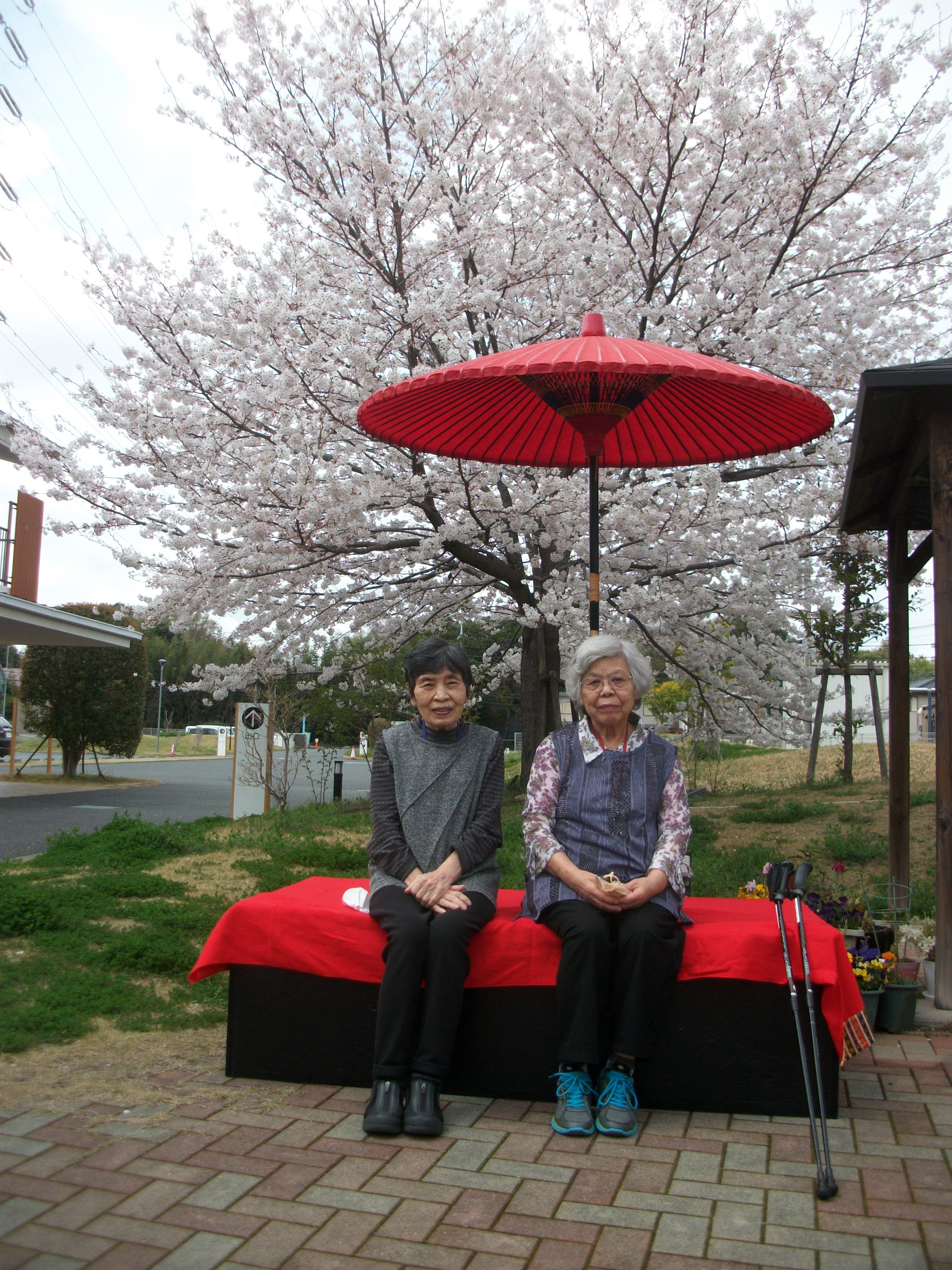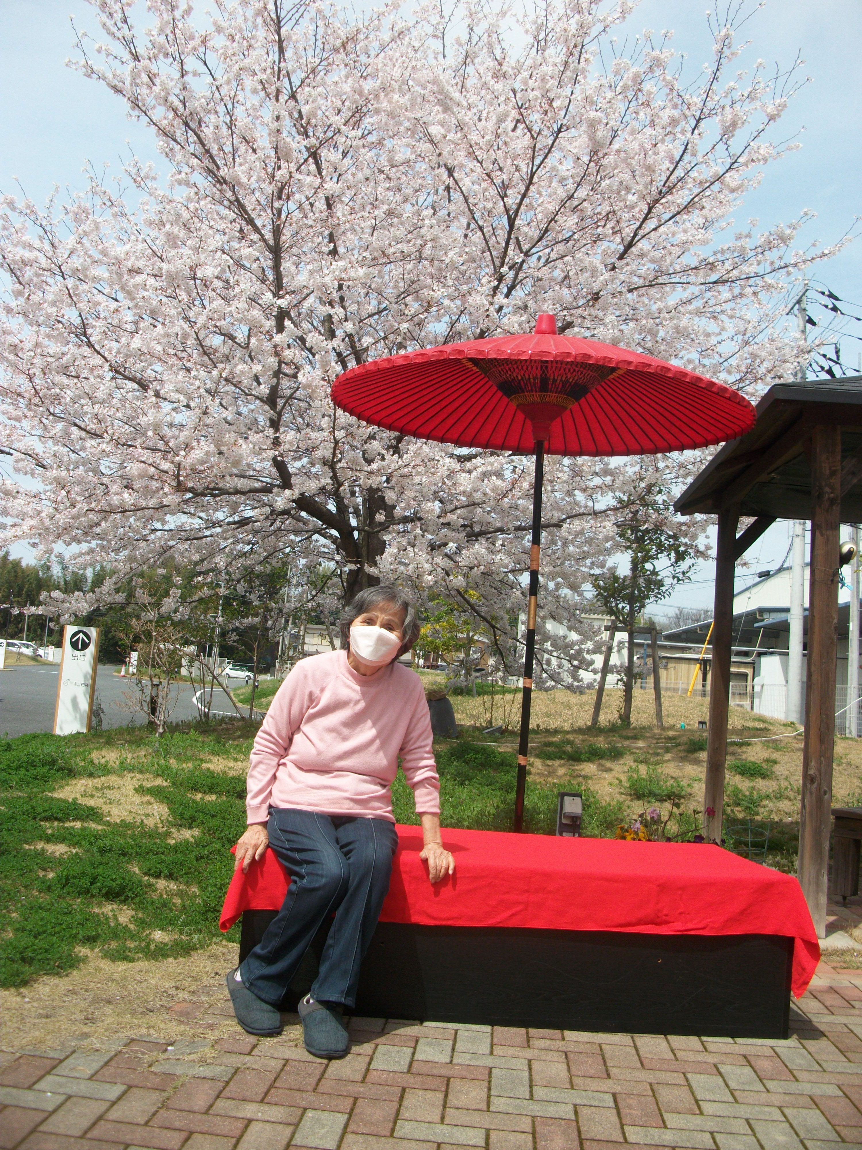 赤い番傘と畳に座って写真撮影が出来るスポットを設置しました!