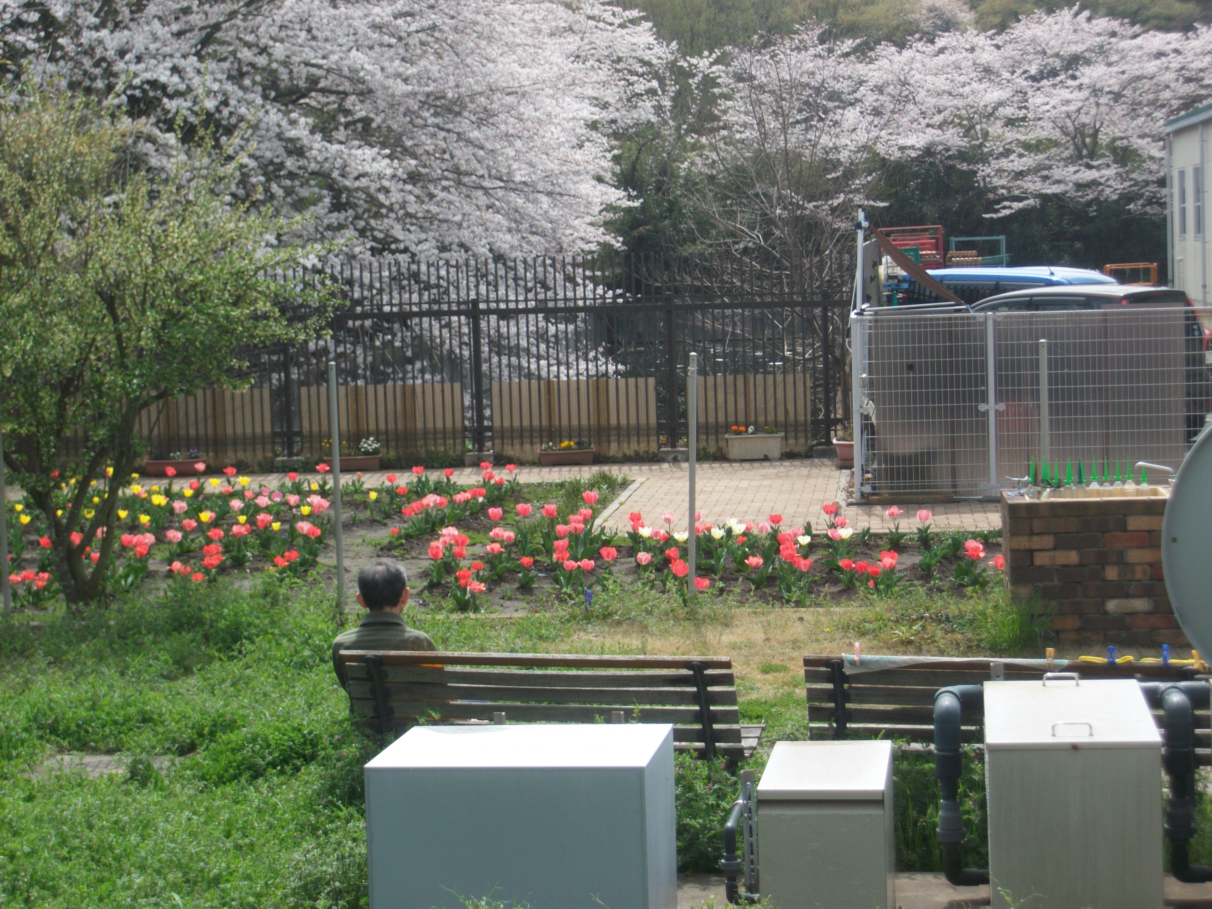 遊歩道の🌸と畑の🌷が一緒に満開です!
