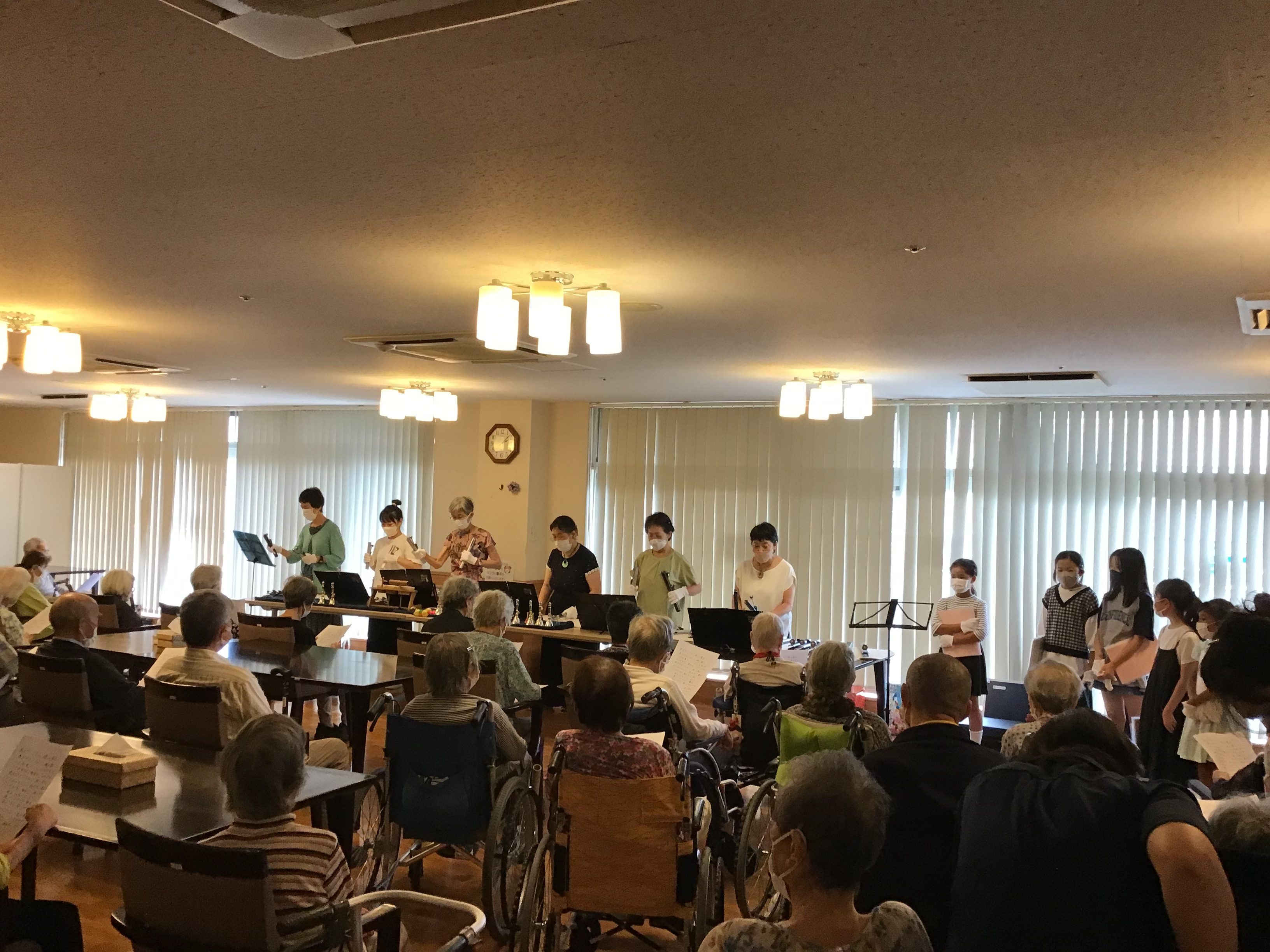 今日は、入居者様のご家族様がボランティァで子供達と一緒にハンドベルの演奏会をしてくれました。