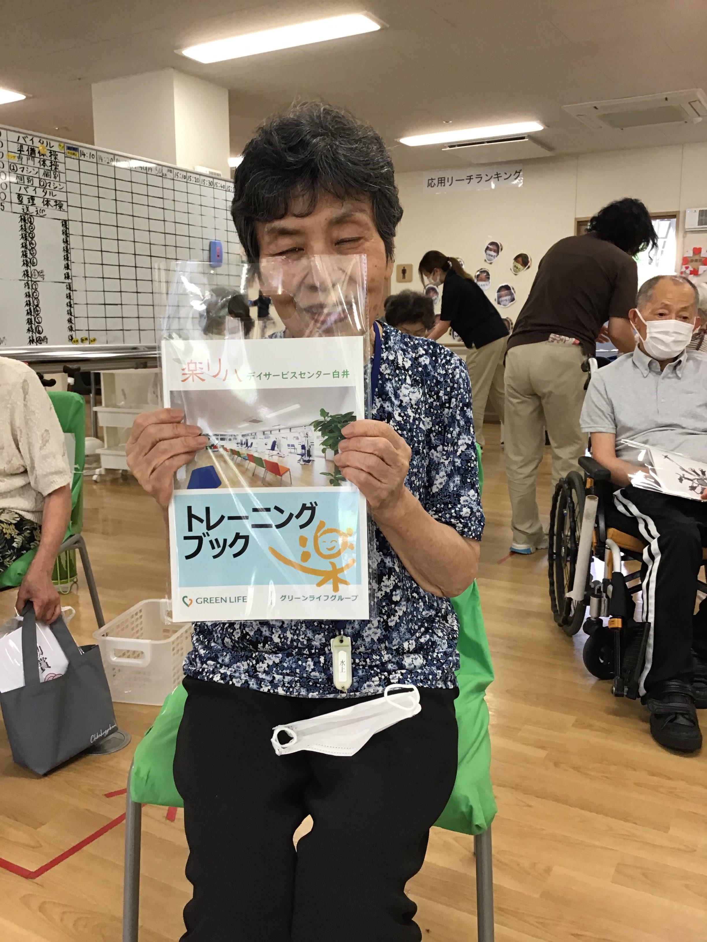 プチおやつ等を提供したり、トレーニングブックを作って利用者様に配布したり、