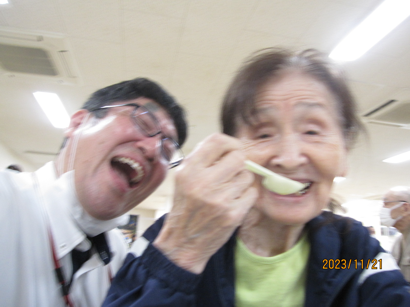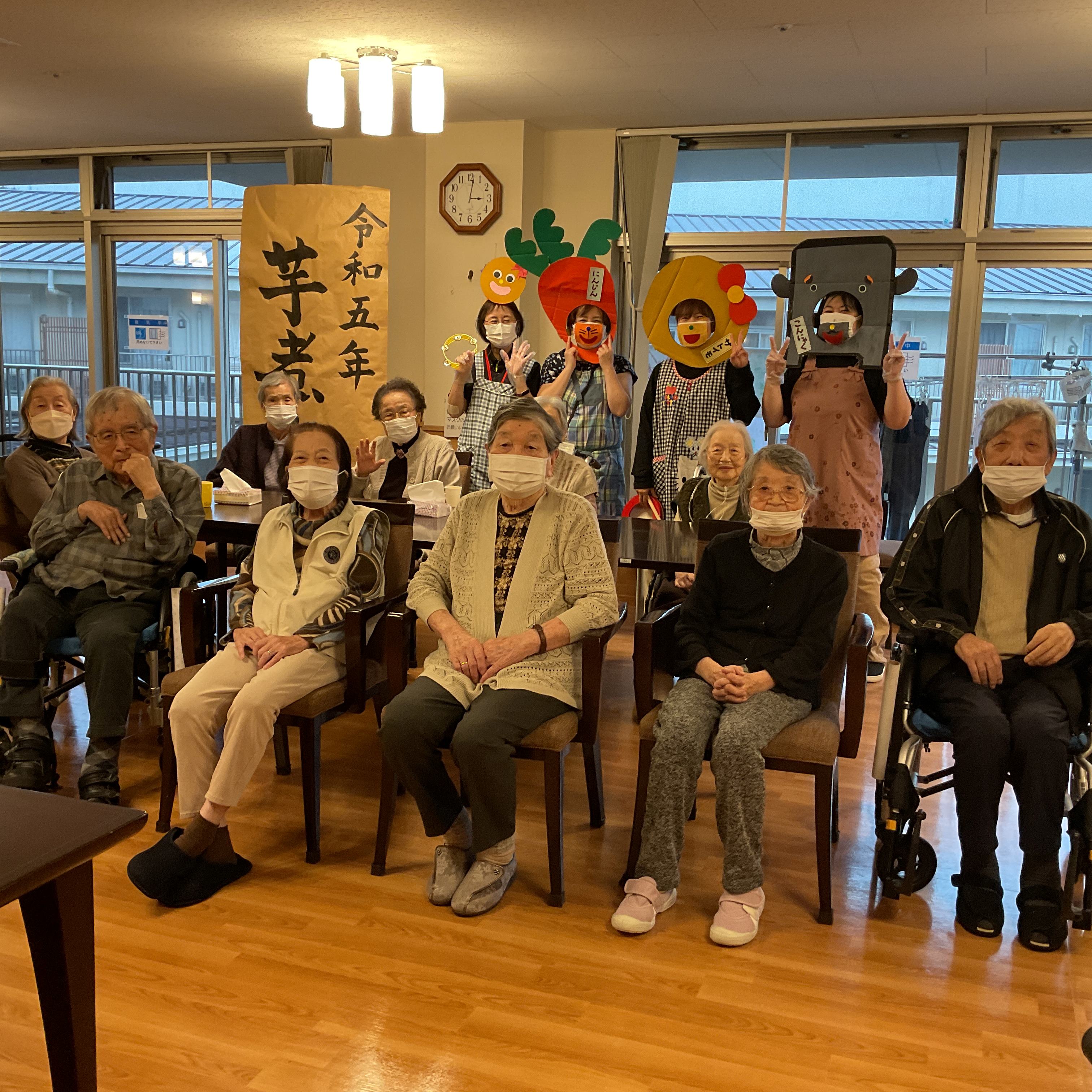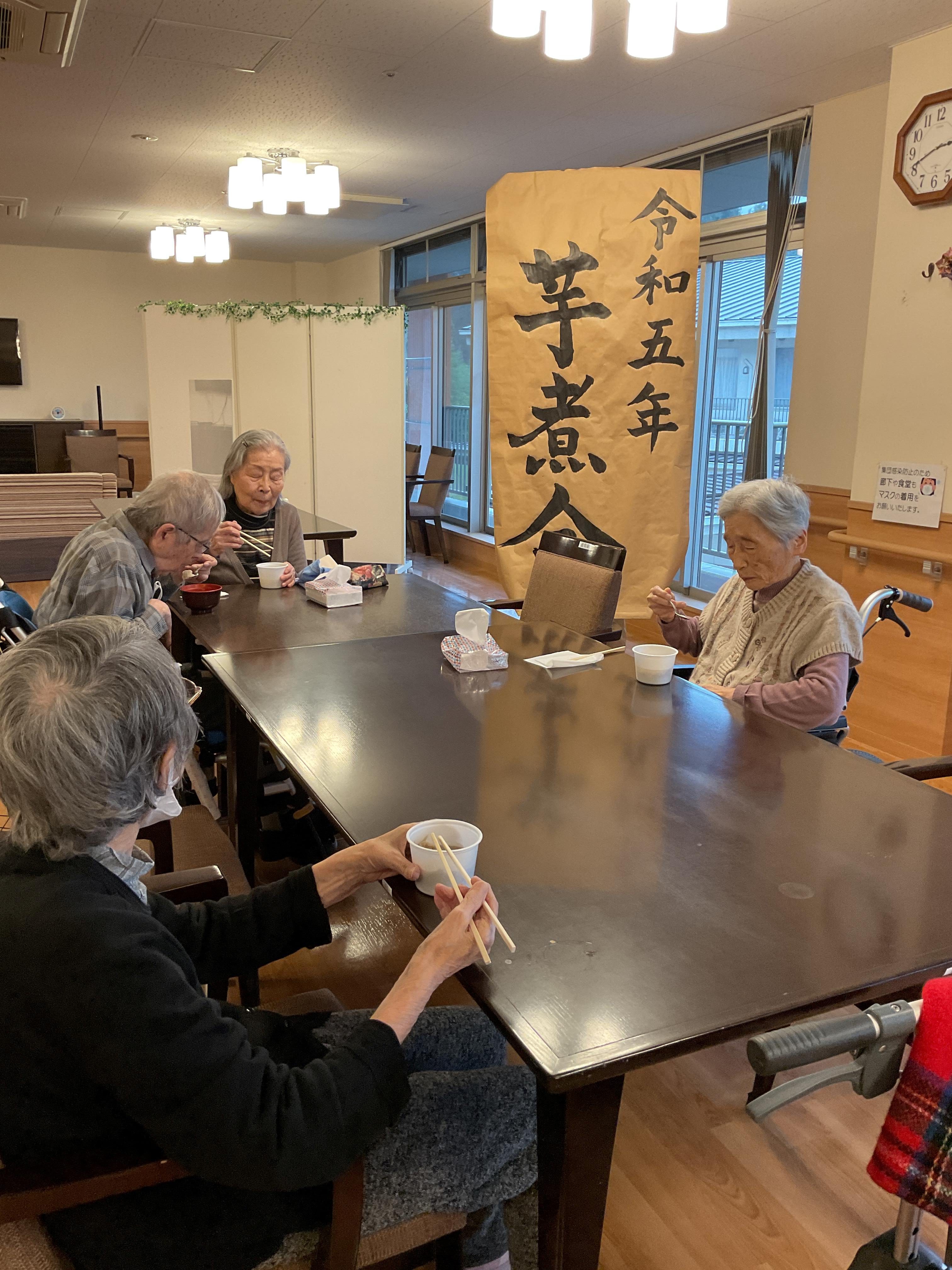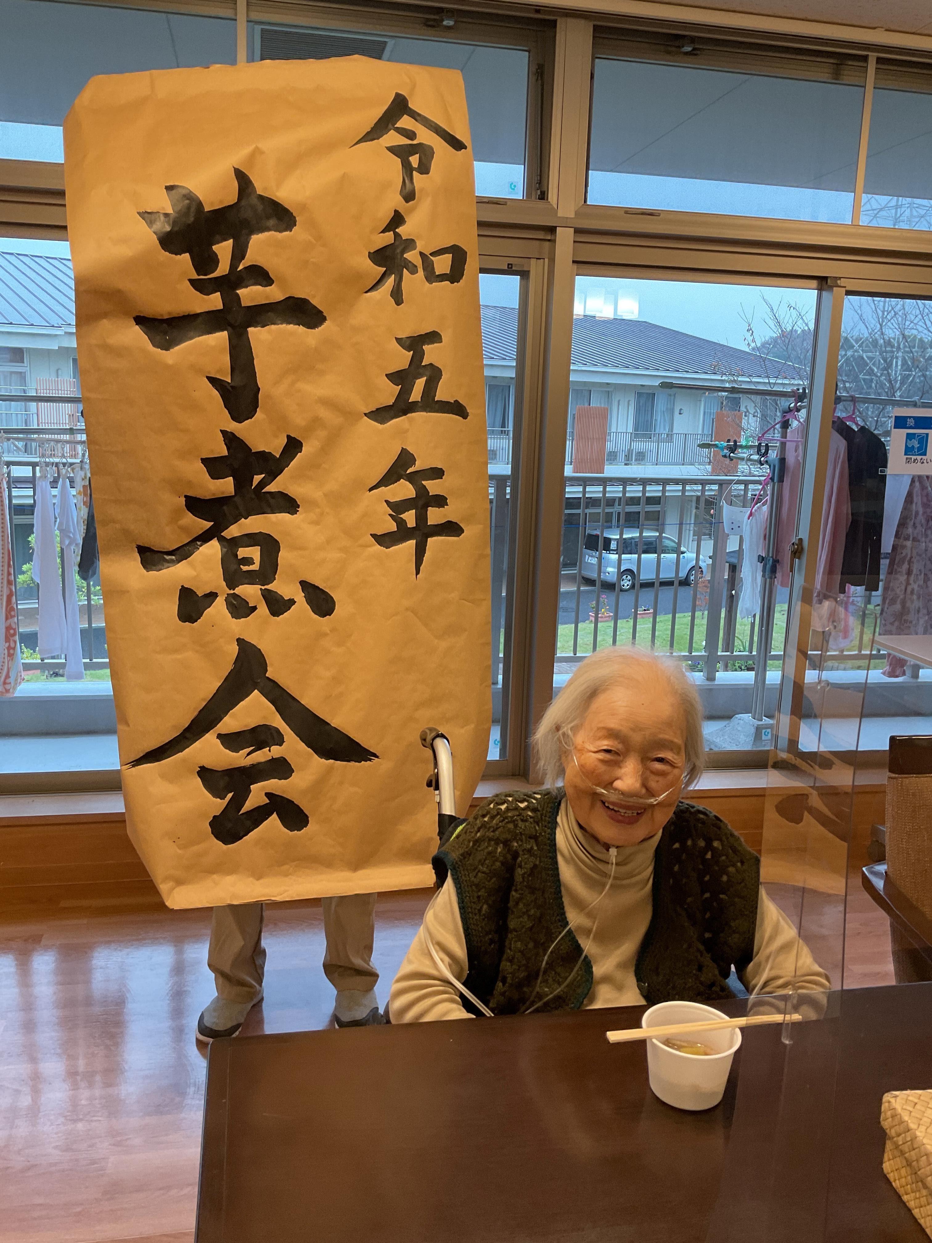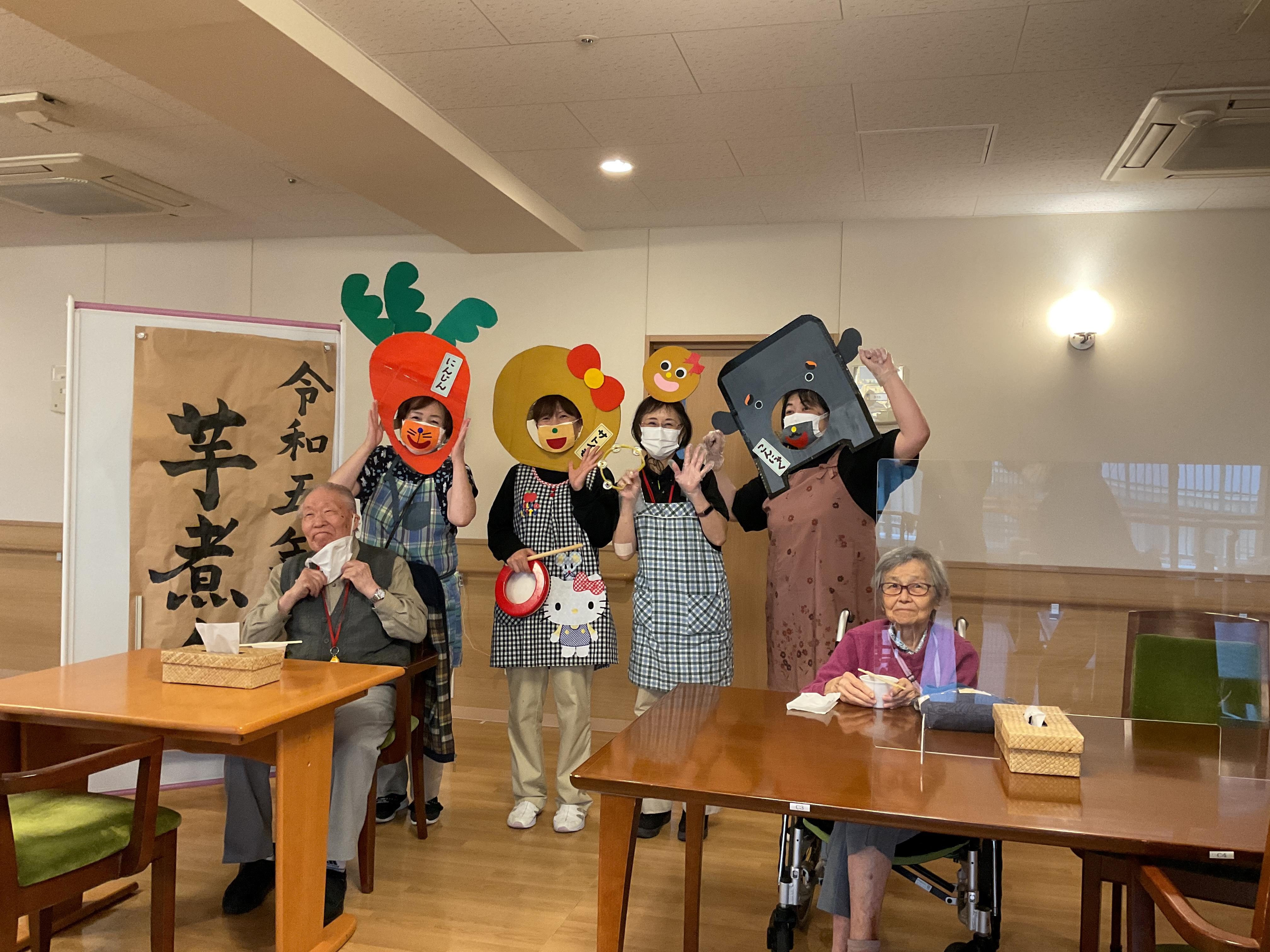 ちょっと寒くて外で芋煮会はできなかったのですが、スタッフ作成の被り物をかぶってみなさん楽しそうですね~