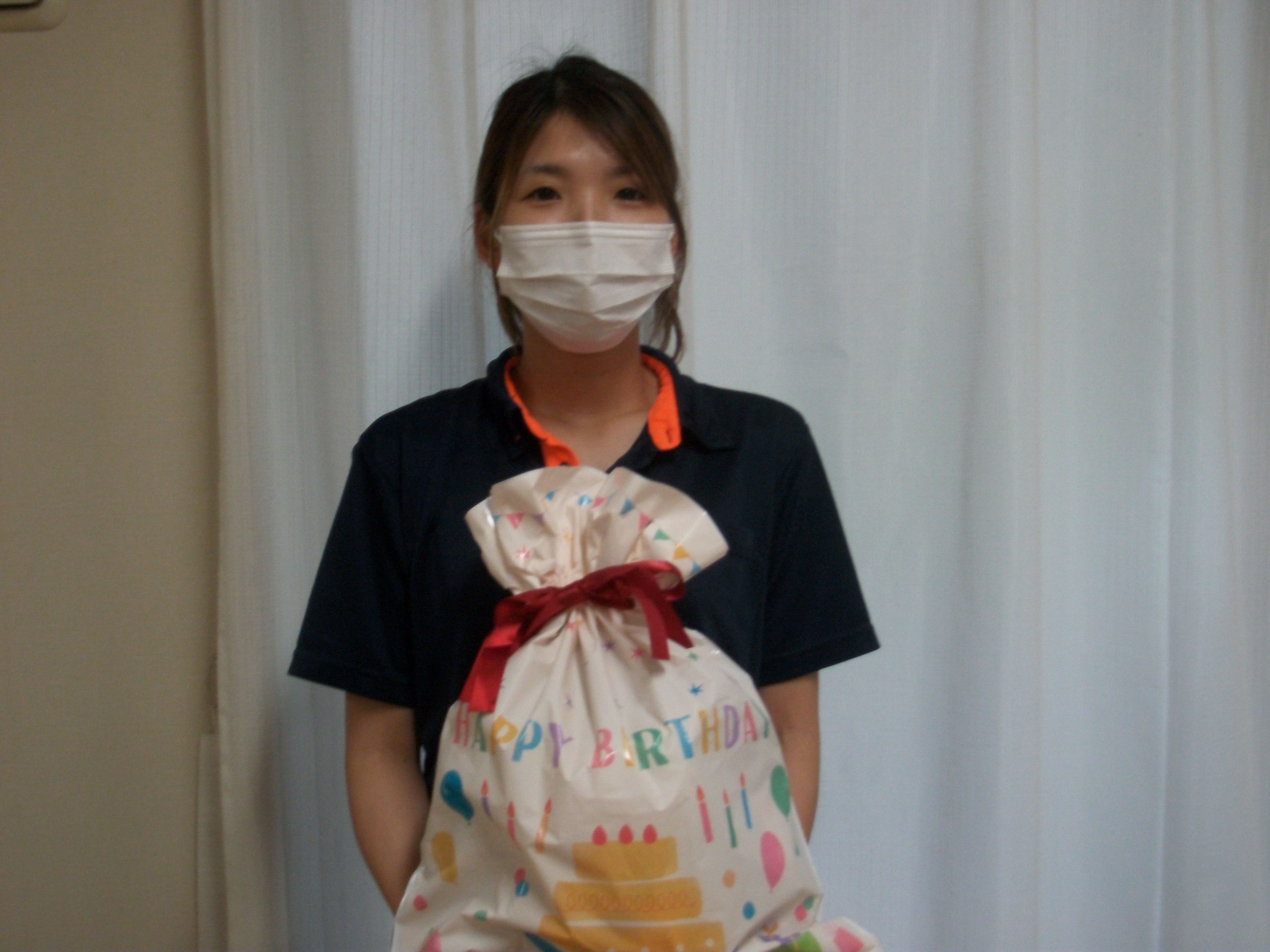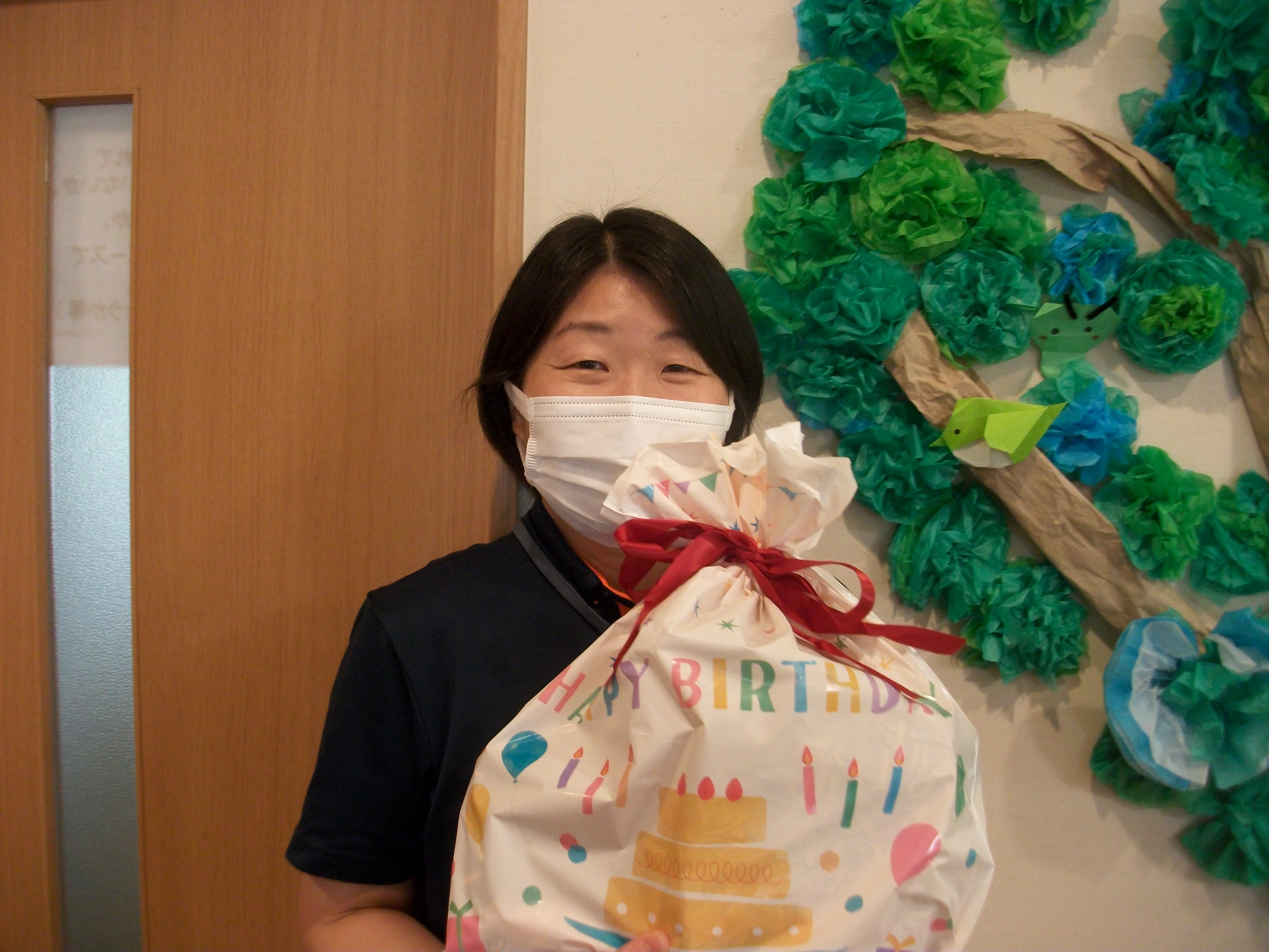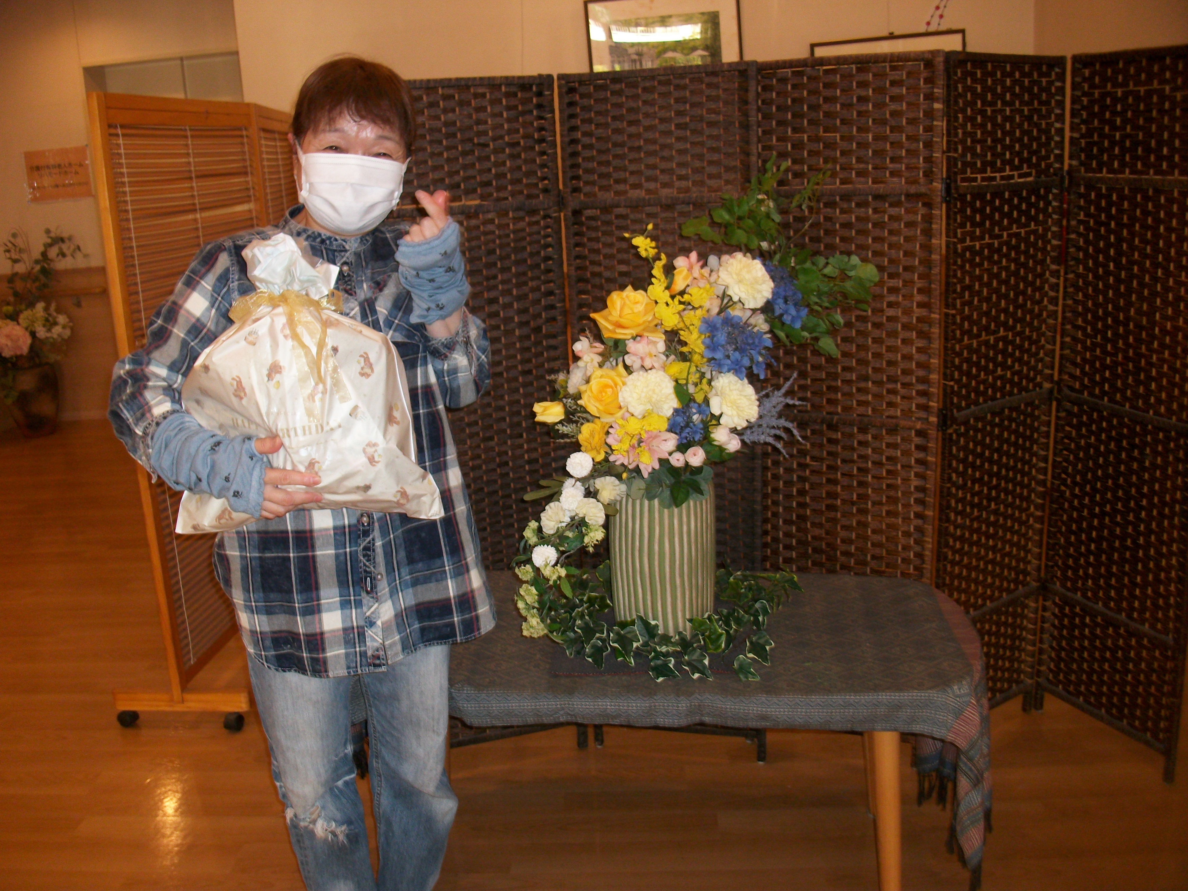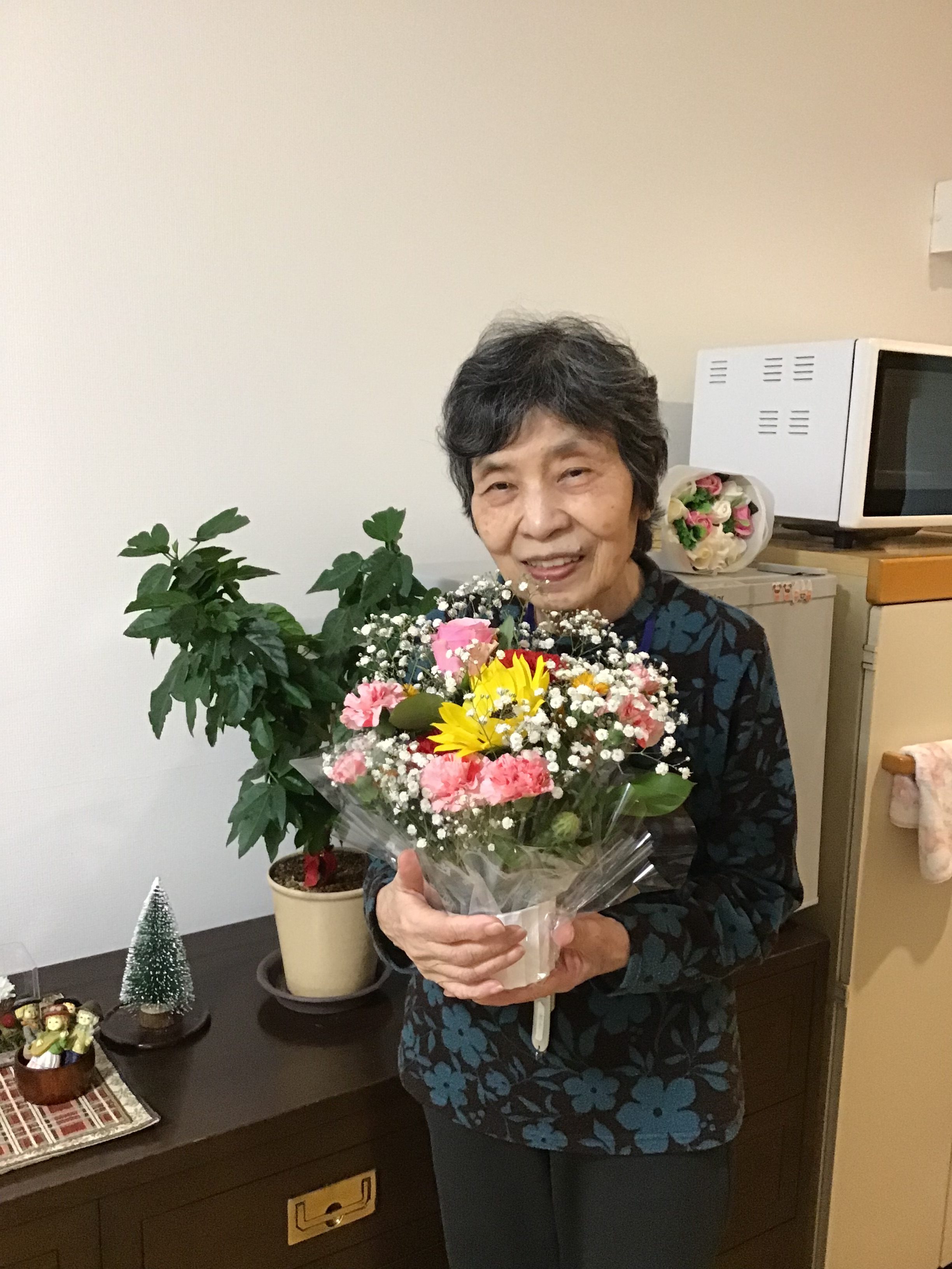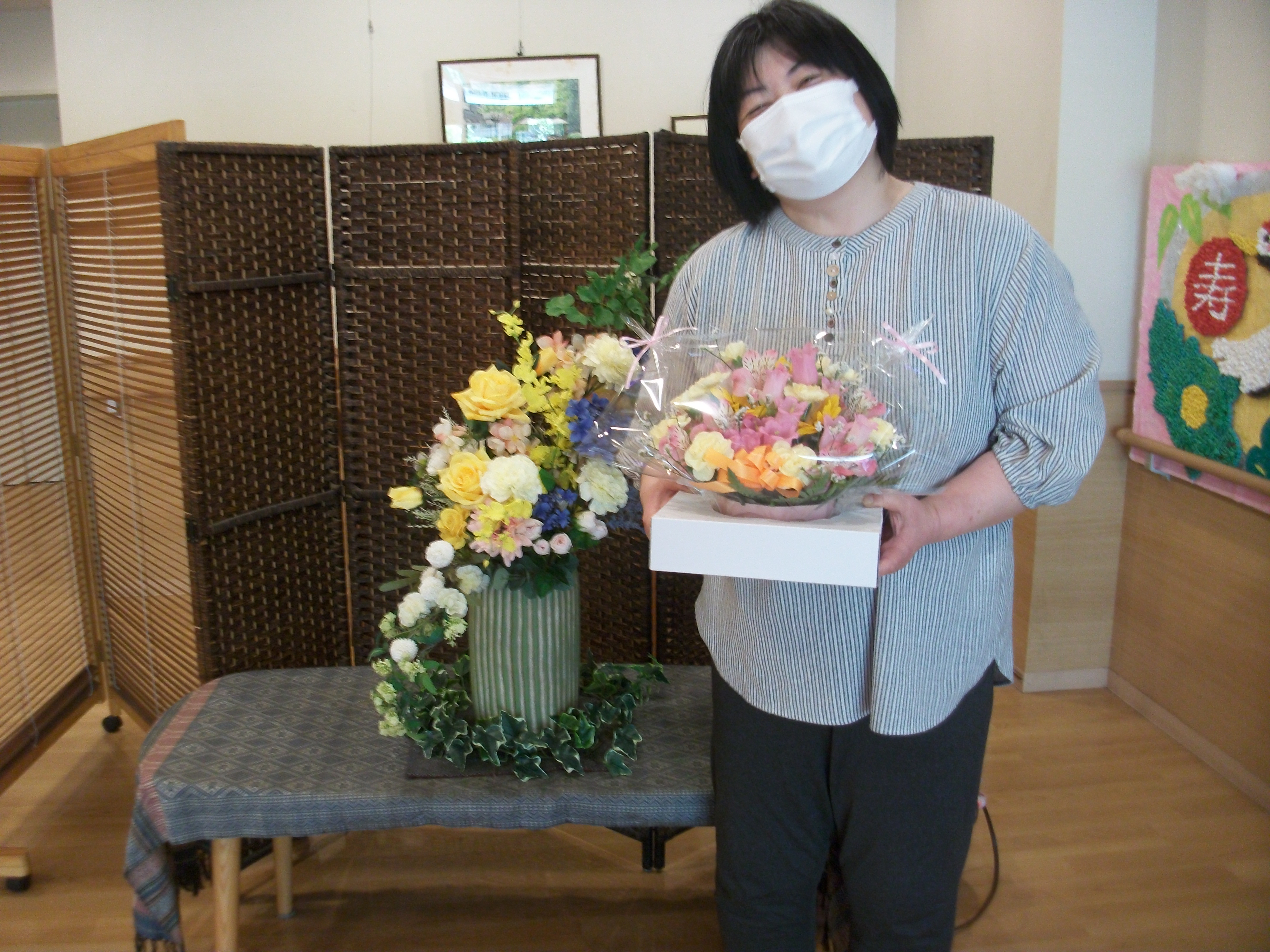母の日に、カーネーションとご家族からのハガキをお渡しいたしました。