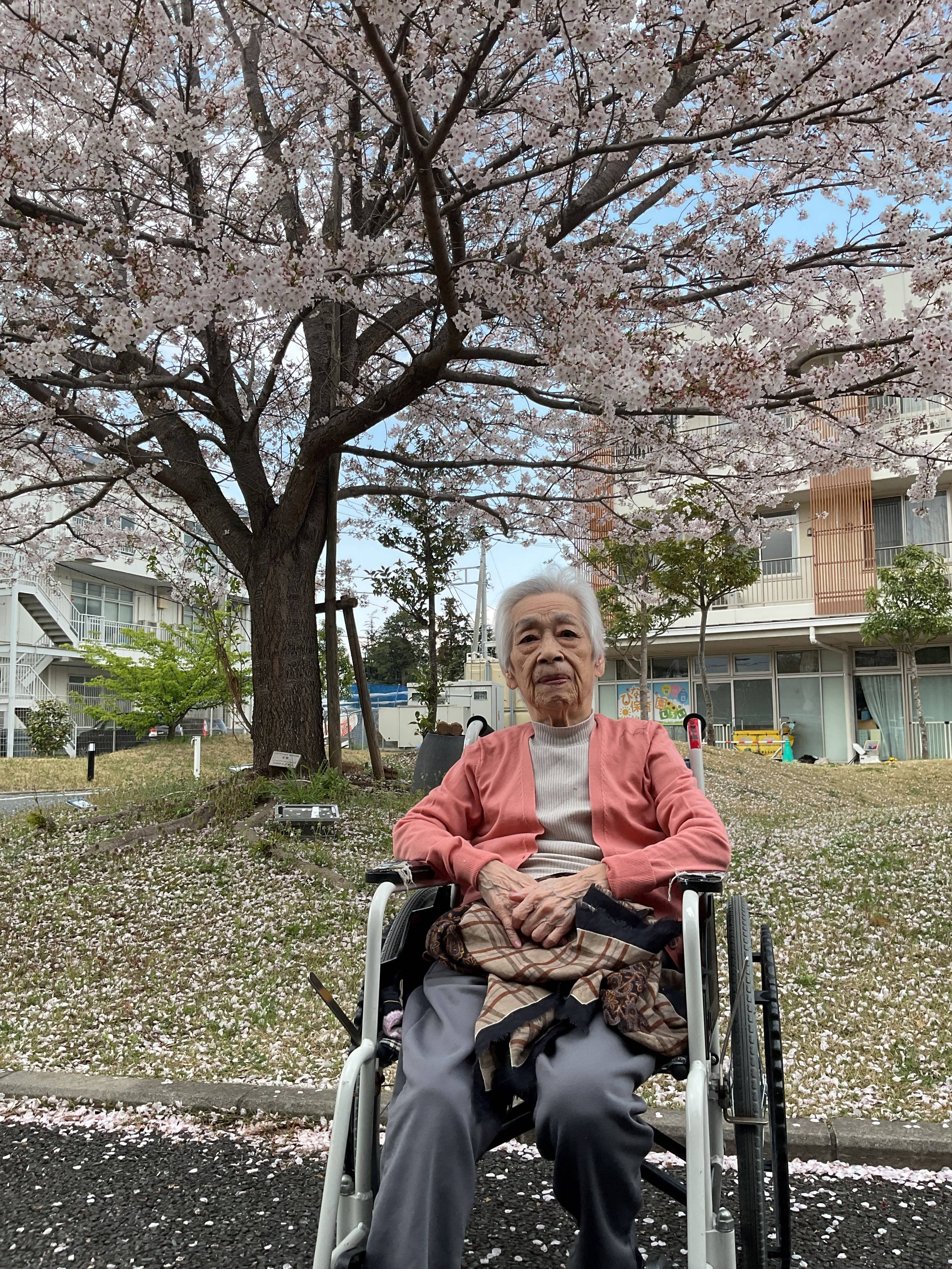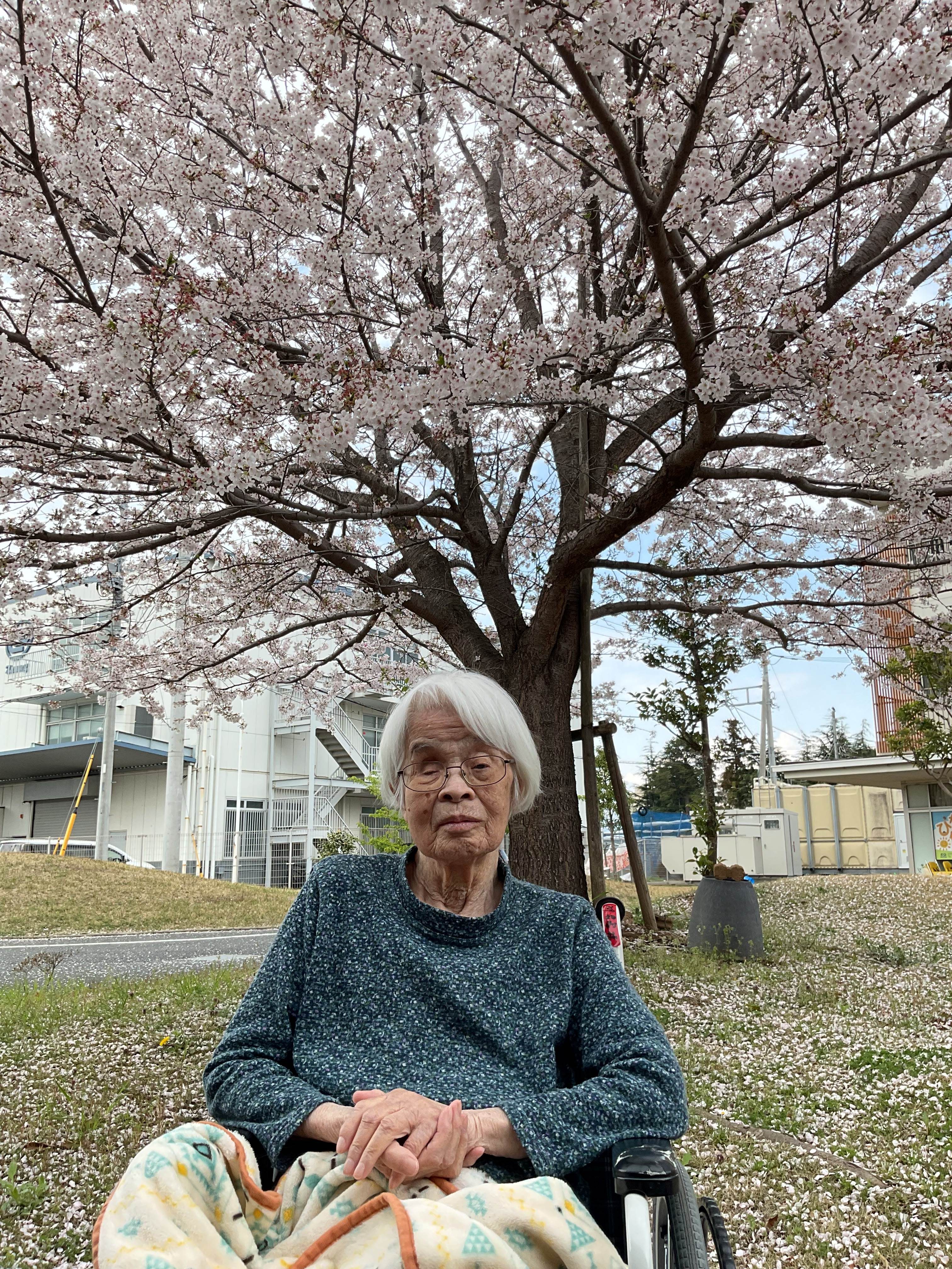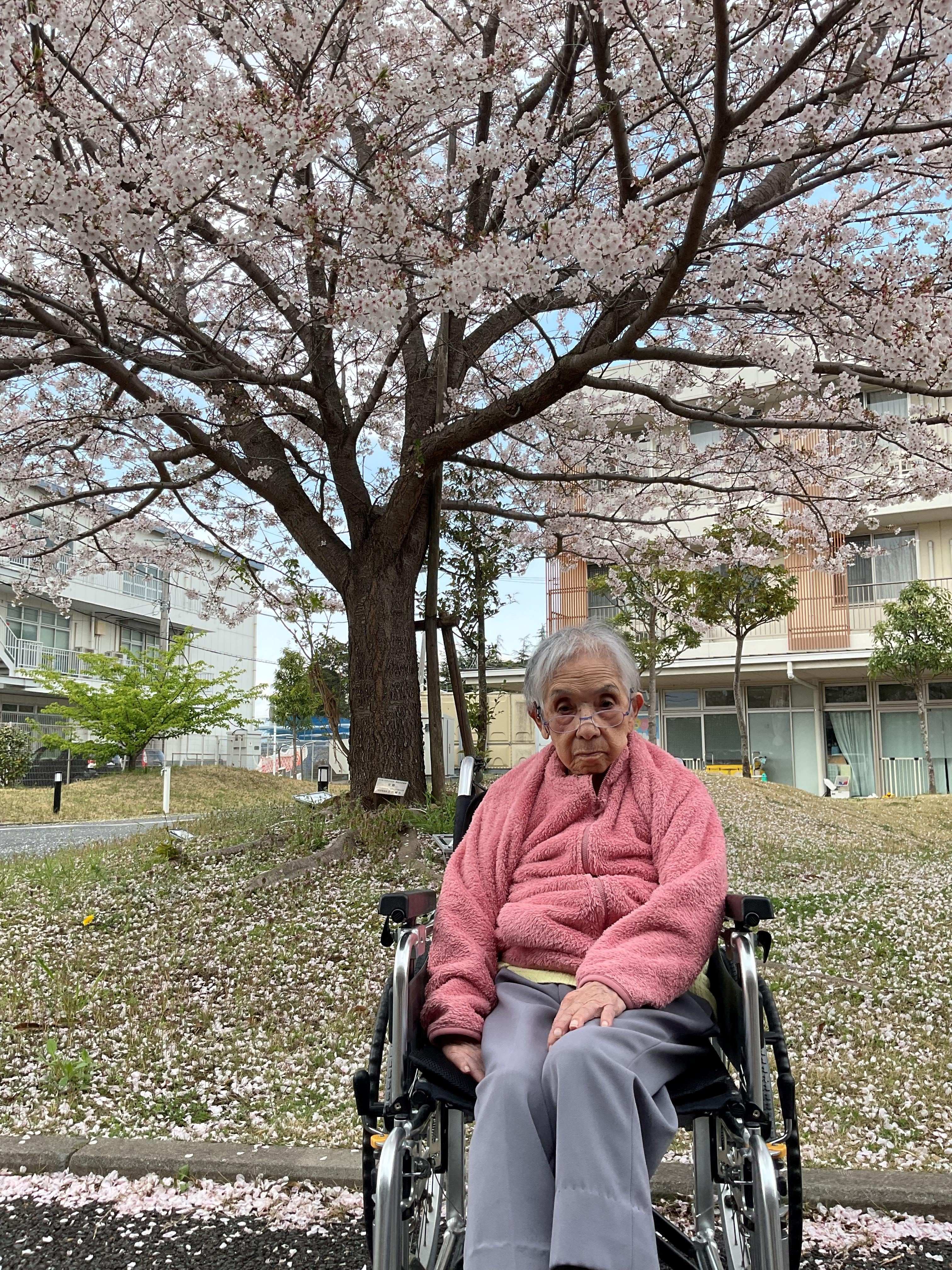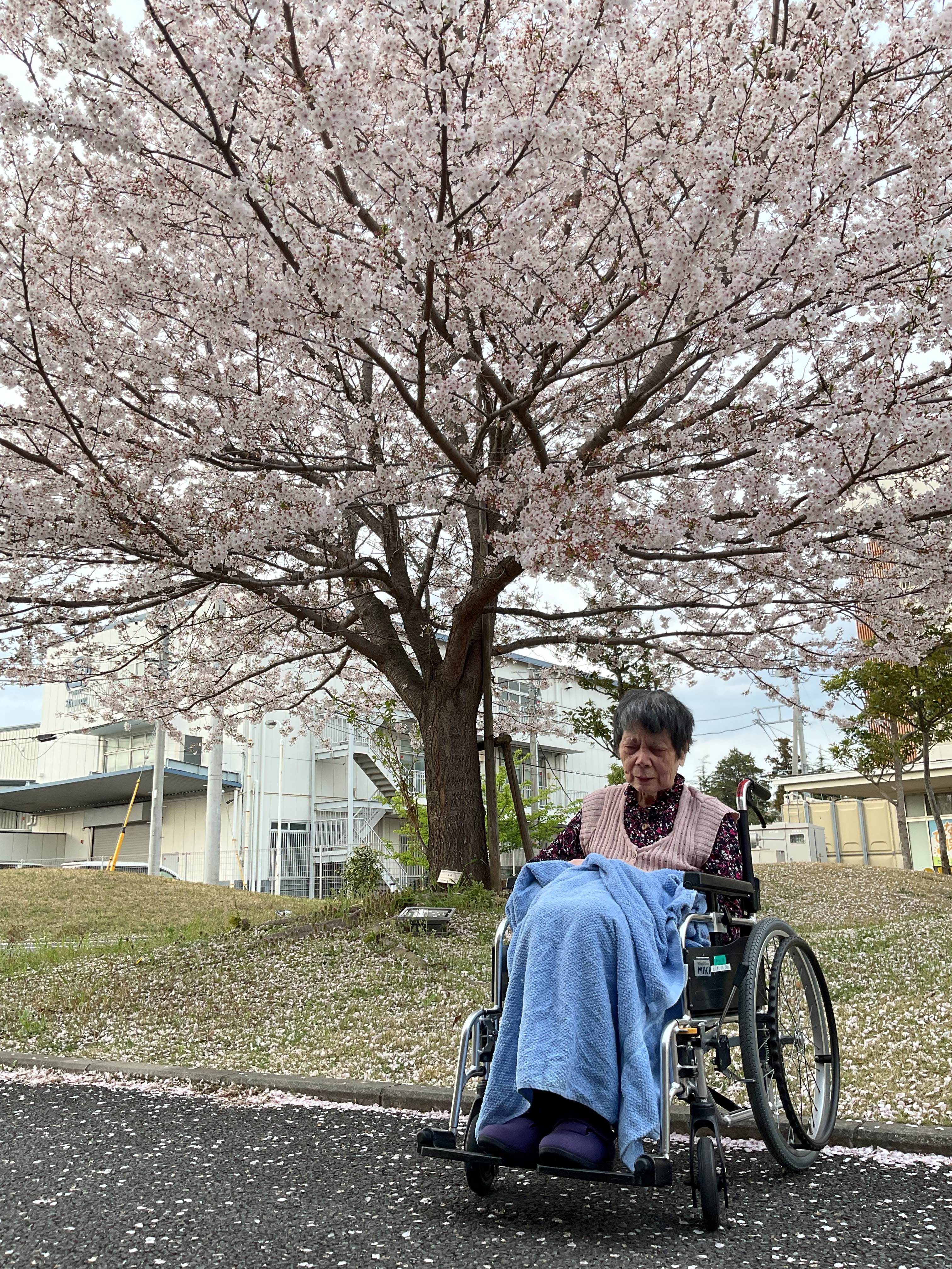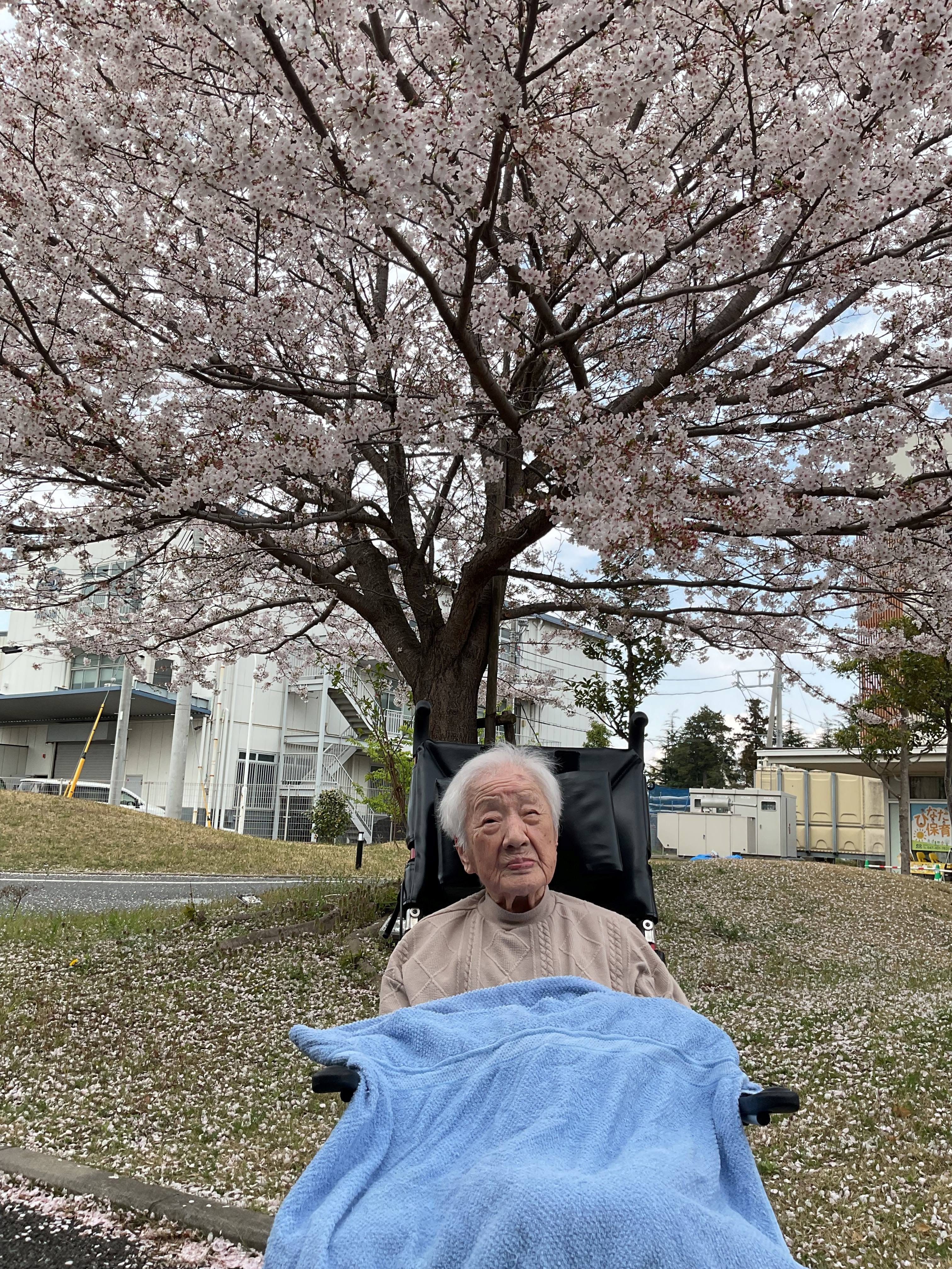 桜吹雪の木の下で、桜が散る前に記念撮影です!