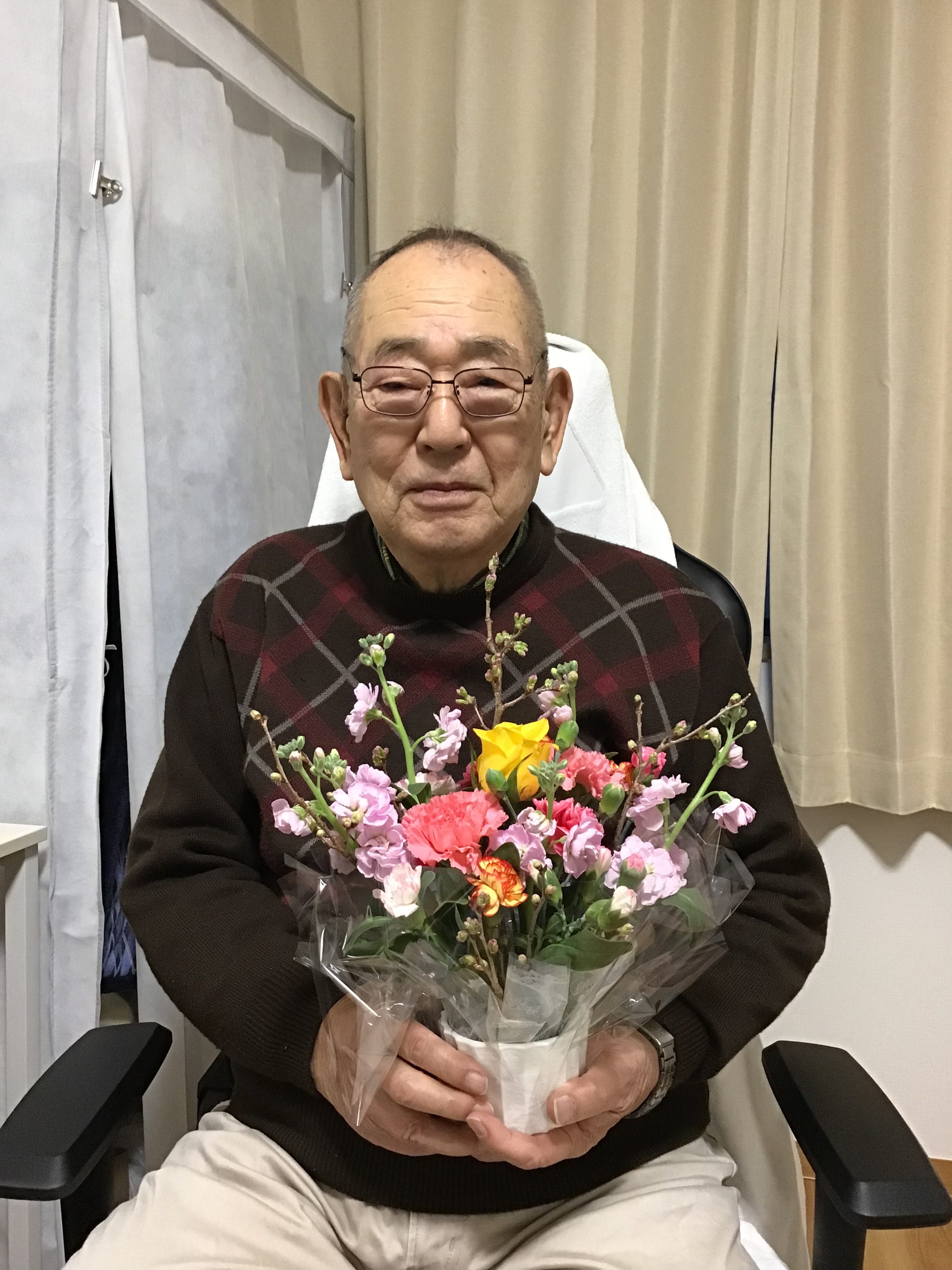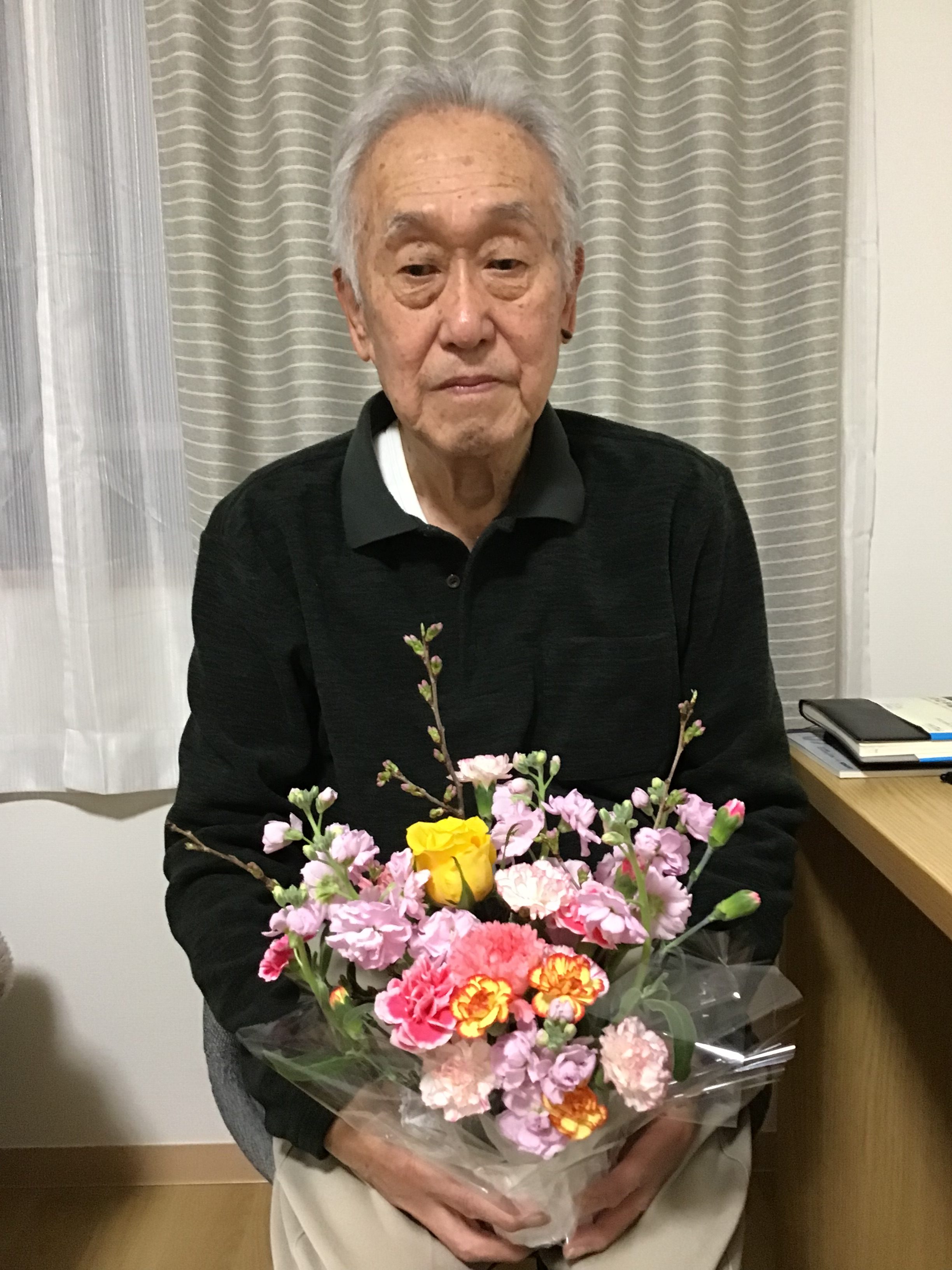 お誕生月の入居者様にお花のアレンジメントをプレゼントいたしました。