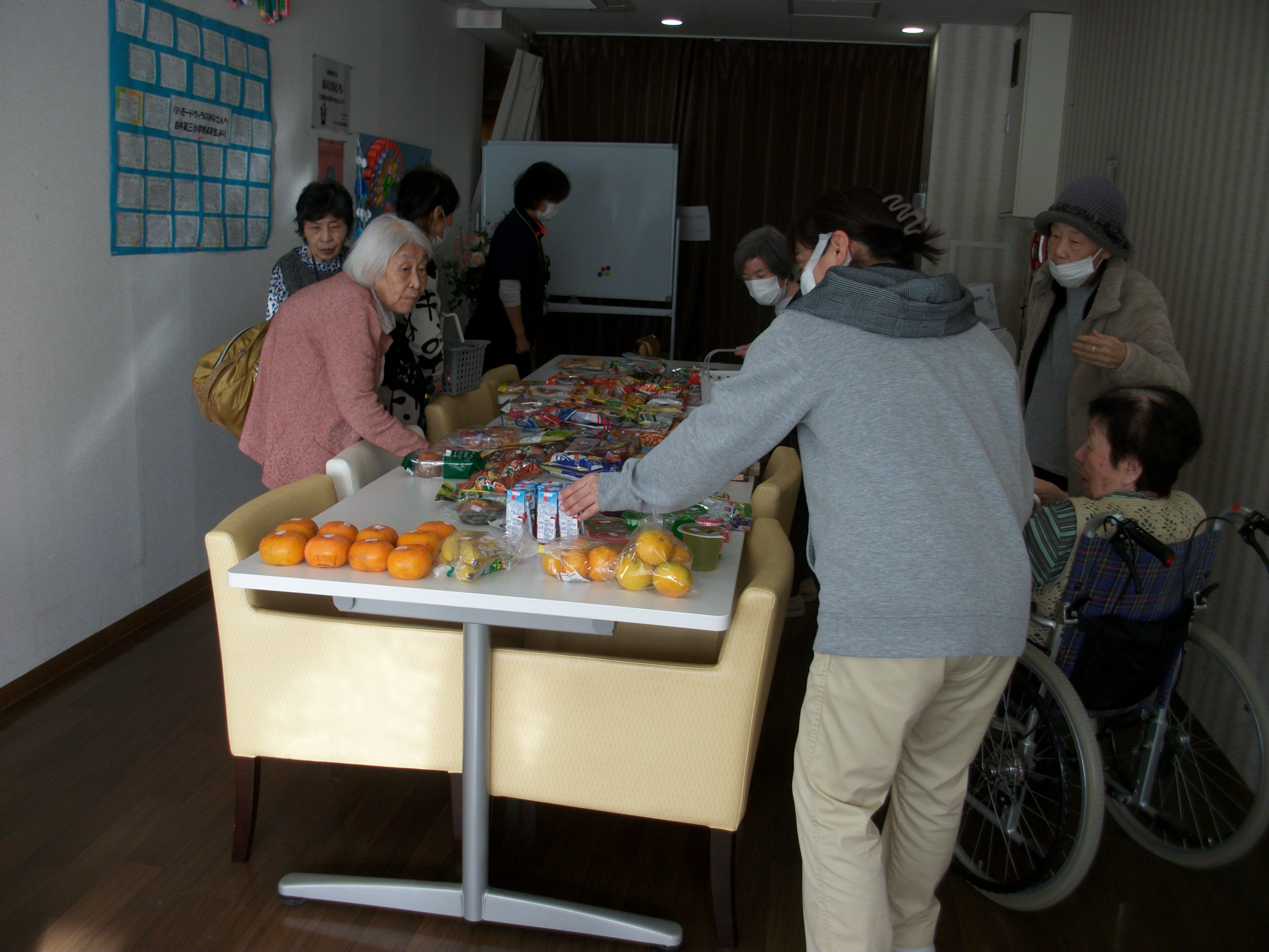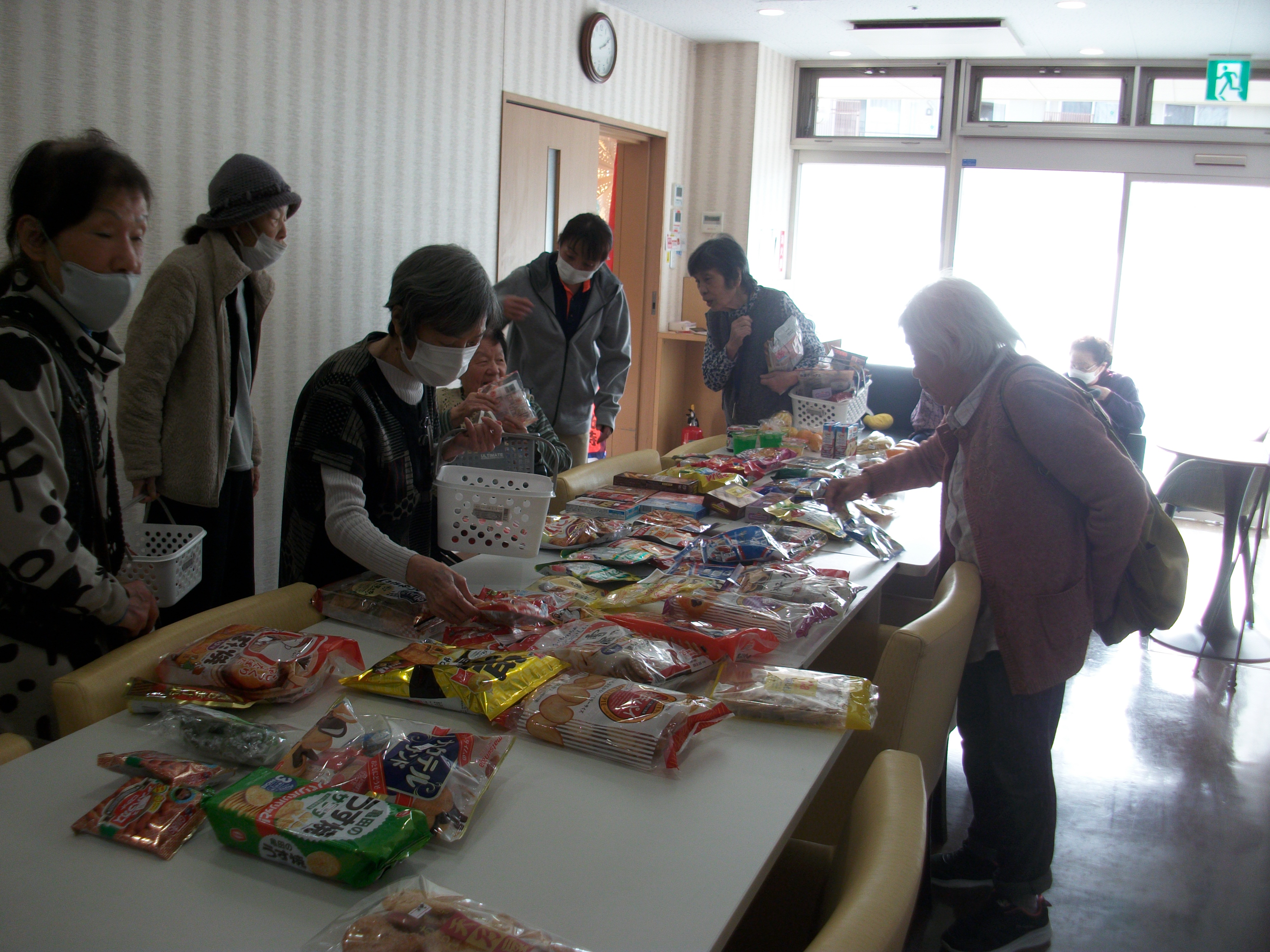 みなさん、果物やお菓子をかごいっぱいにしてお買い物を楽しんでいらっしゃいました。