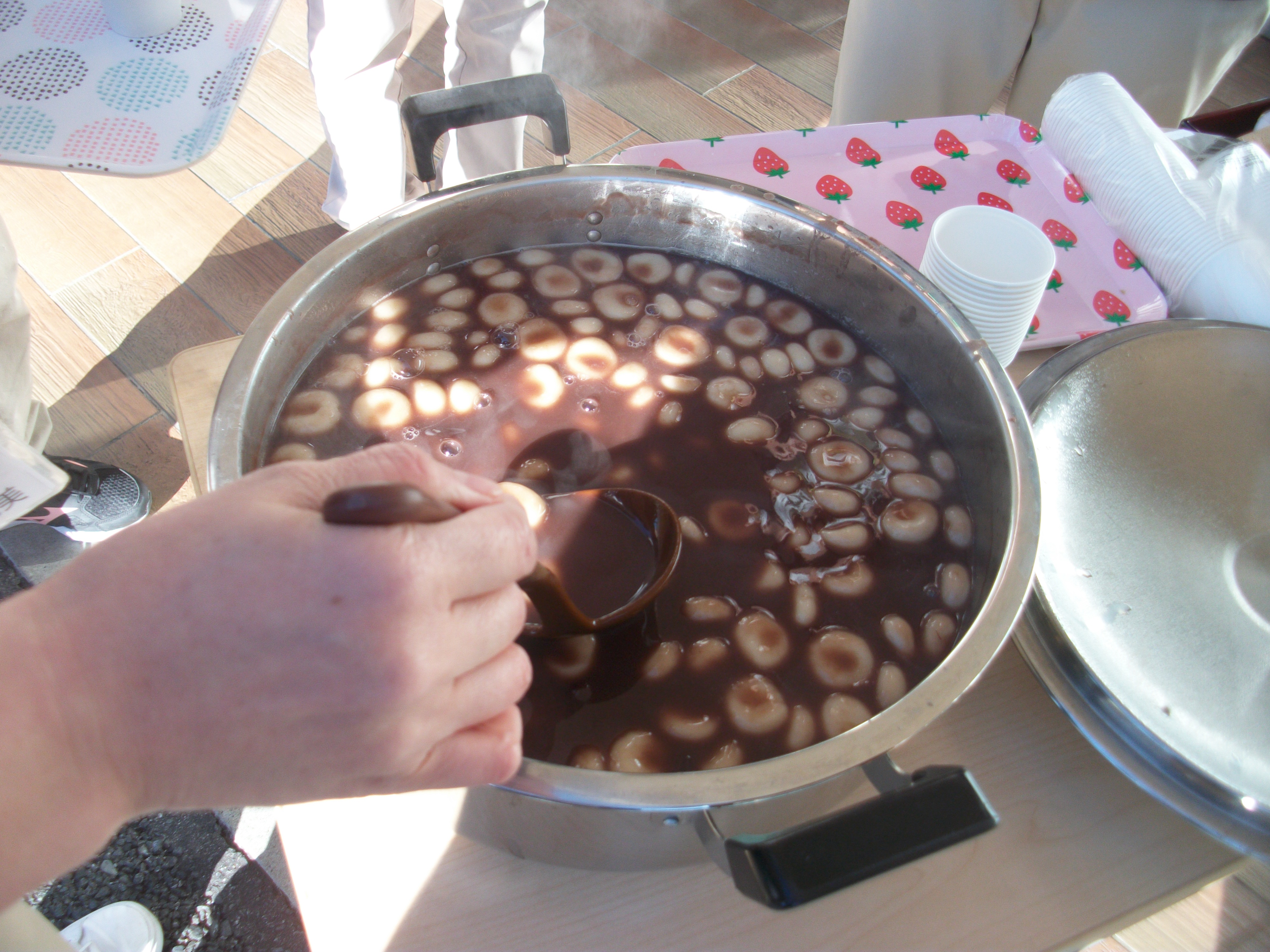 でもちょっと風が強かったので、中でお汁粉を召し上がっていただきました!