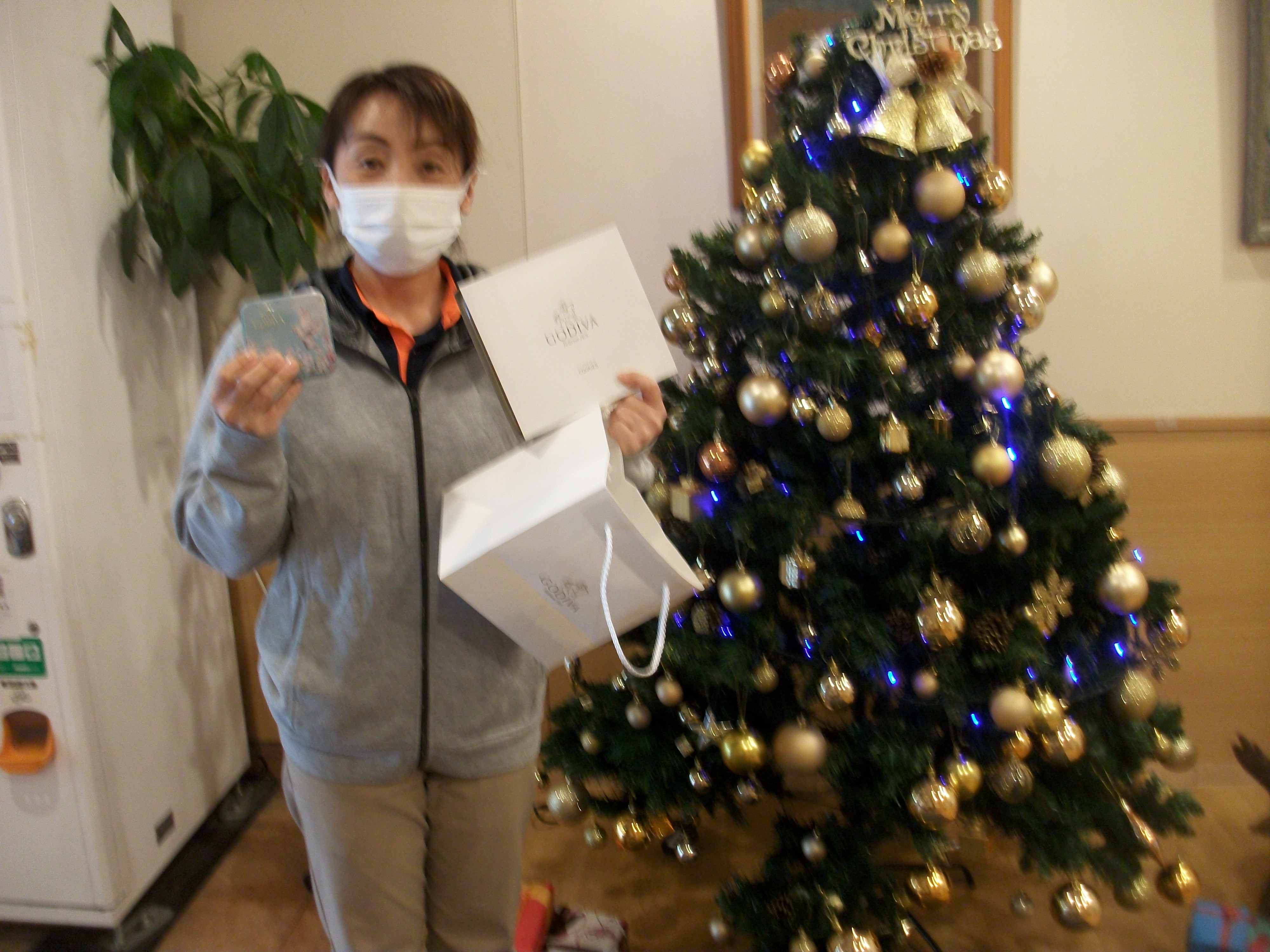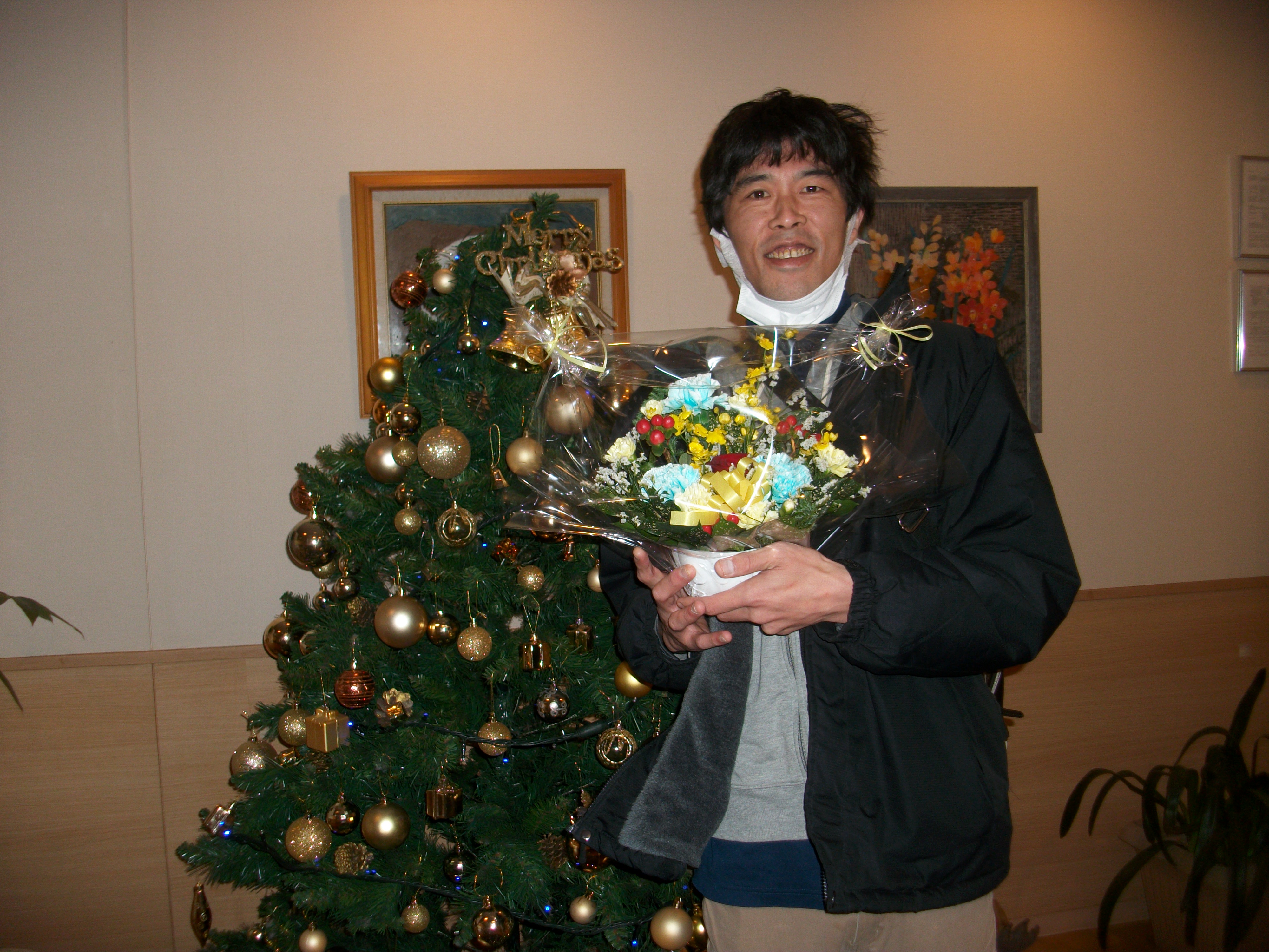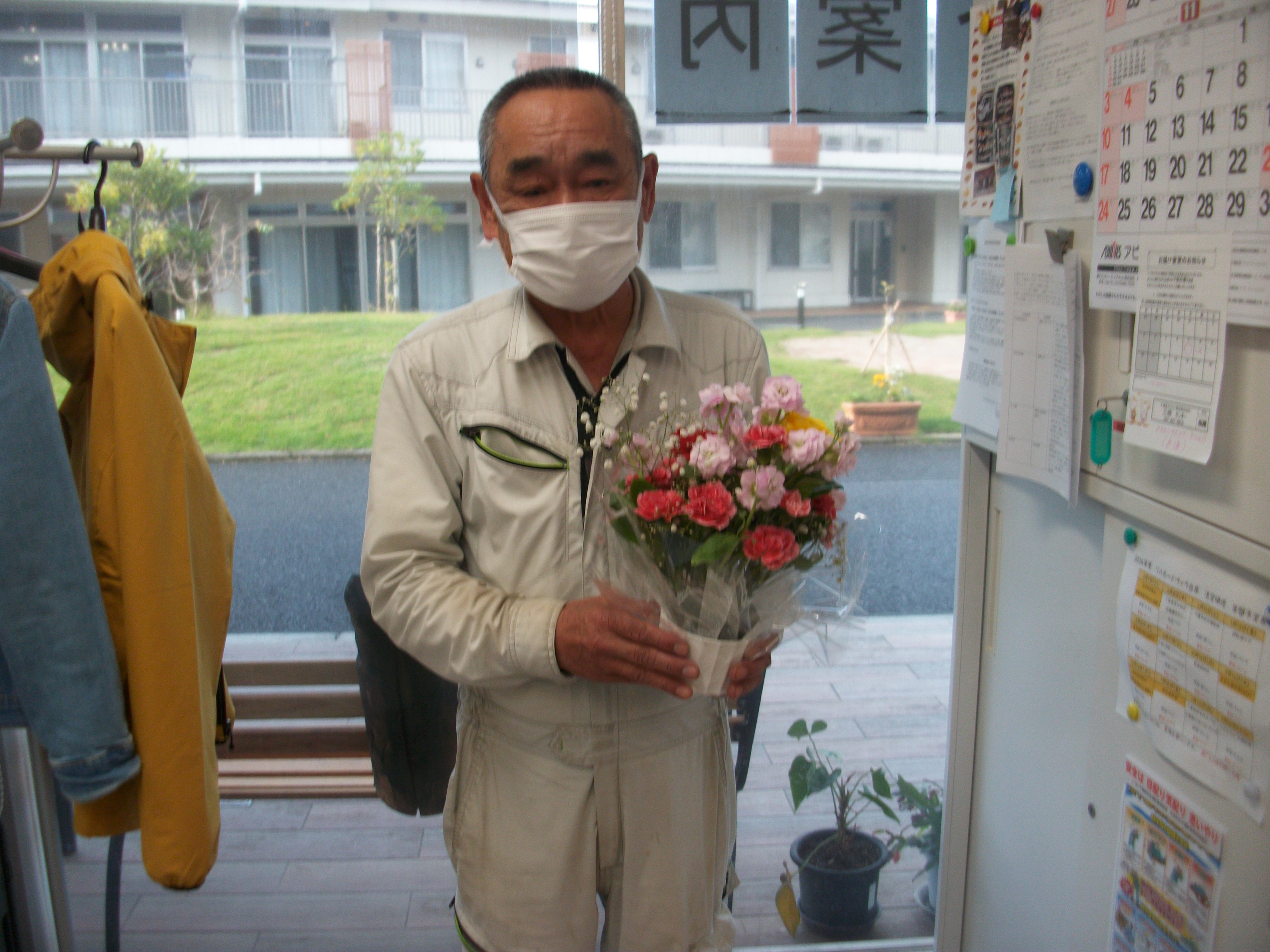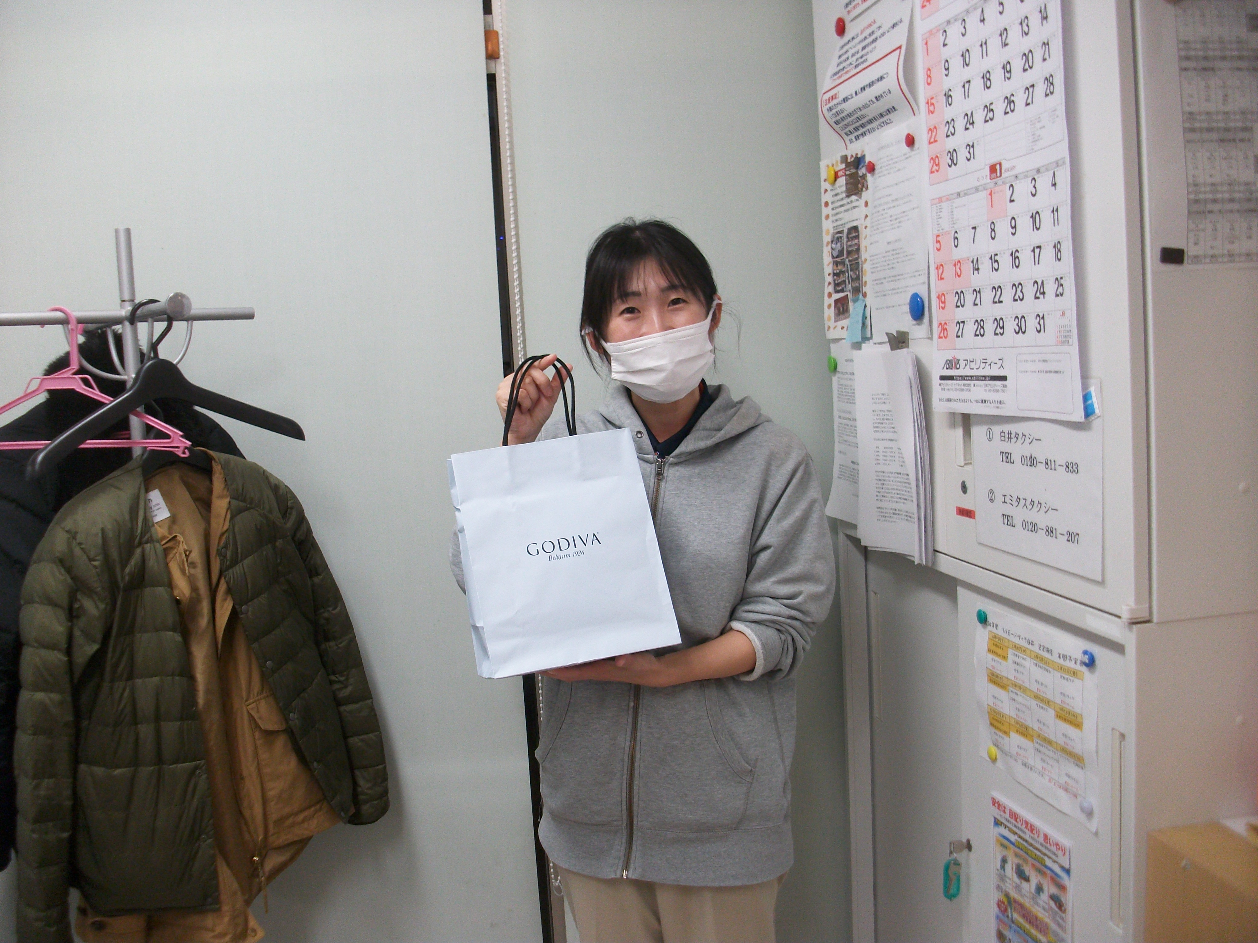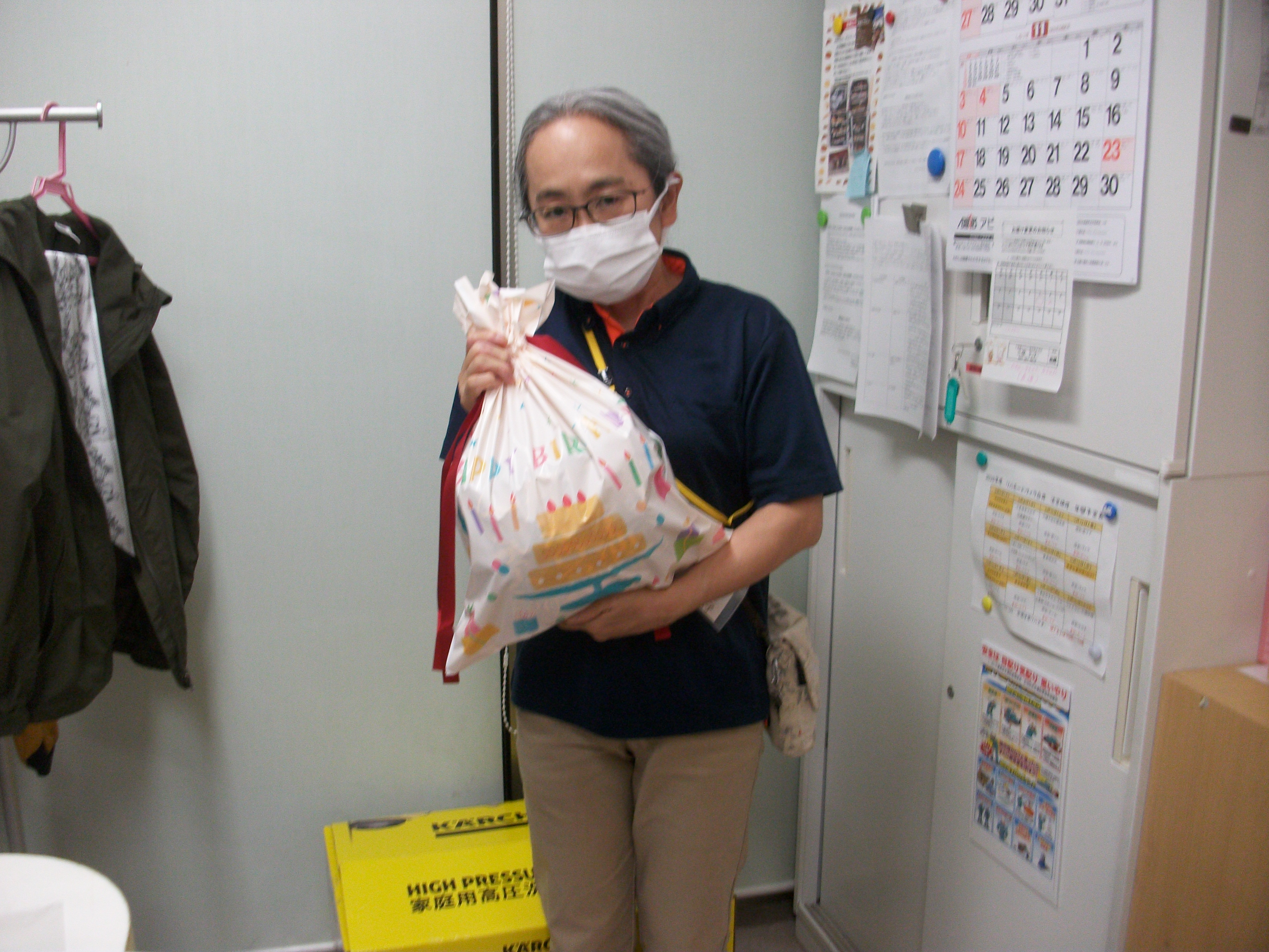 スタッフへ施設からお誕生月に誕プレを渡して記念撮影です。