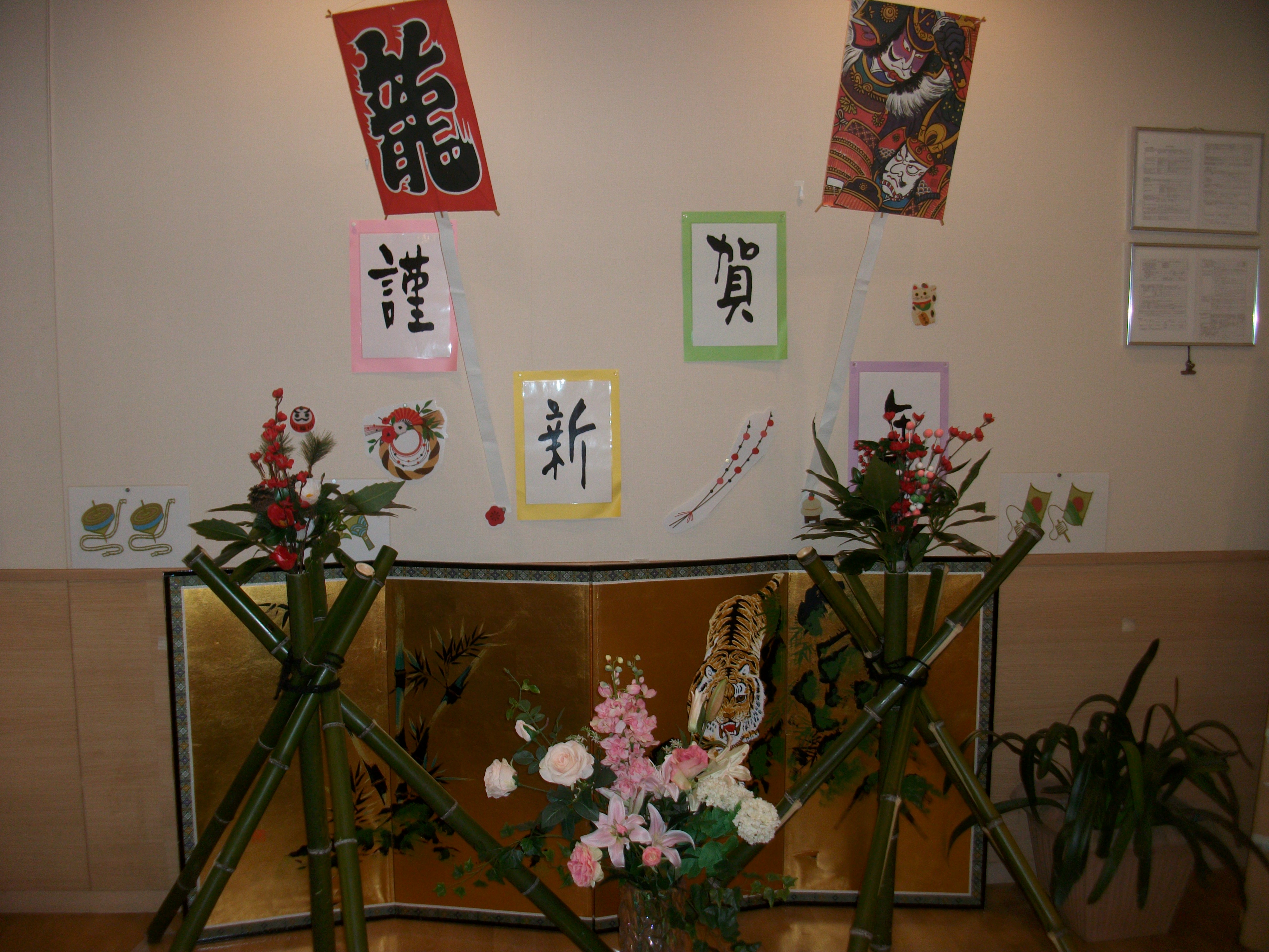 スタッフ自作の門松やオブジェ等で飾られ、皆さん喜んでくださいました!
