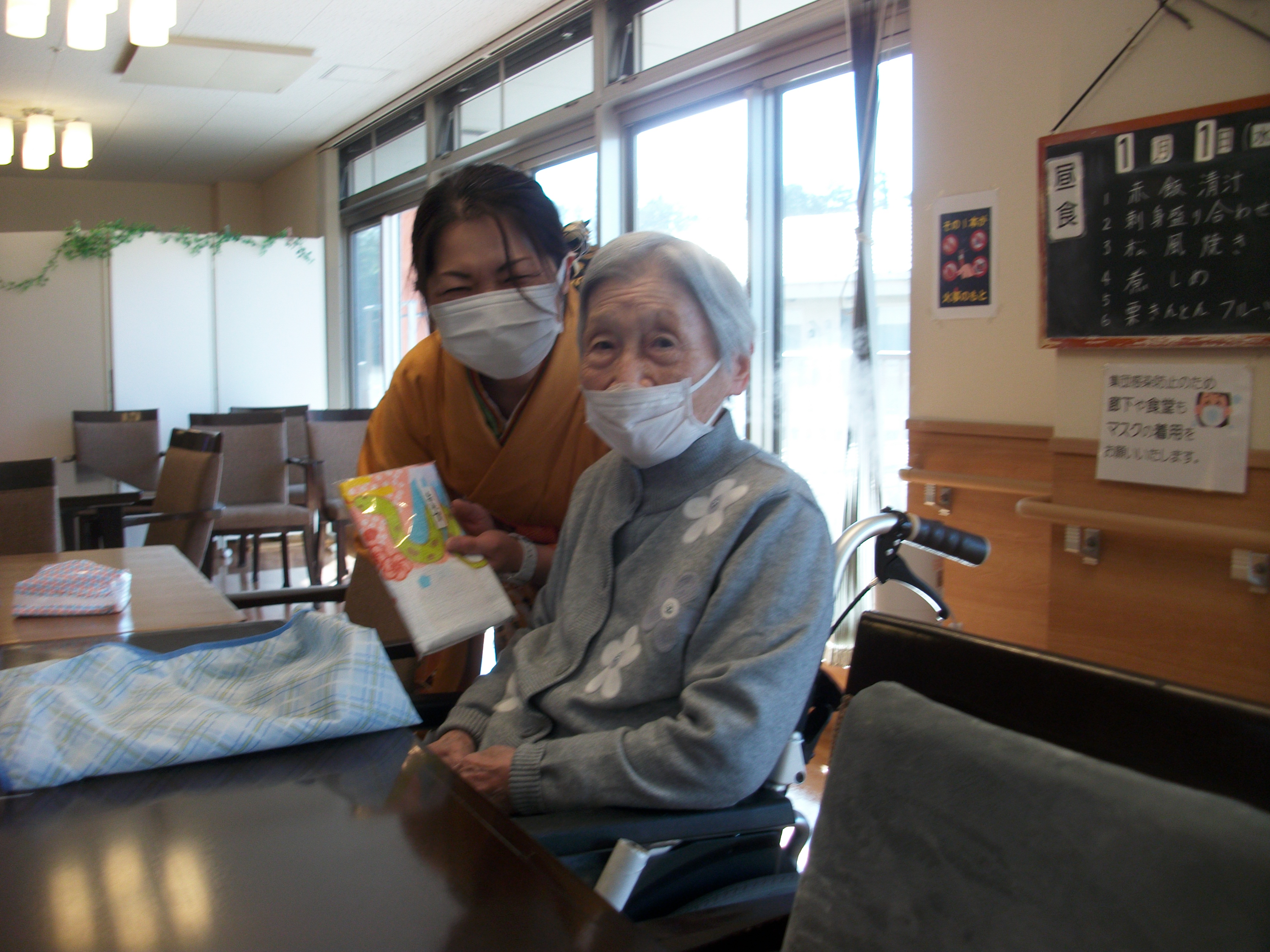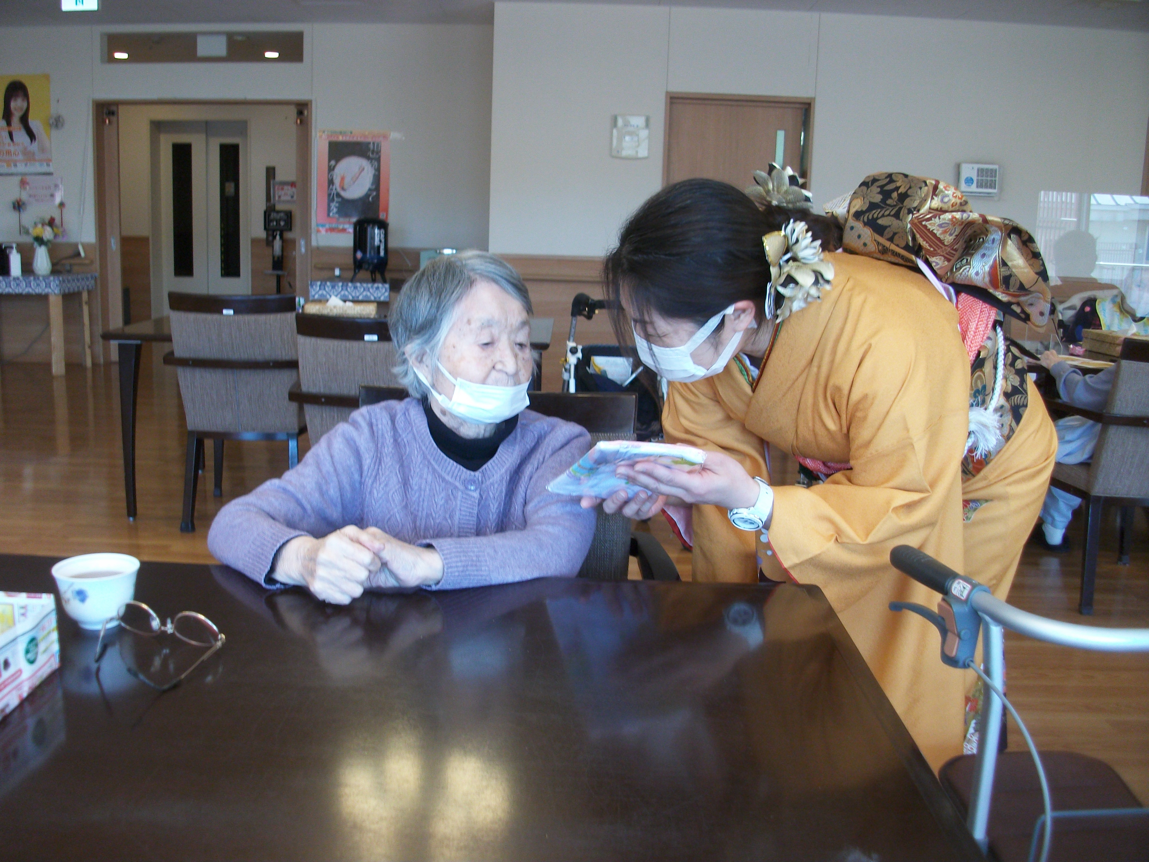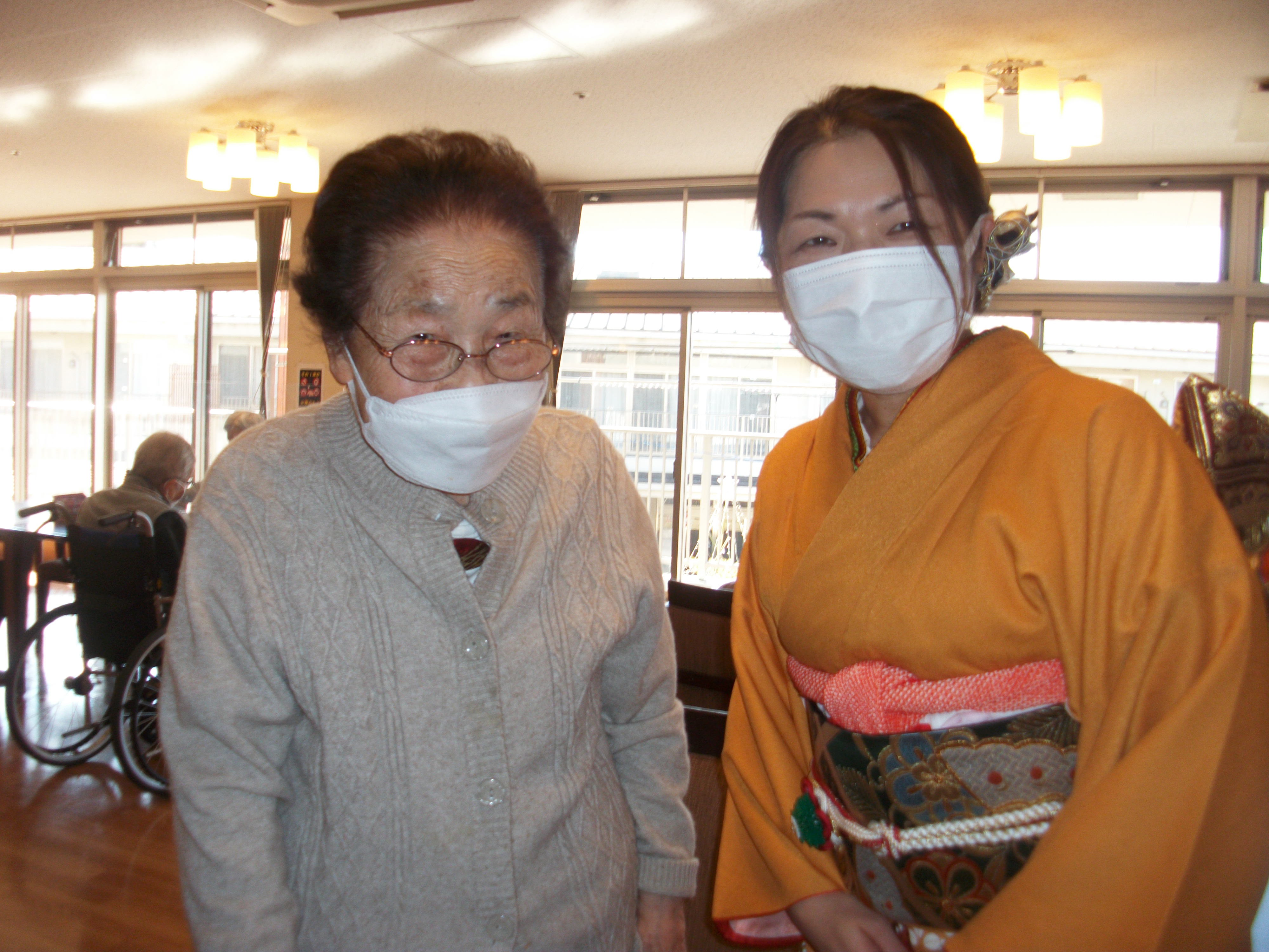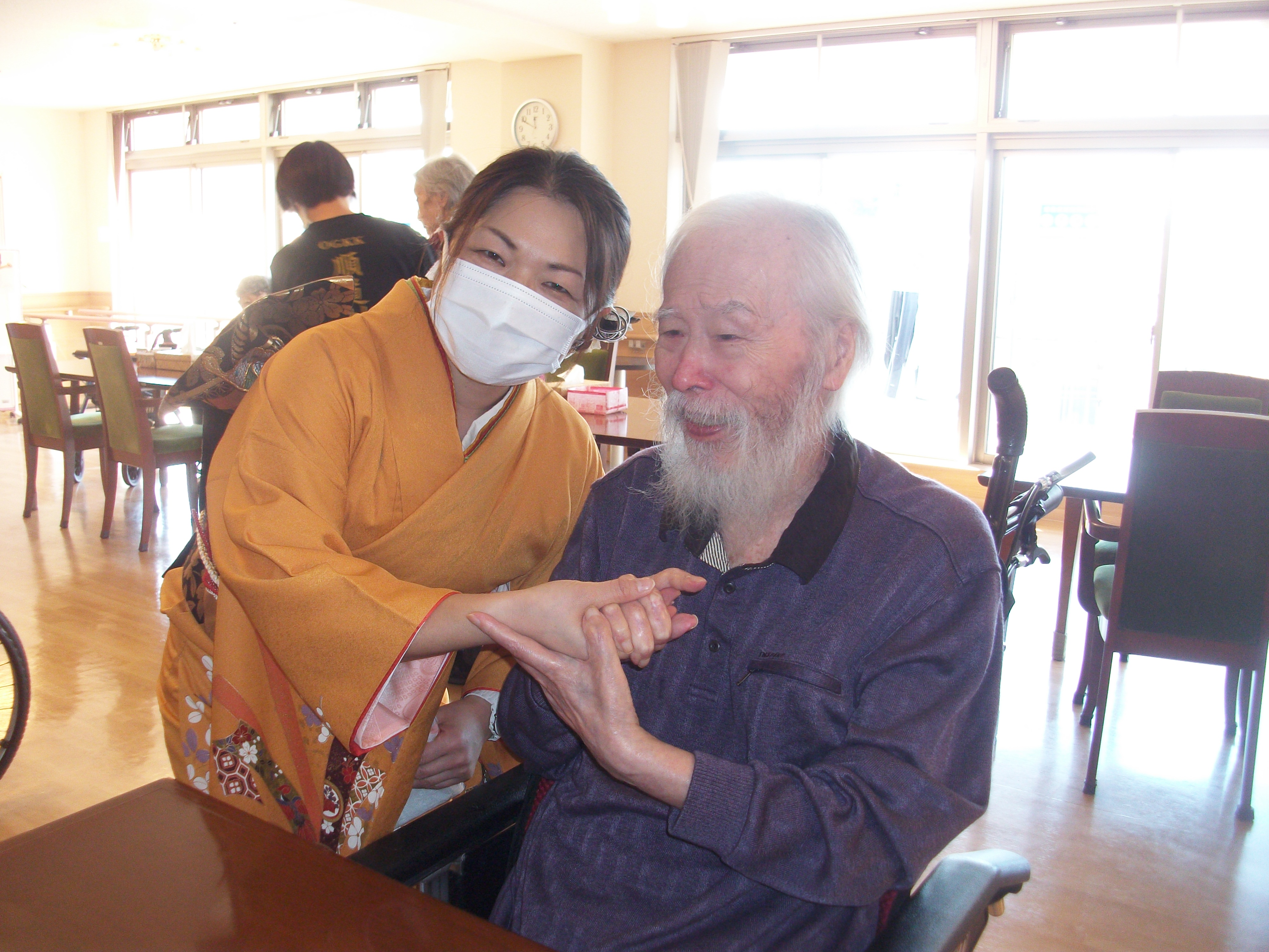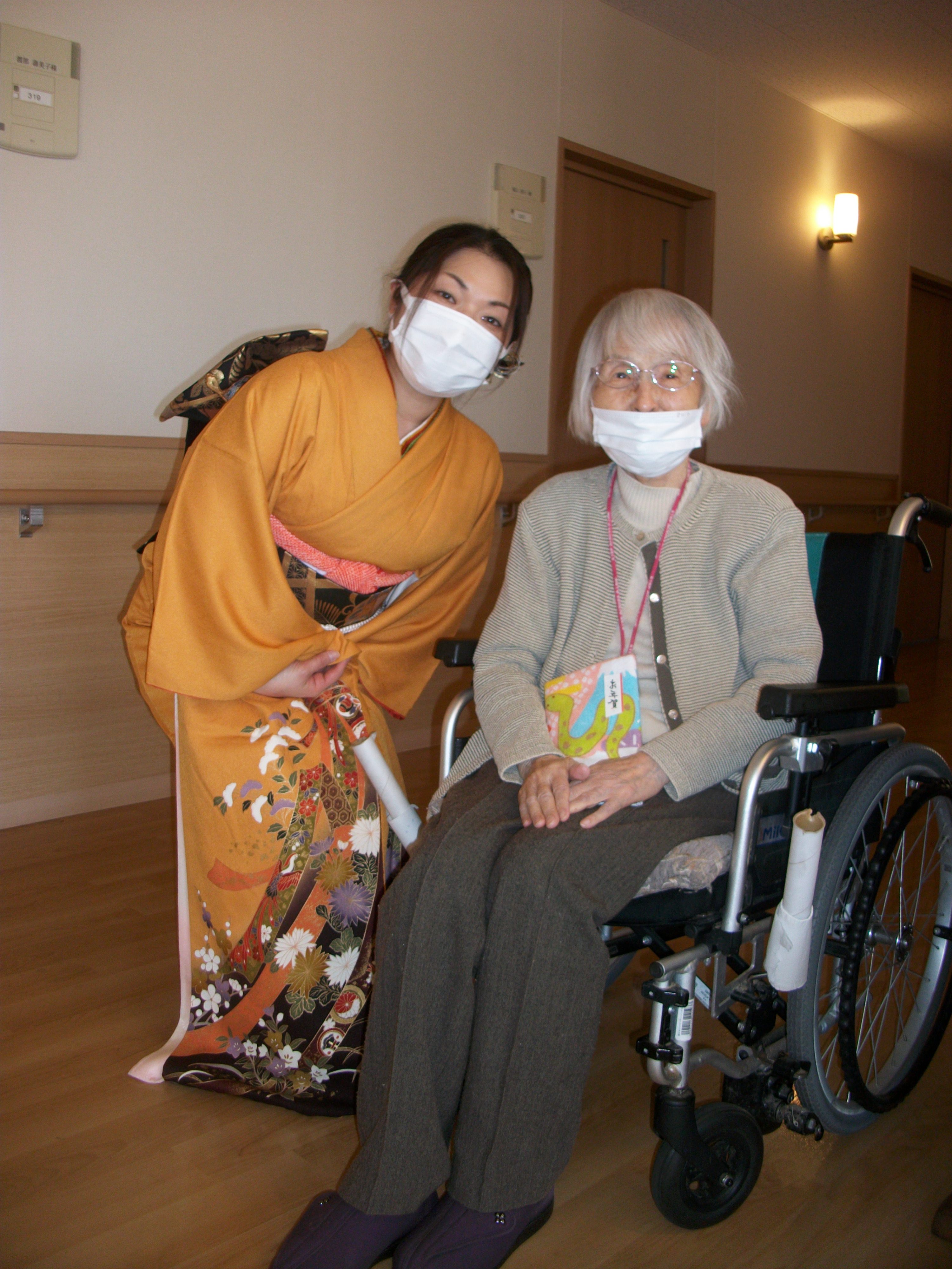 元旦の日は、ヴィラの施設長が着物姿で、ヴィラの入居者様にお年賀を持ってご挨拶まわりです♪