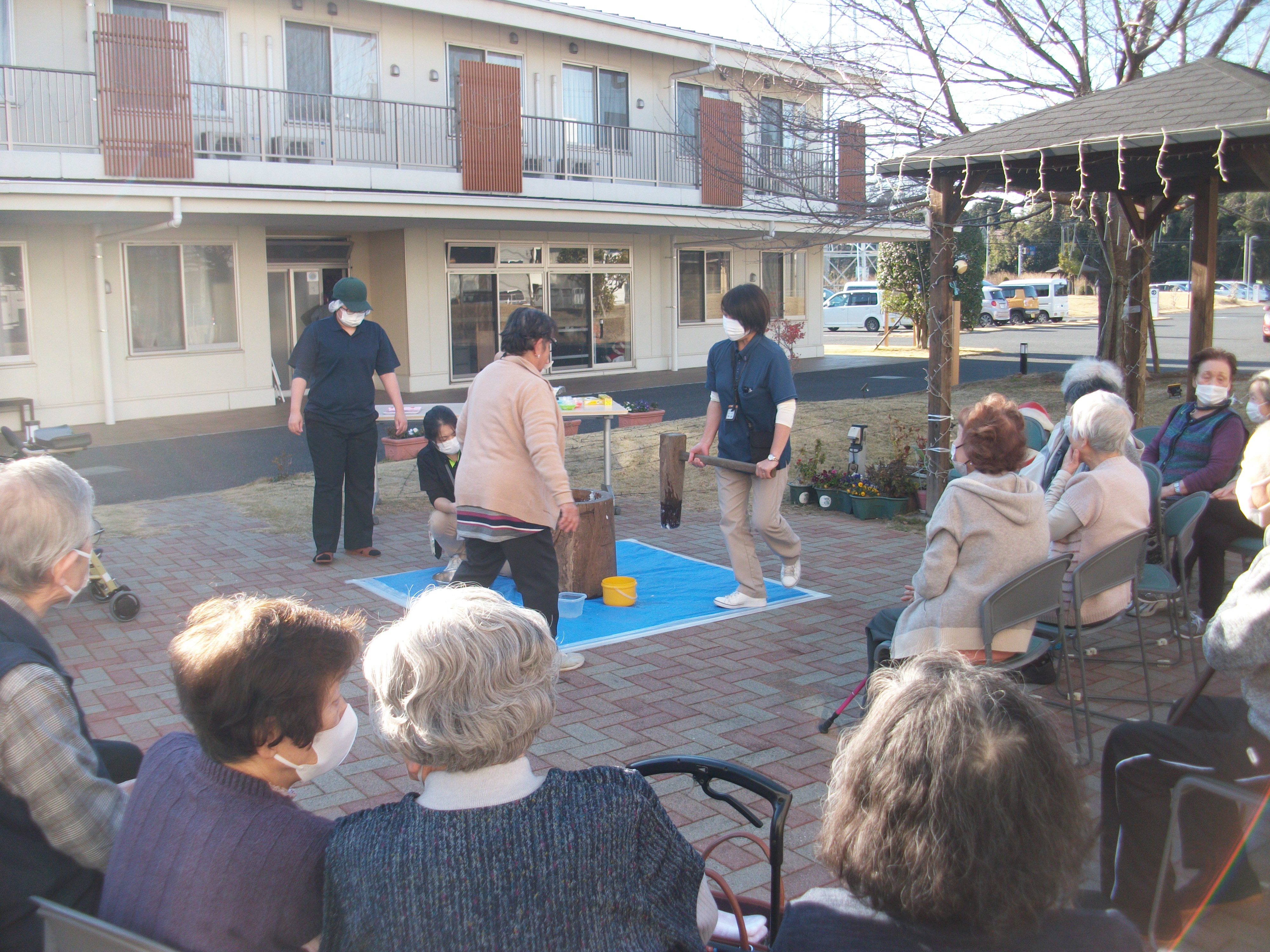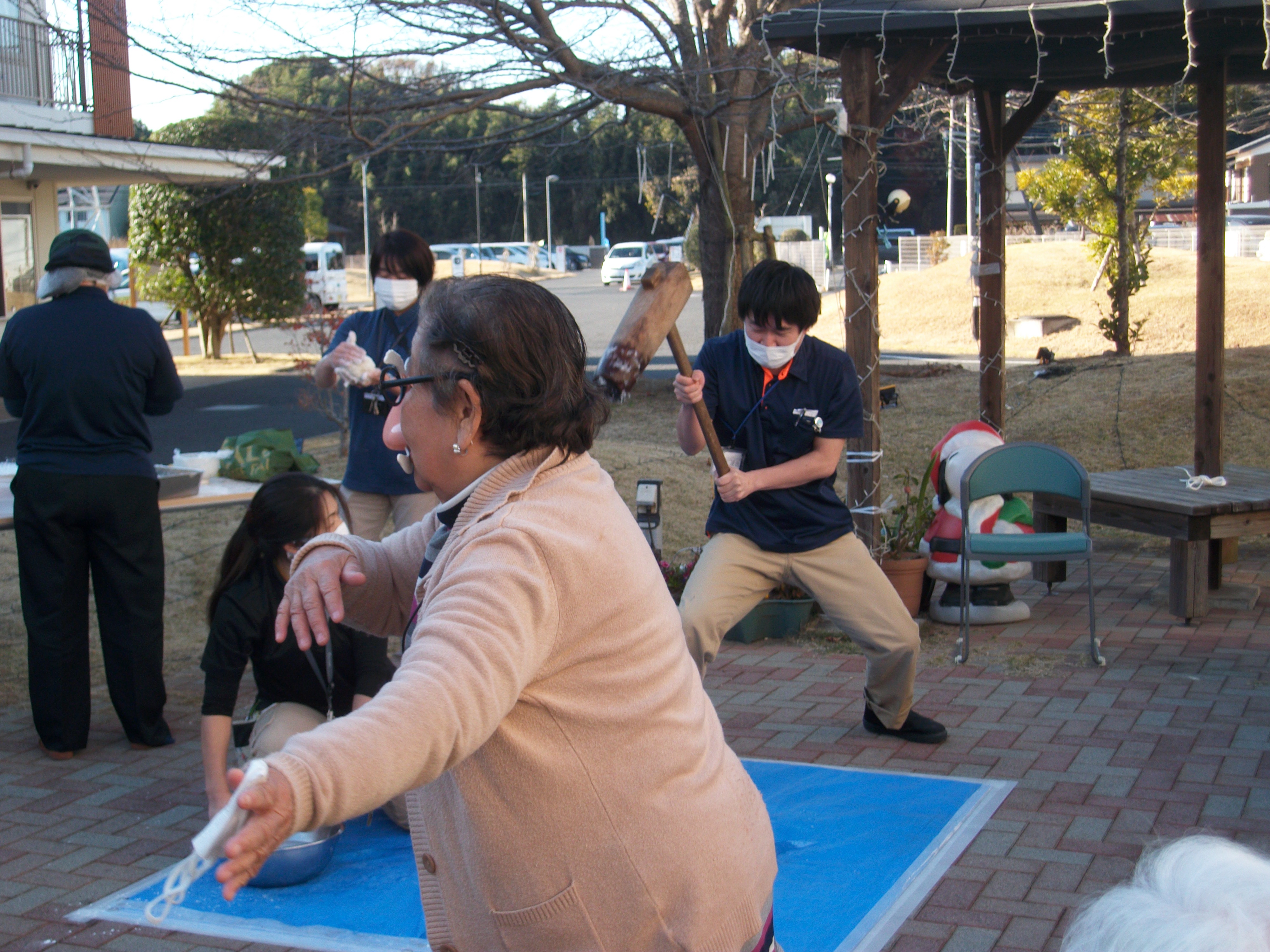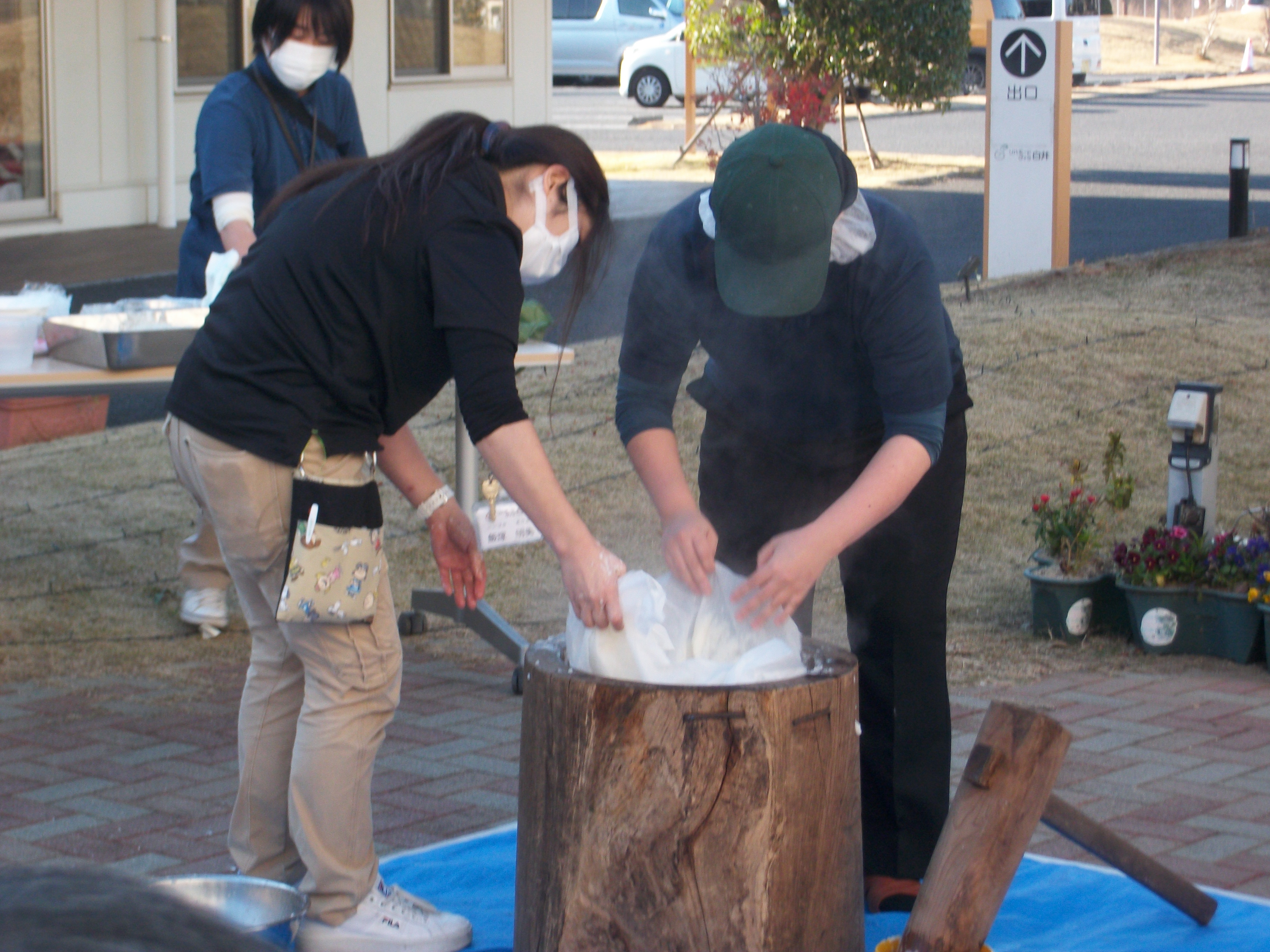 杵と臼を借りてきて、もち米から餅つきをしました!