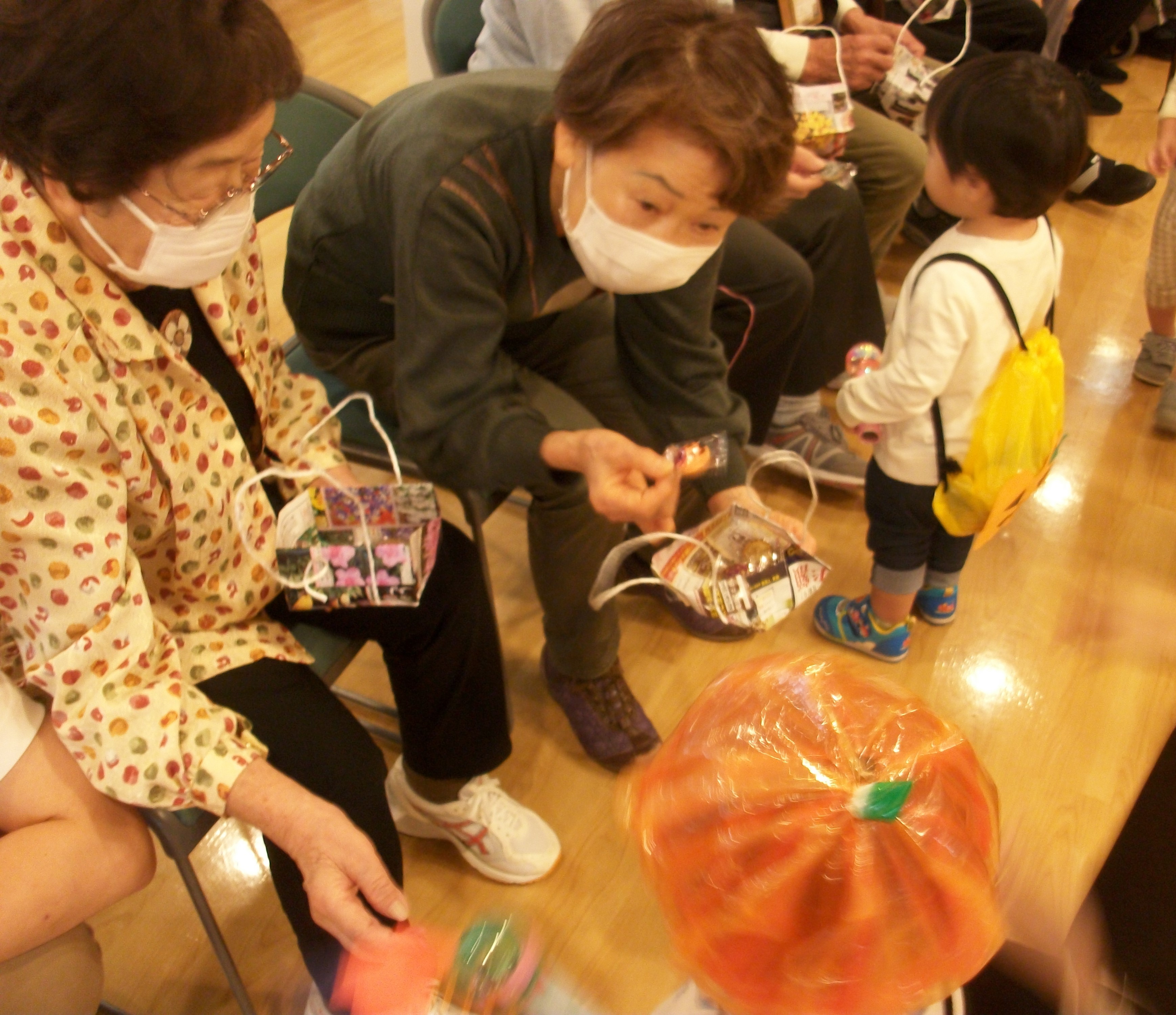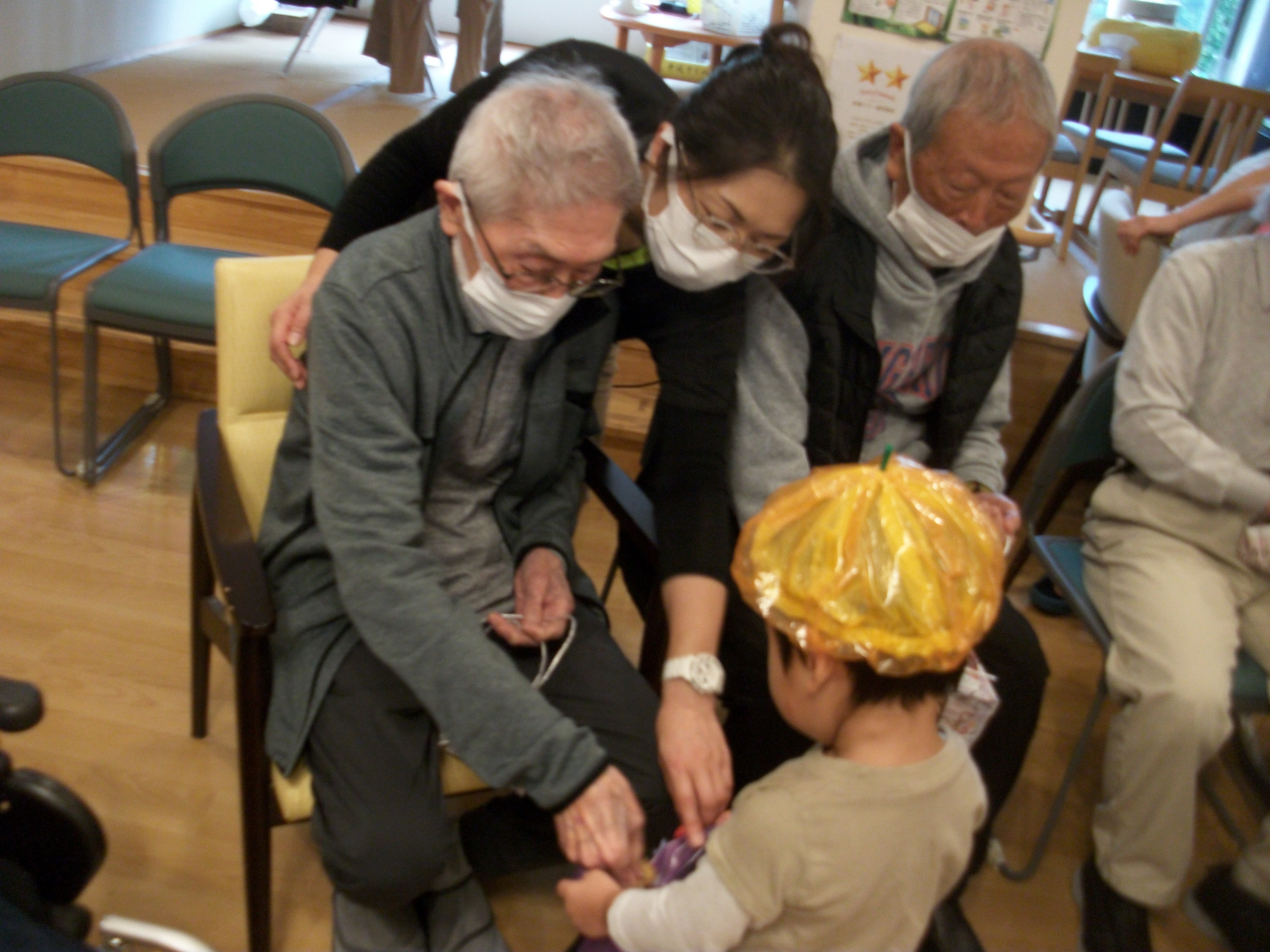 保育園の子供達が仮装して、おじちゃんおばあちゃんのところにお菓子を貰いに行きました!