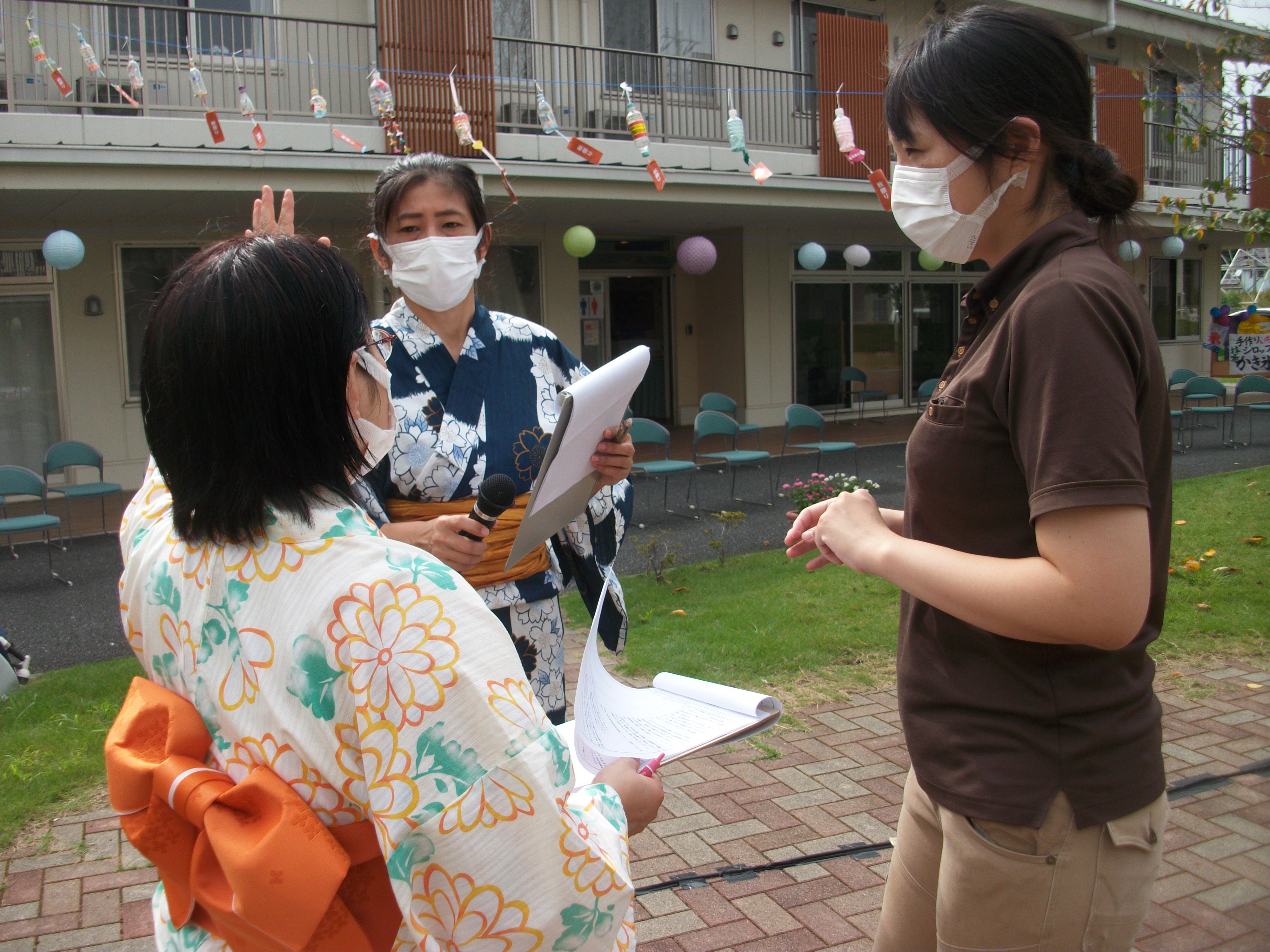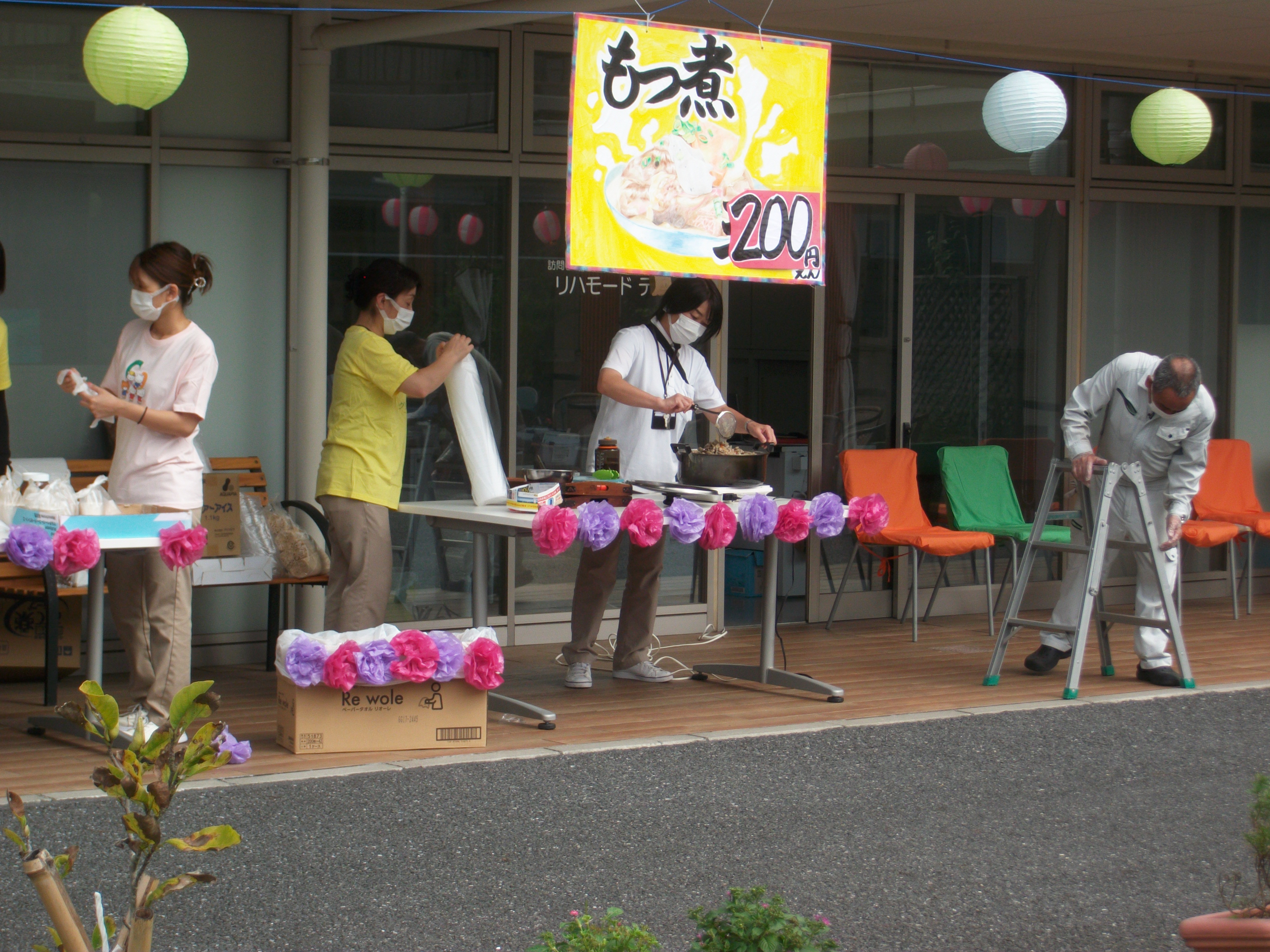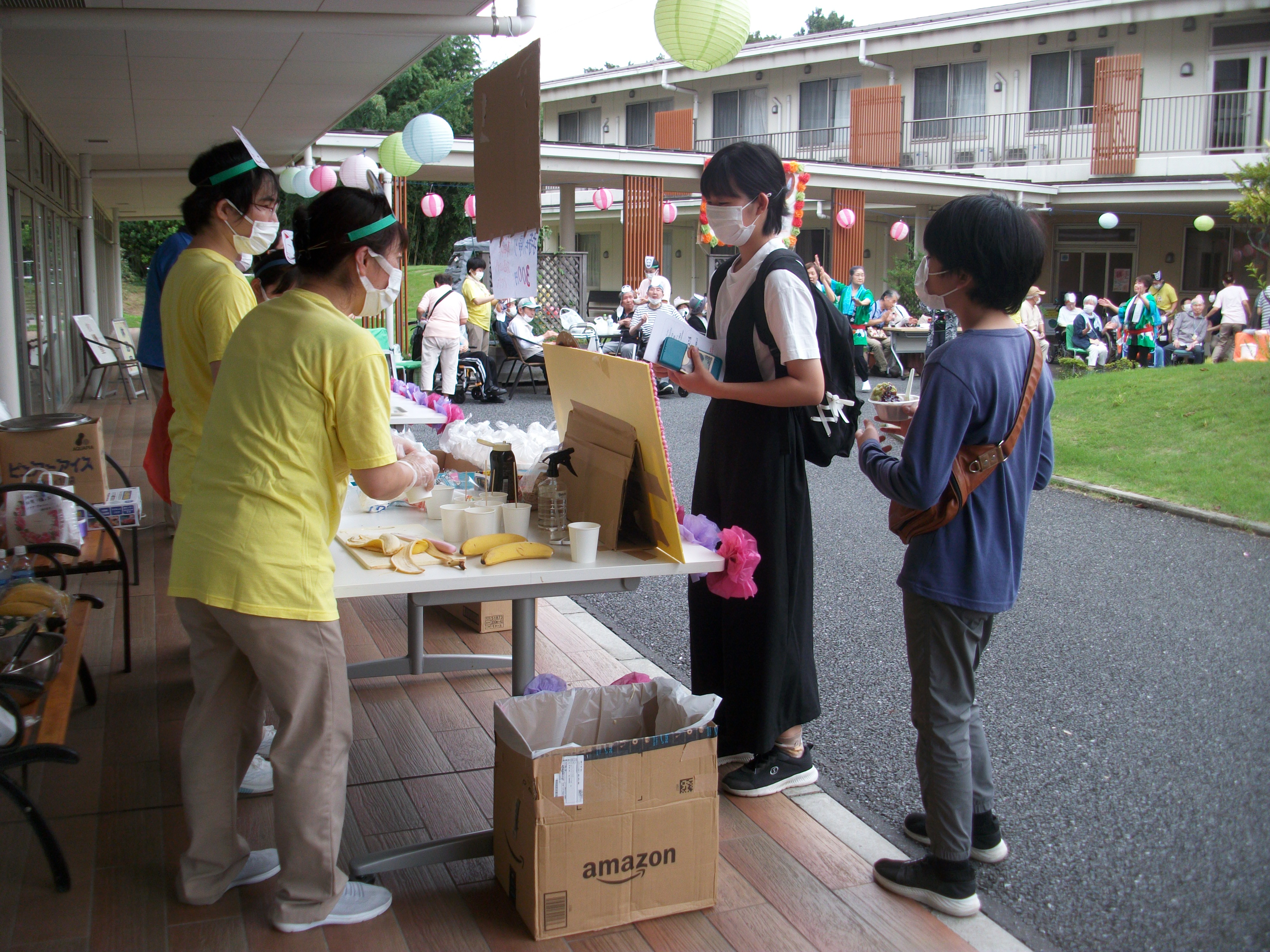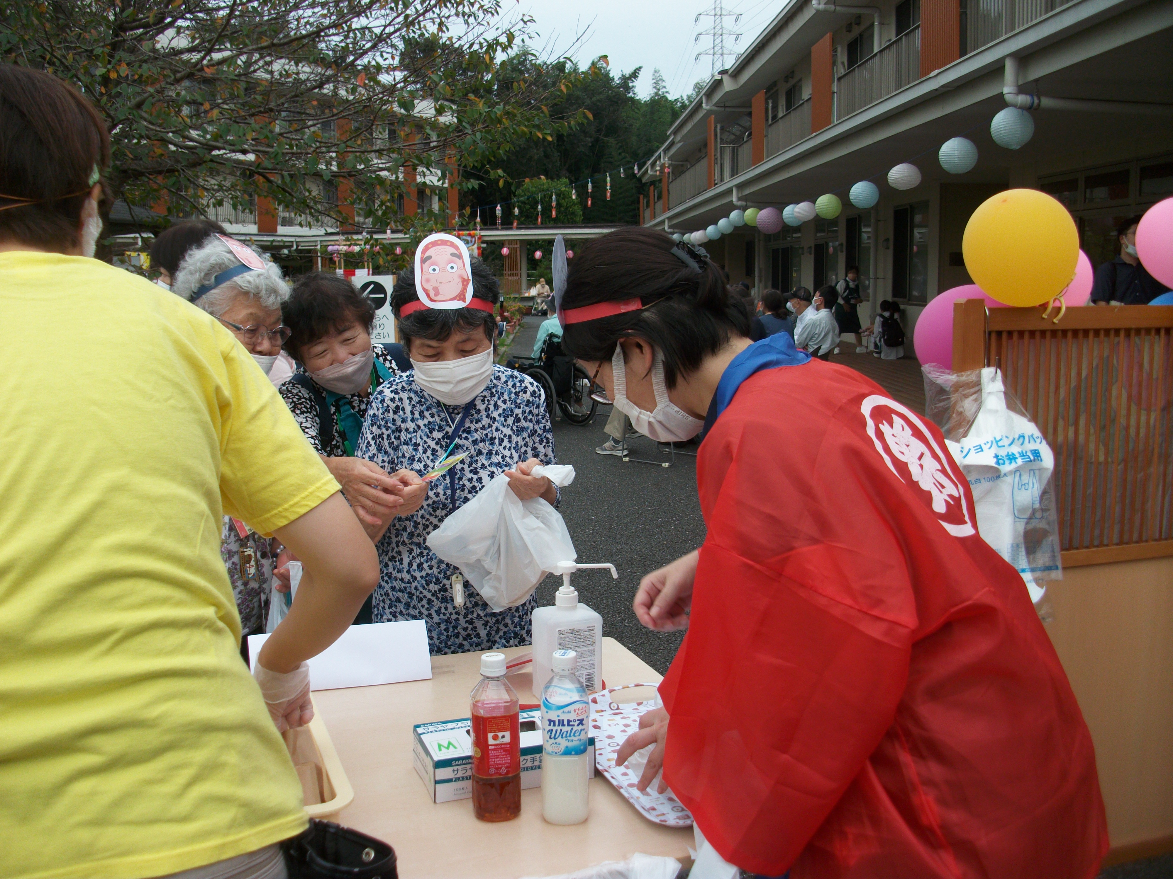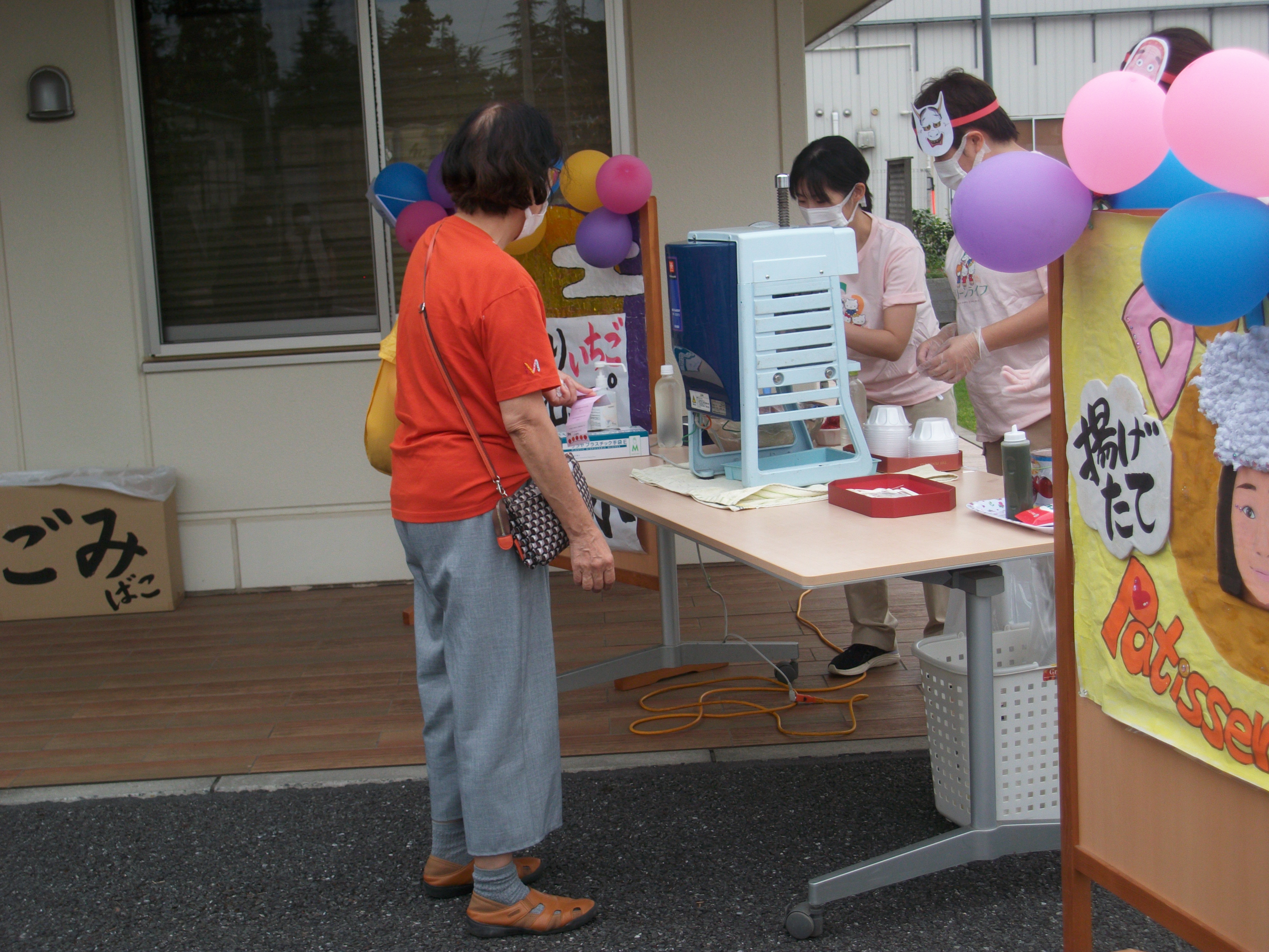 模擬店は、チョコバナナ・揚げたてドーナツ・かき氷・もつ煮込み・飲み物・ゲームコーナー・健康チェック