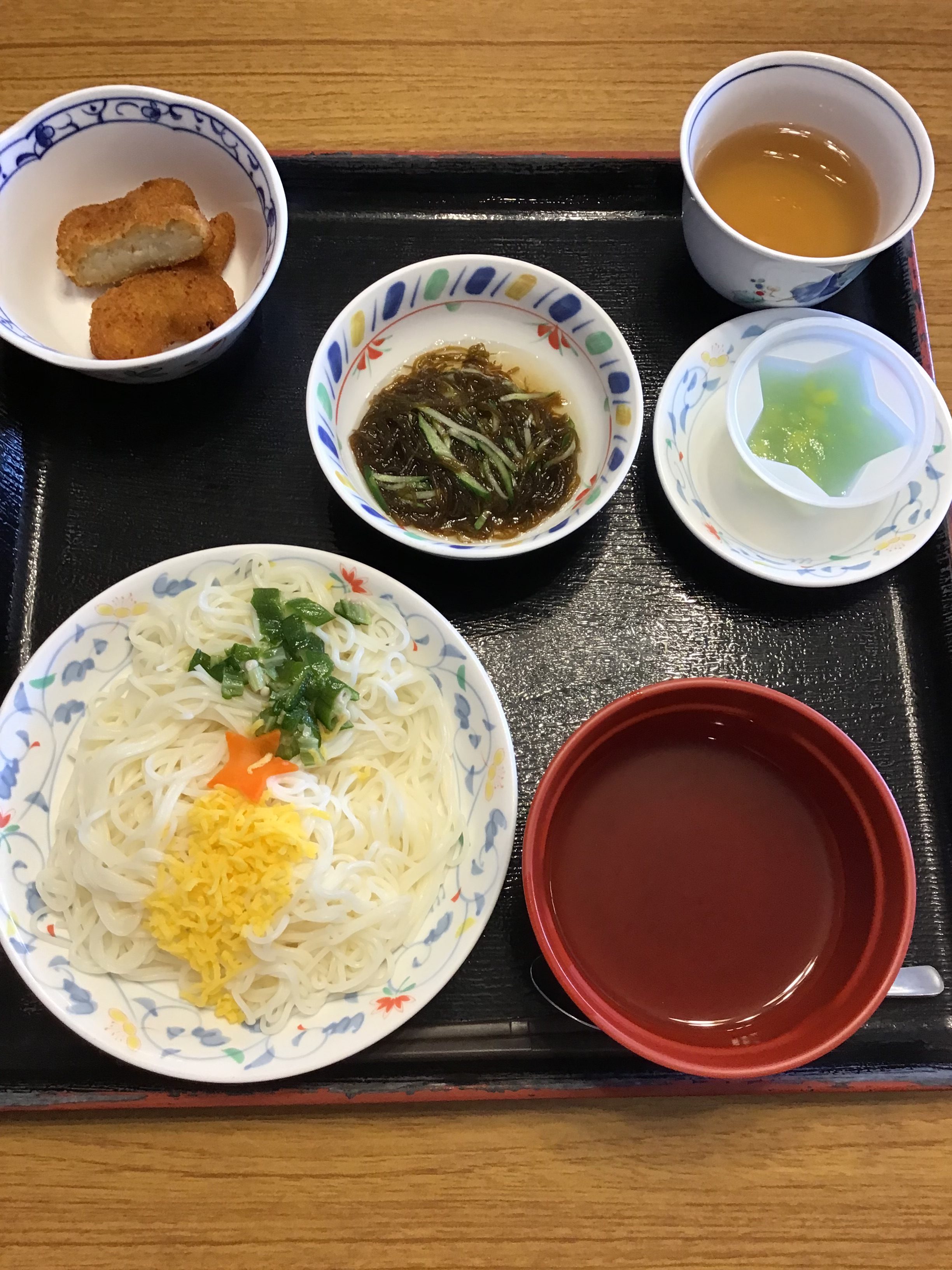 献立のメニューは、蕎麦御膳と七夕の日のそうめんです。