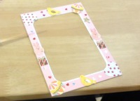 パステルカラーの優しい色合いのフレームに、好きな飾りを選んでつけて頂きます。