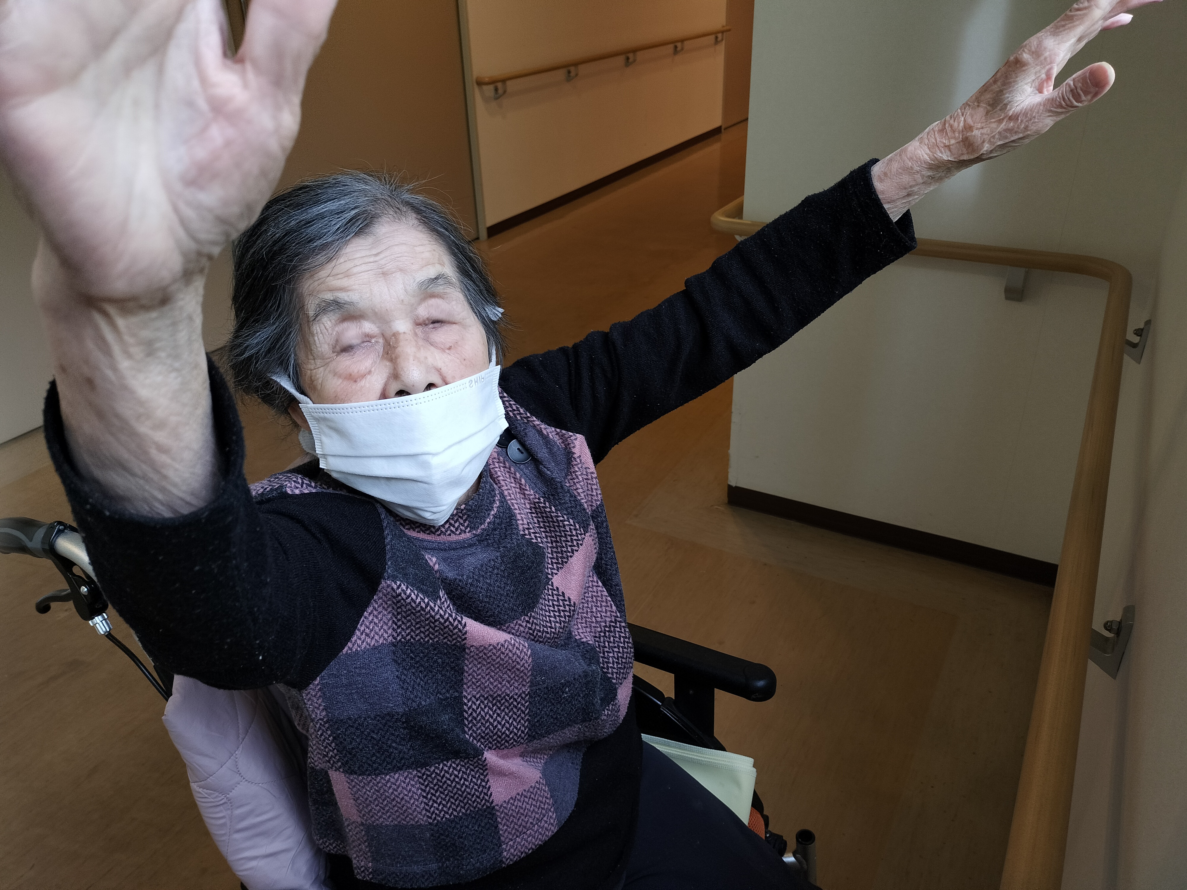 窓際で起立運動おこなっていると