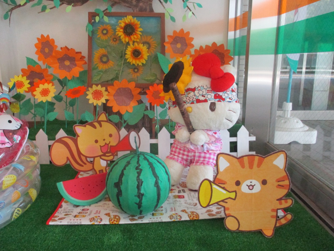 その前でキティちゃんがすいか割をしています!