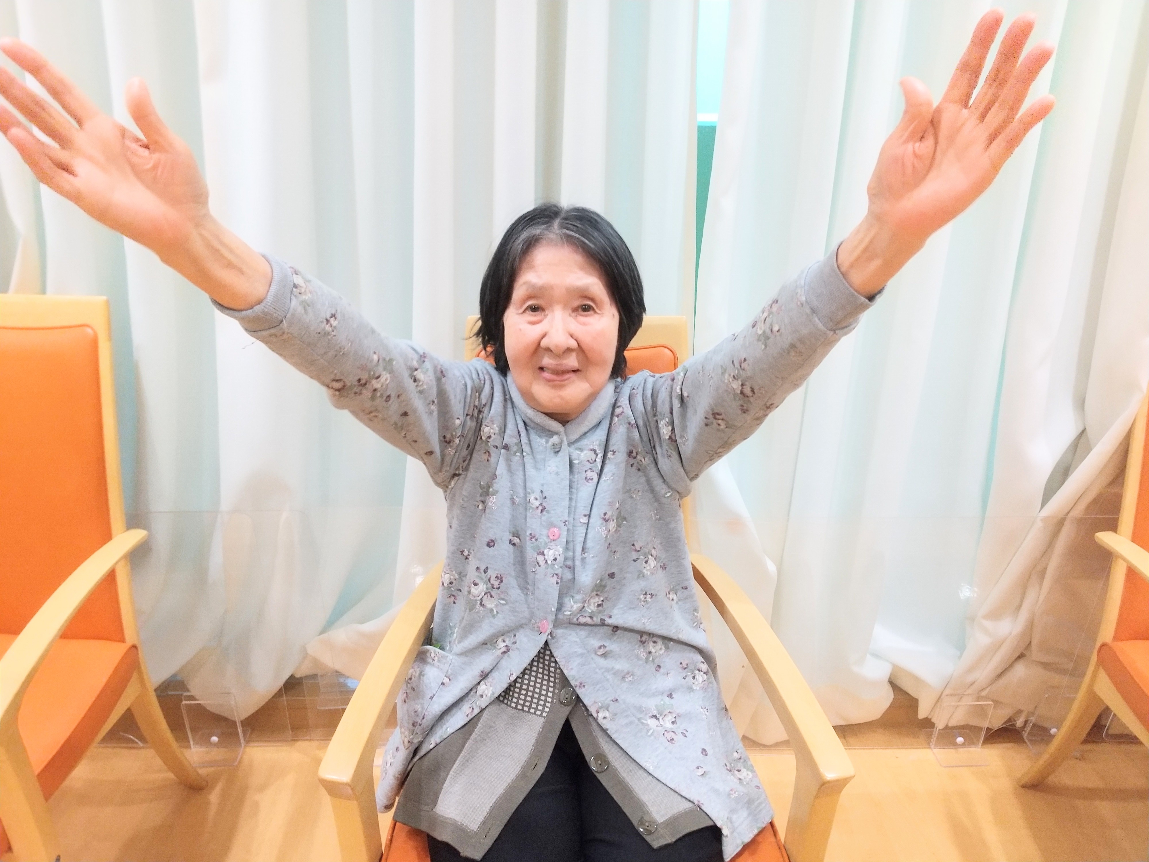 座位での上下肢ストレッチ