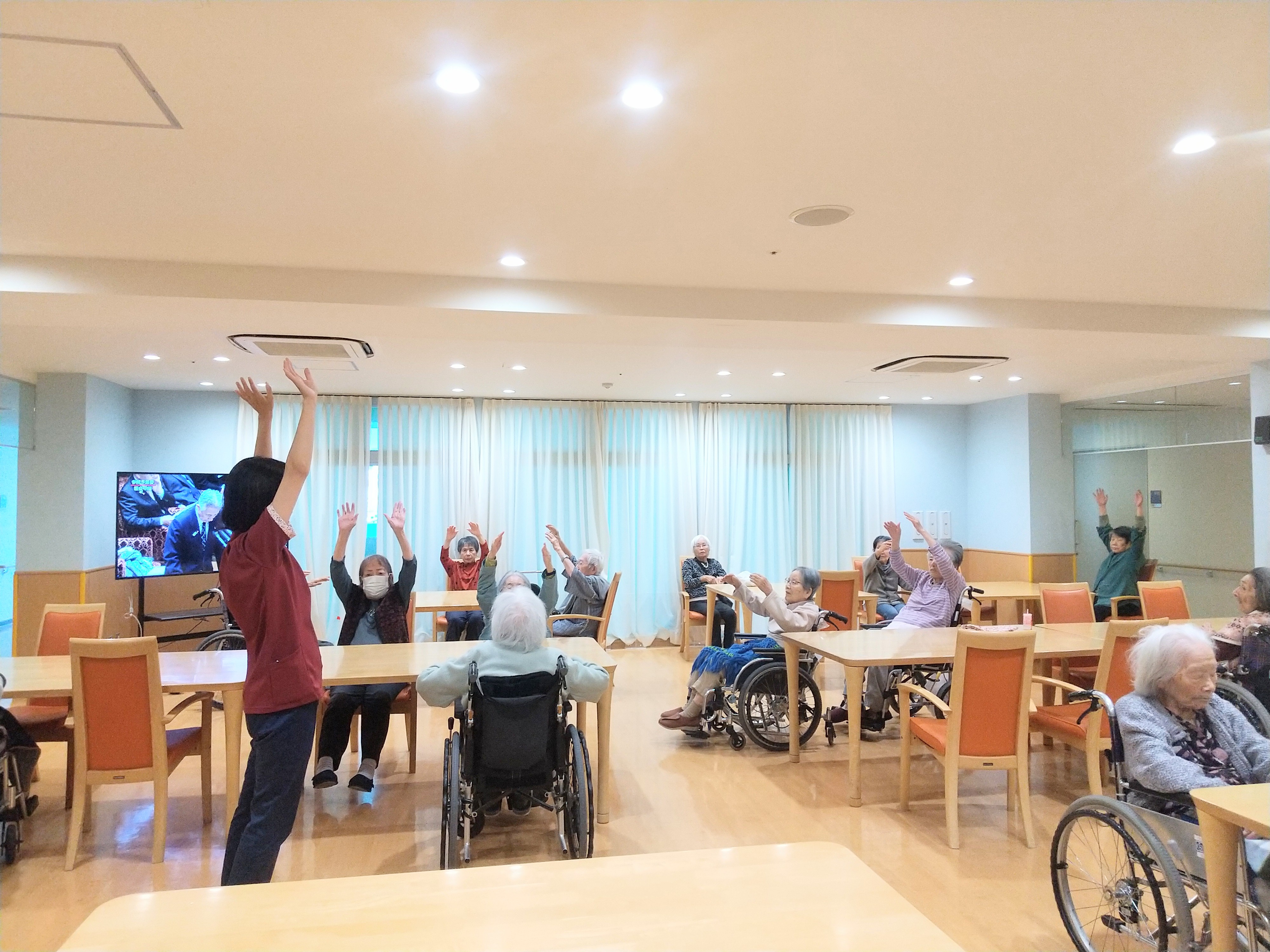 昼食前にデイルームで