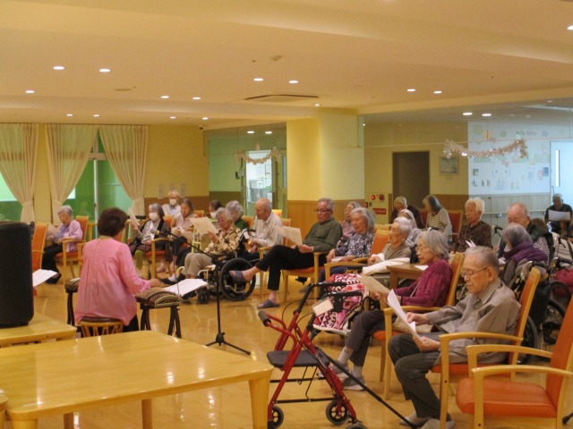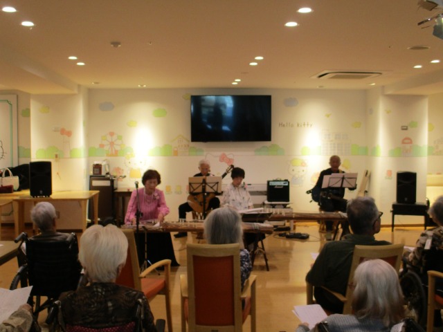 琴2台・エレキギター1台・クラシックギター1台にて、歌を歌ったり、音色を聞いて楽しんでおりました。