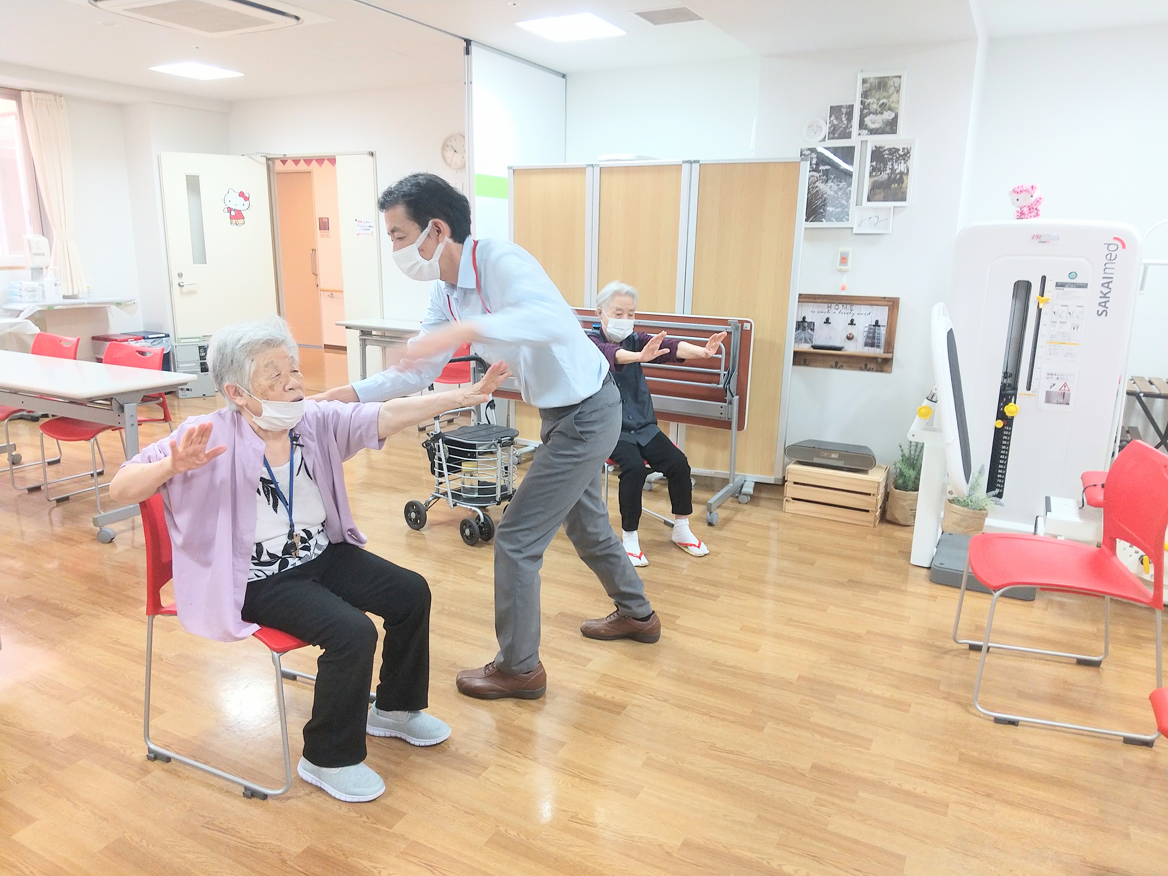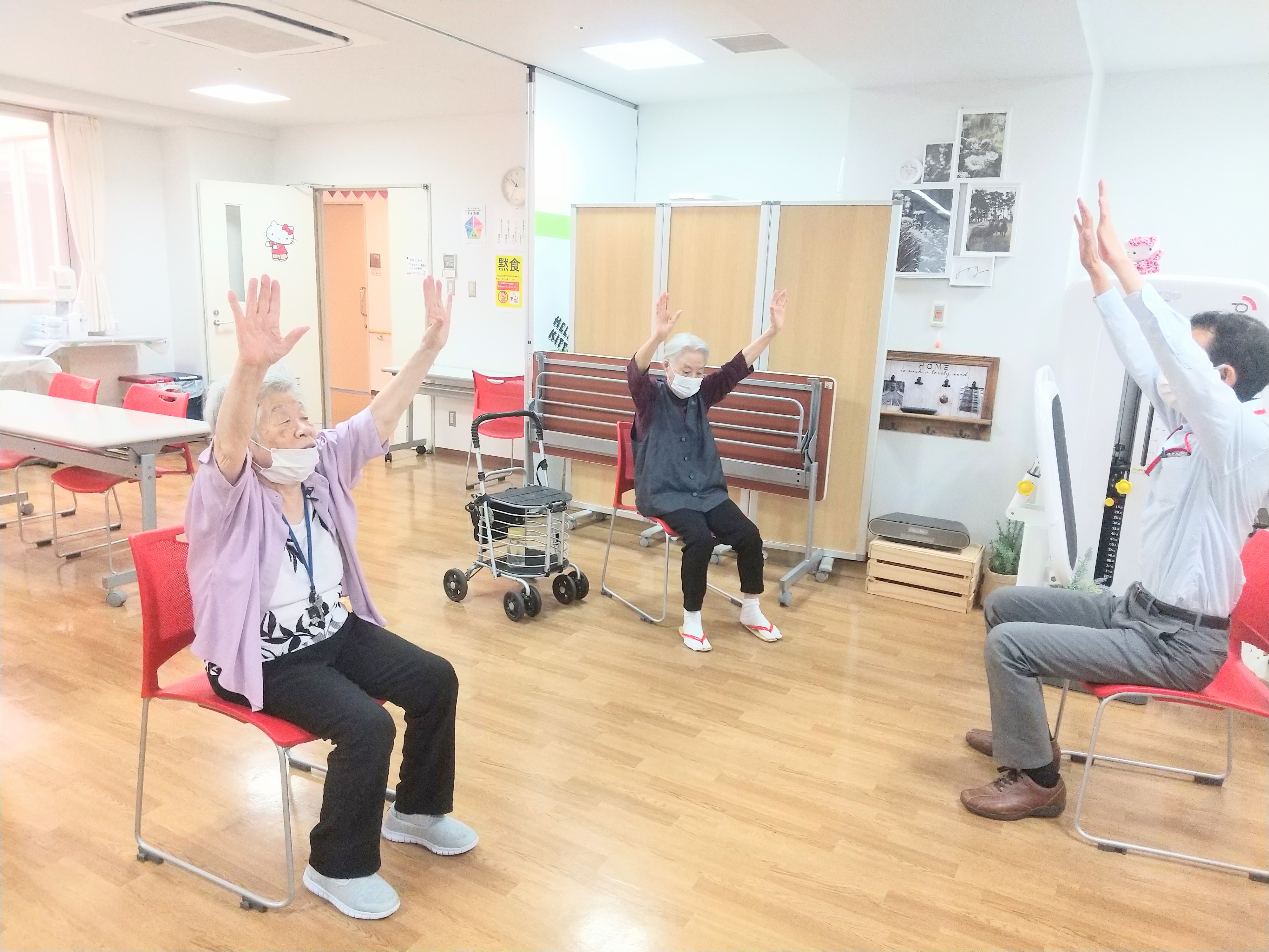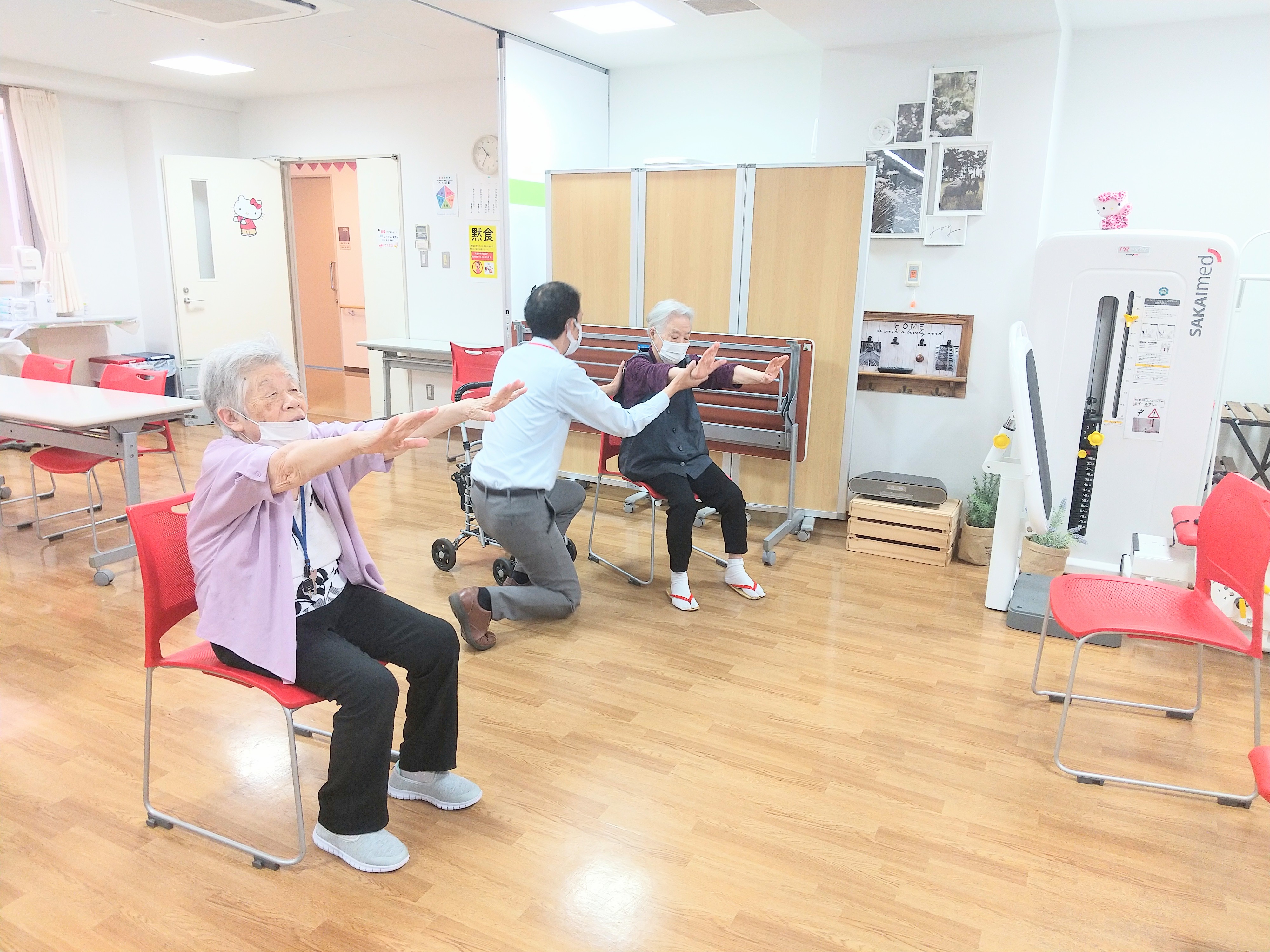 座位でのバランス練習を