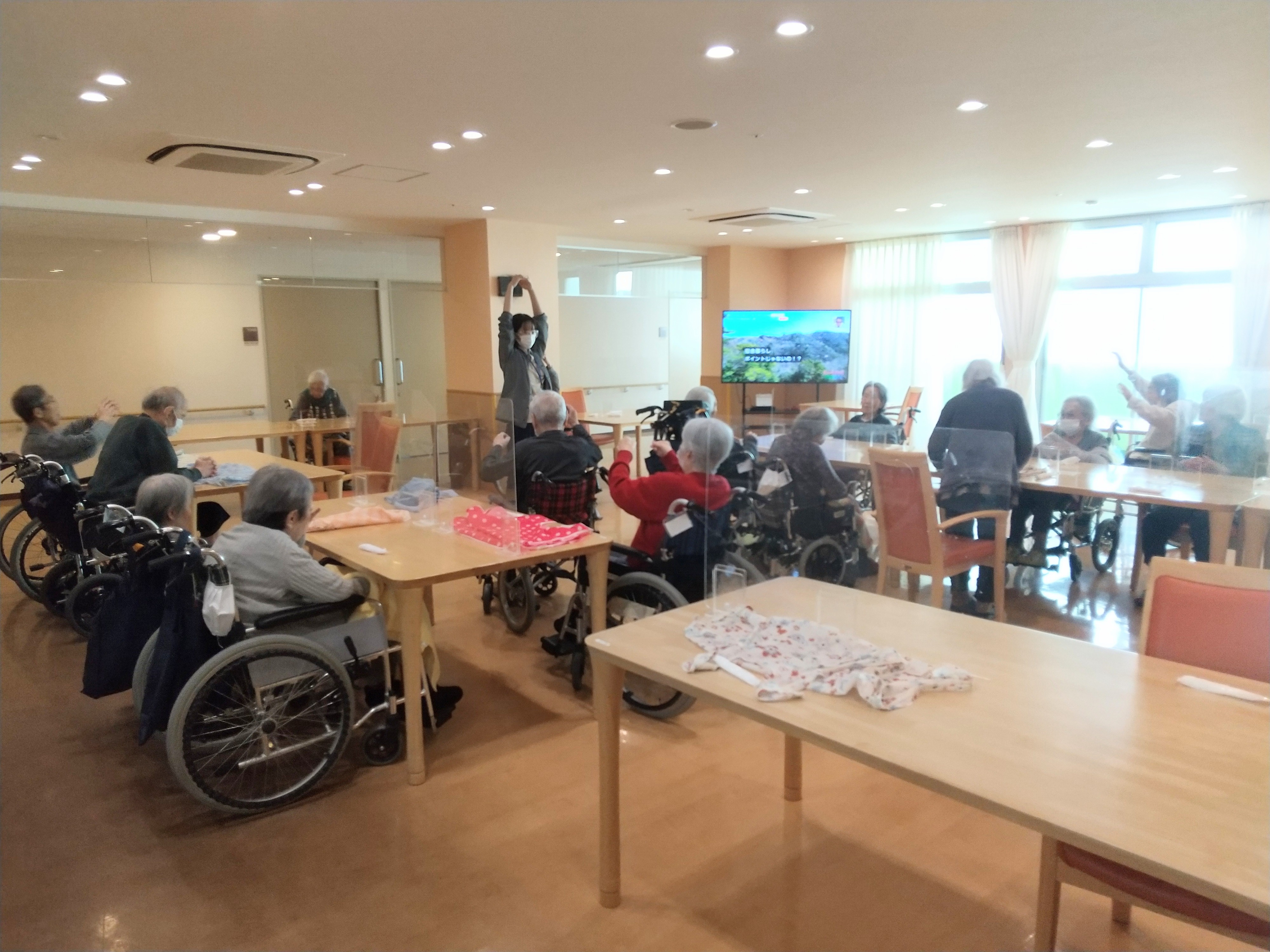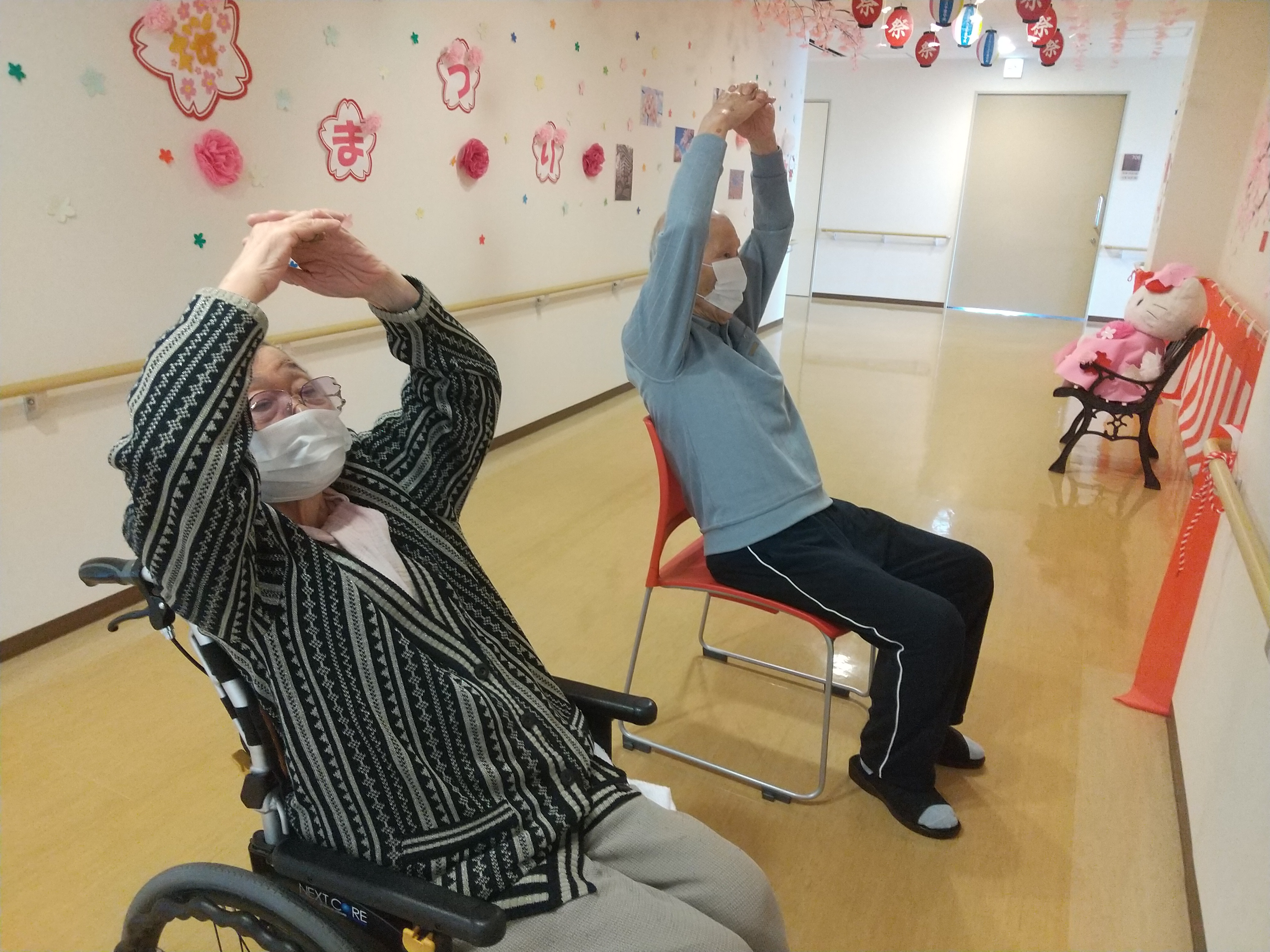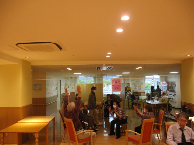 先生の声掛けに、同じように体を動かしていらっしゃいました