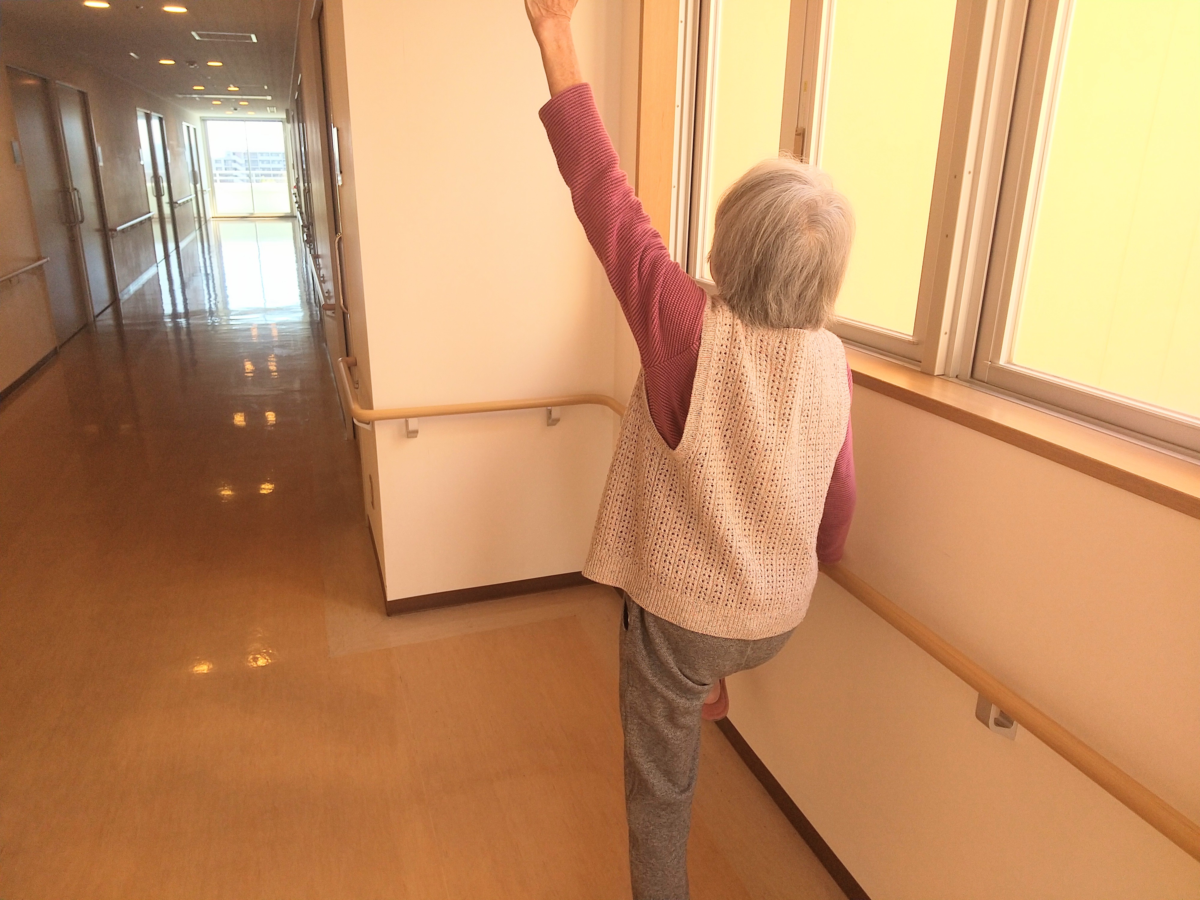廊下の手すりを使い