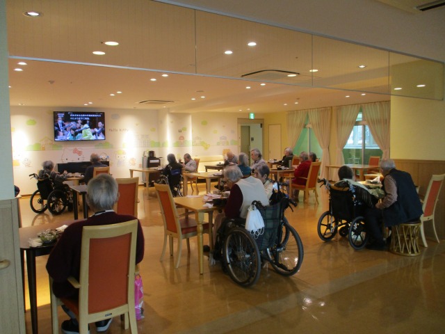 昼食前にホールで