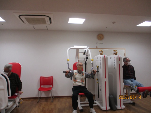 始まり、準備体操、マシーンへ