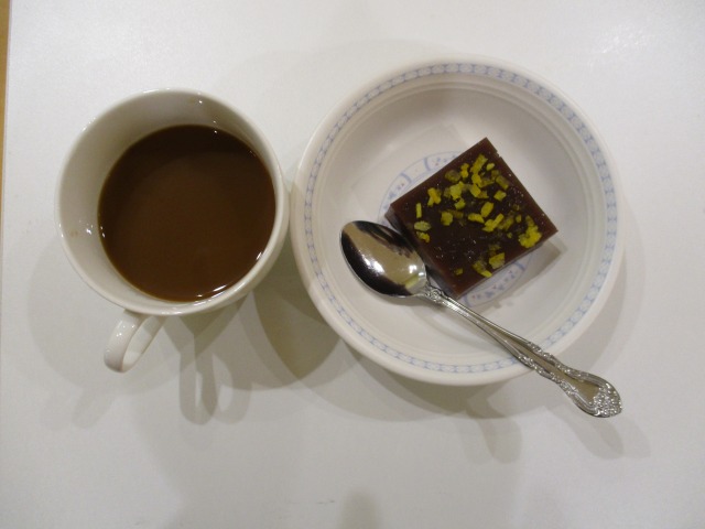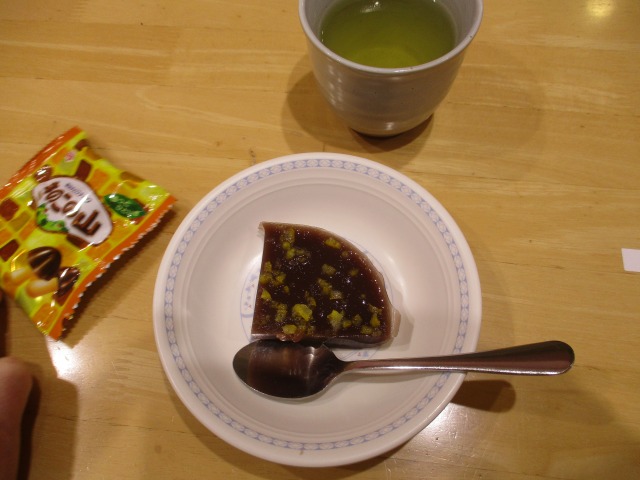 久しぶりのようかんには、柚子の皮が乗っていて、