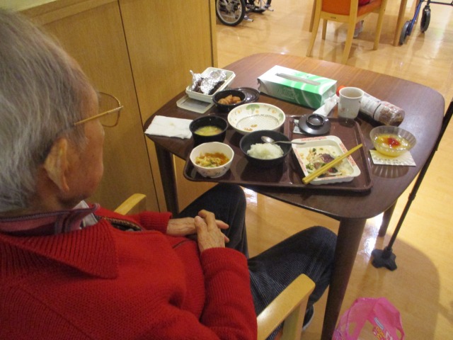 今日のお昼ご飯はポークチャップとツナサラダ(^^♪
