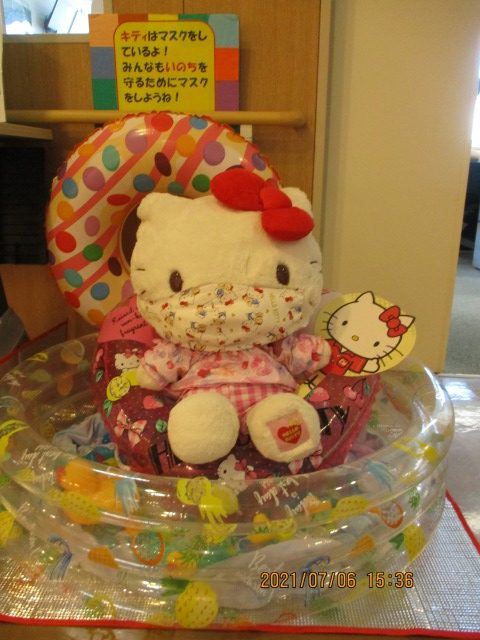 事務所前のキティちゃんも夏仕様に衣替え♬