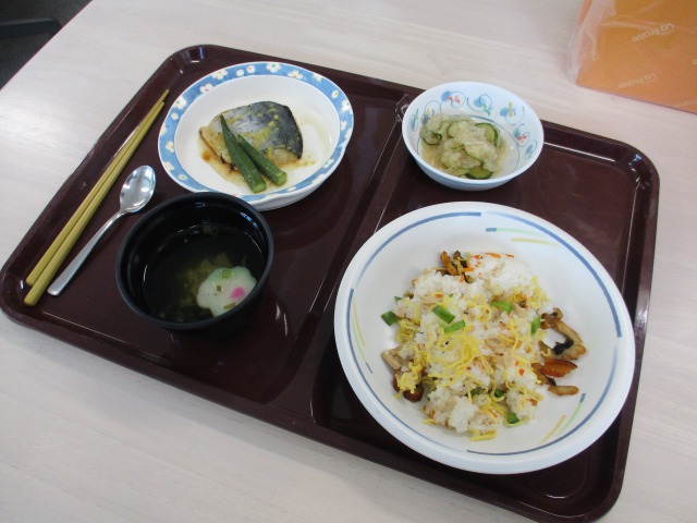 今日のお昼ご飯は、皆さんに好評を頂いている散らし寿司!