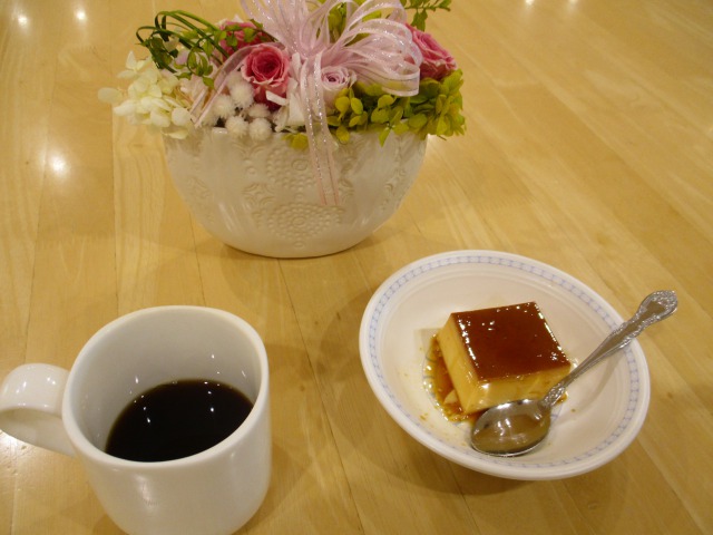 ティータイムにコーヒーを飲みながら手作りプリンを頂きました!