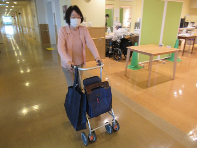 長い廊下を歩行し、お風呂に
