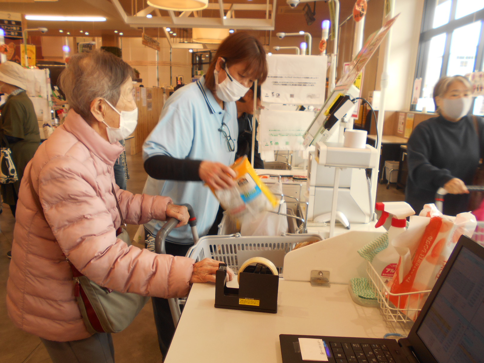 T様のセルフレジの動きを見て「えっ」と驚き、Y様のレジは職員がお手伝いしました。(^^♪