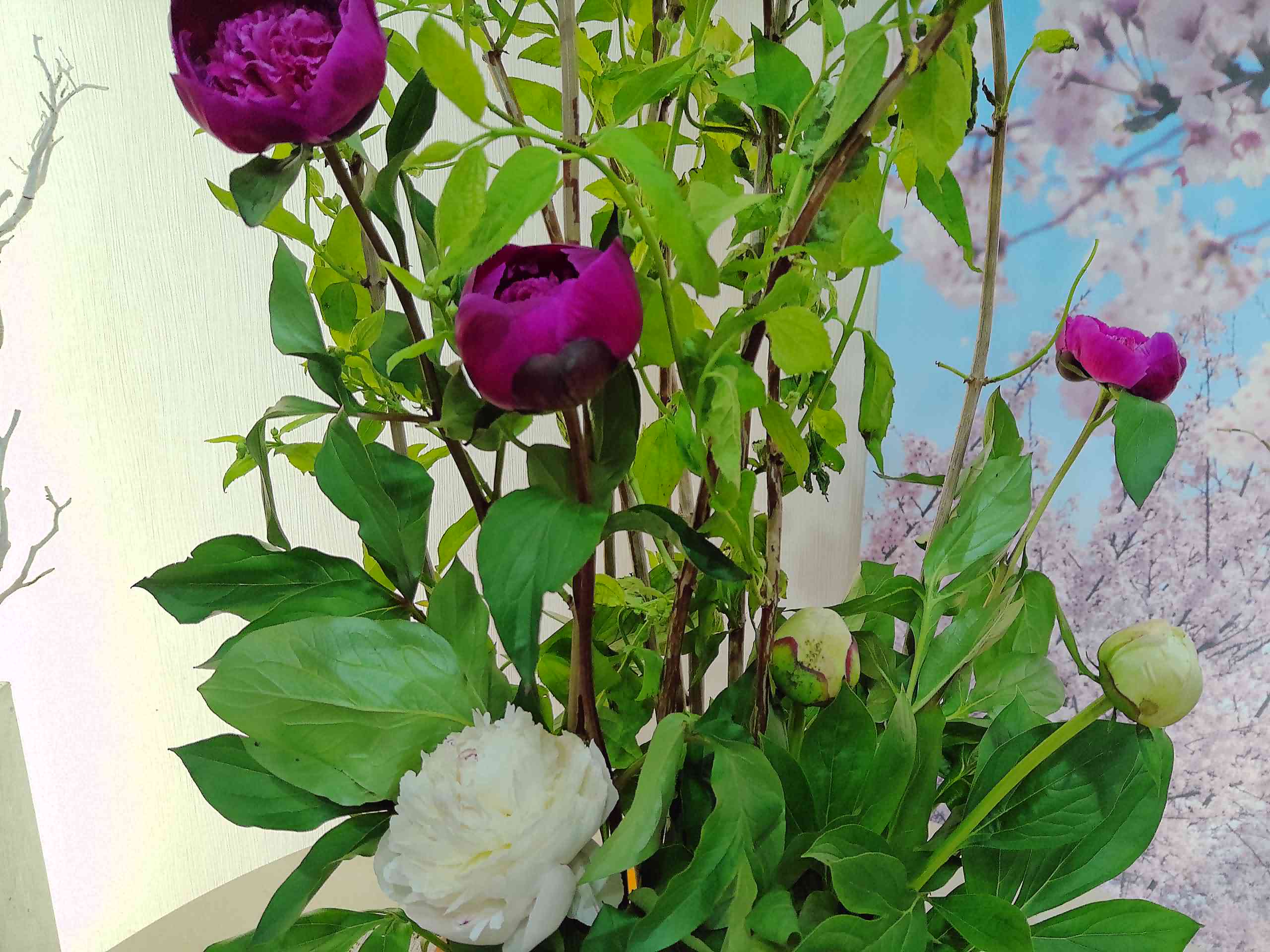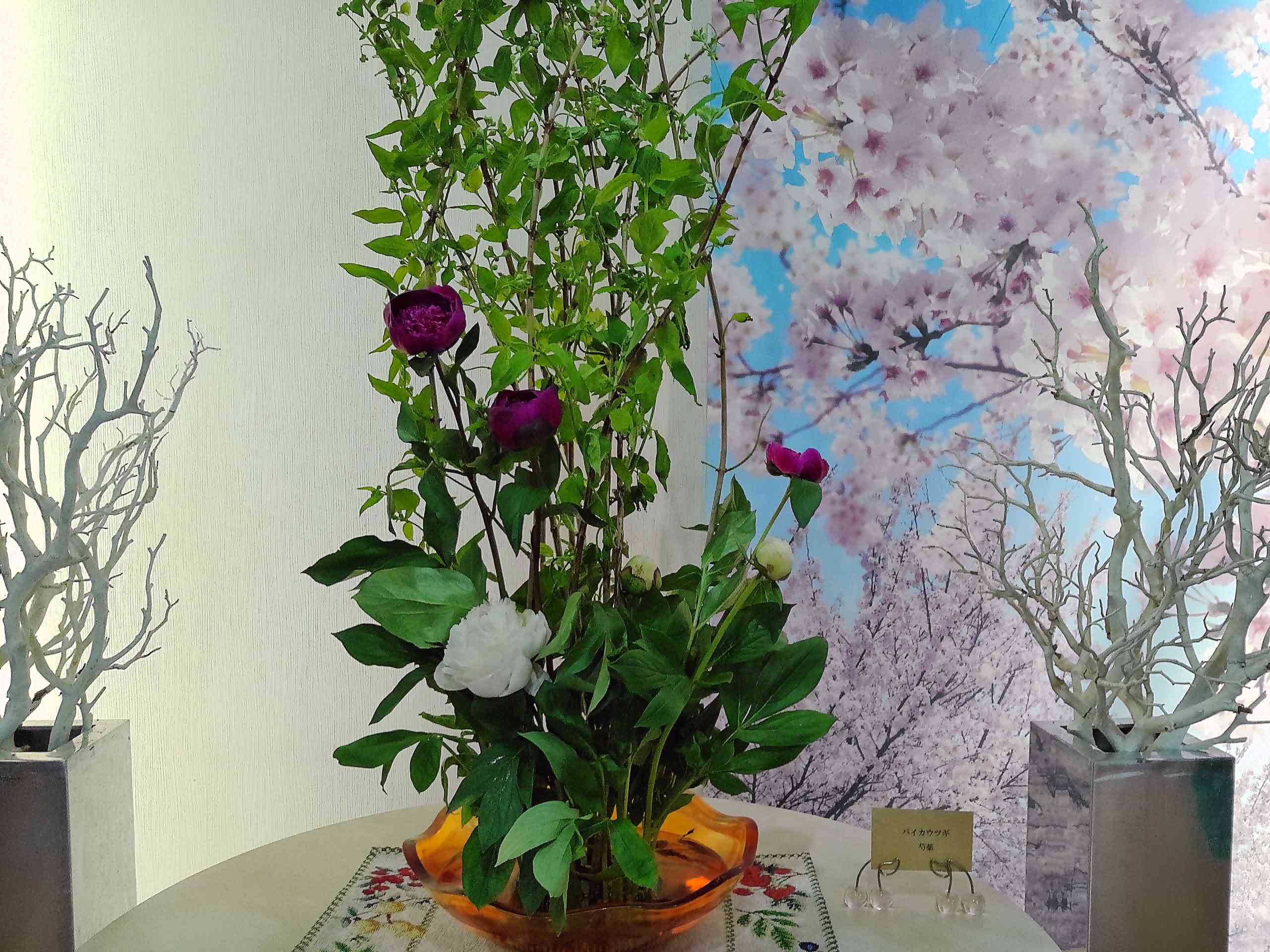 現在、シャクヤクとバイカウツギがエントランスに飾られています。