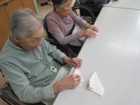 今日のレクは紙飛行機を作って