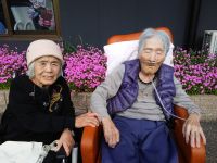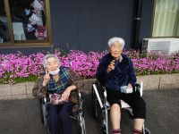 ご利用者様と園庭散歩の際の