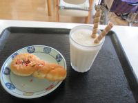 分かった方も多いはず(^^;) 正解は「バナナスムージー」でした( *´艸`) ひねりドーナツも添えて♡「美味しいね」と皆様大満足されていました!(^^)!